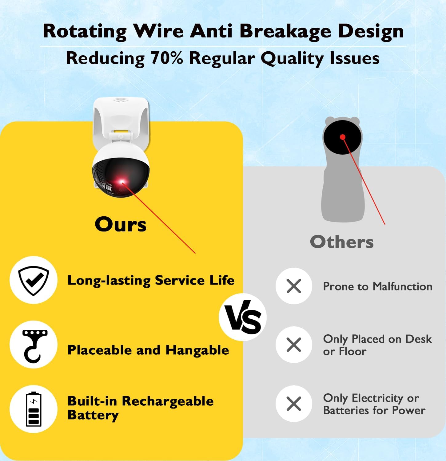 【Silent and Durable Motor】The automatic rotating laser light is made of a motor with a long service life and high reliability. The silent motor meets the entertainment and exercise requirements of cats while not generating excessive noise that would be annoying to both cats and people
