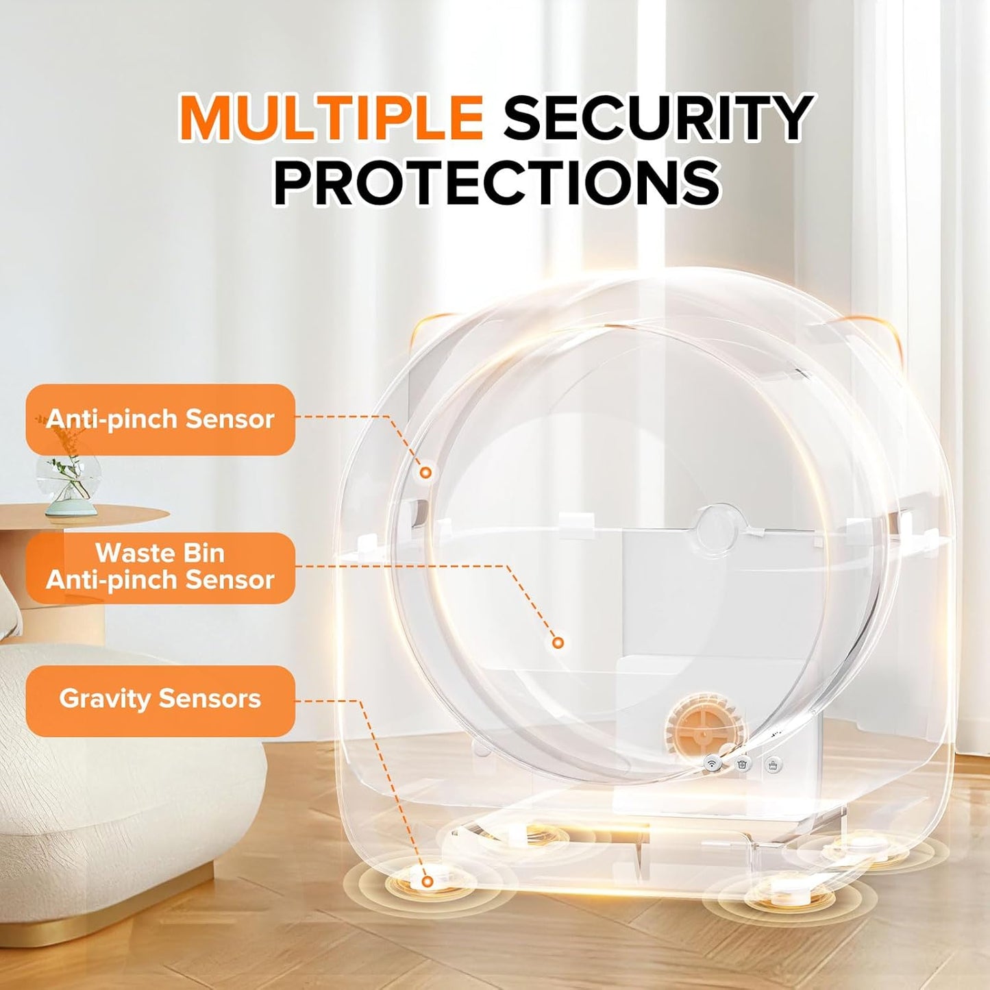 - 【Cat Safety】The litter robot is equipped with precise sensors that detect the presence of cats and pause the cleaning cycle to ensure their safety. Put your cat's health first