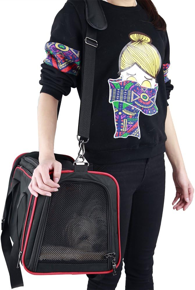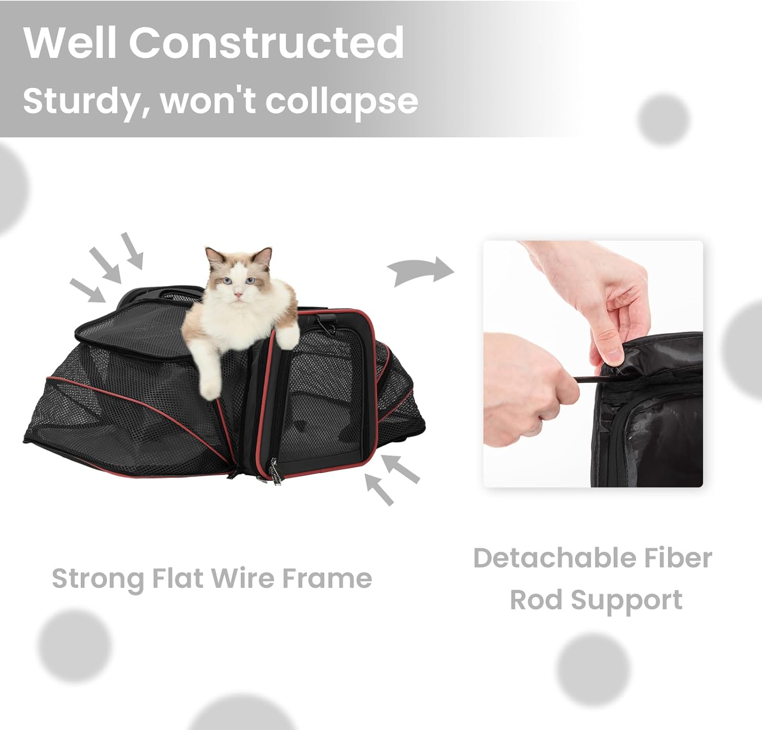 - 【Comfortable Space】Pets can sprawl out, lay down, and have a clear view of their surroundings in the extra extended space. Great for flights or car trips, providing a roomy and cozy bed-like environment. The cat carrier large can be folded completely flat when not in use.