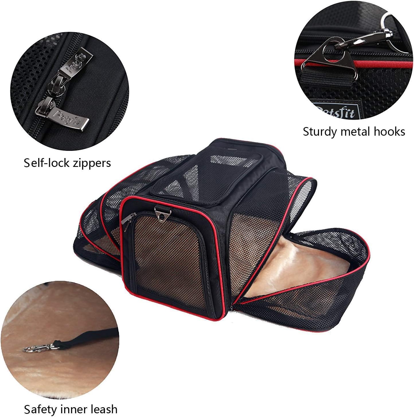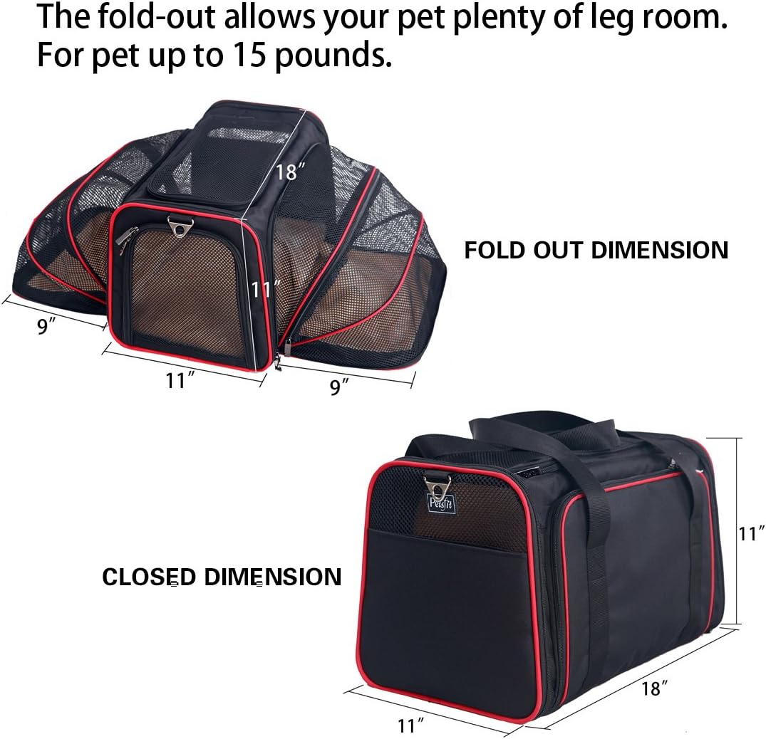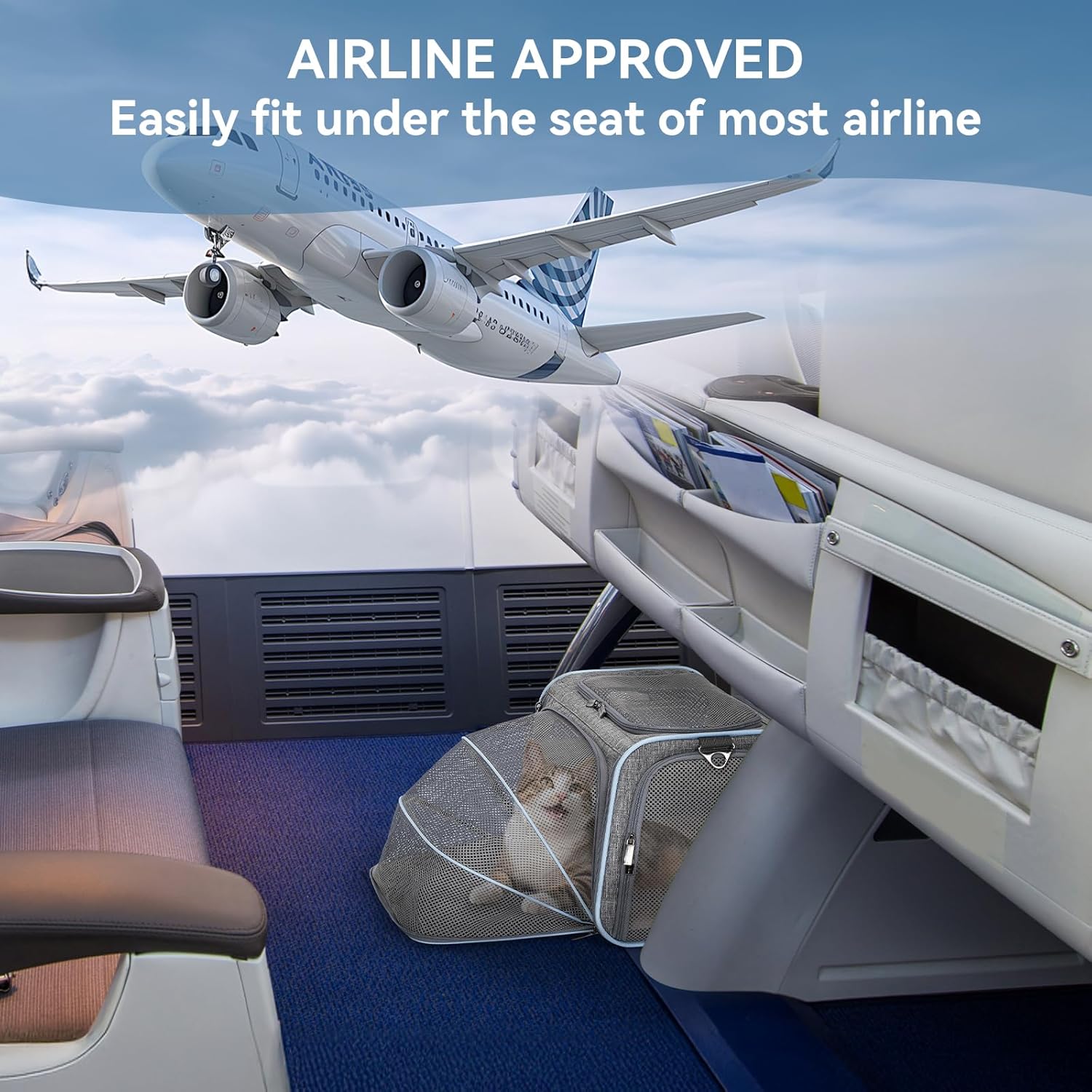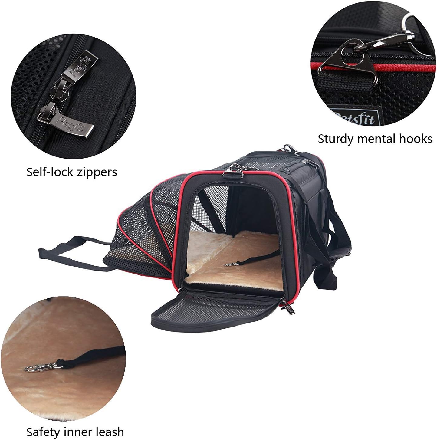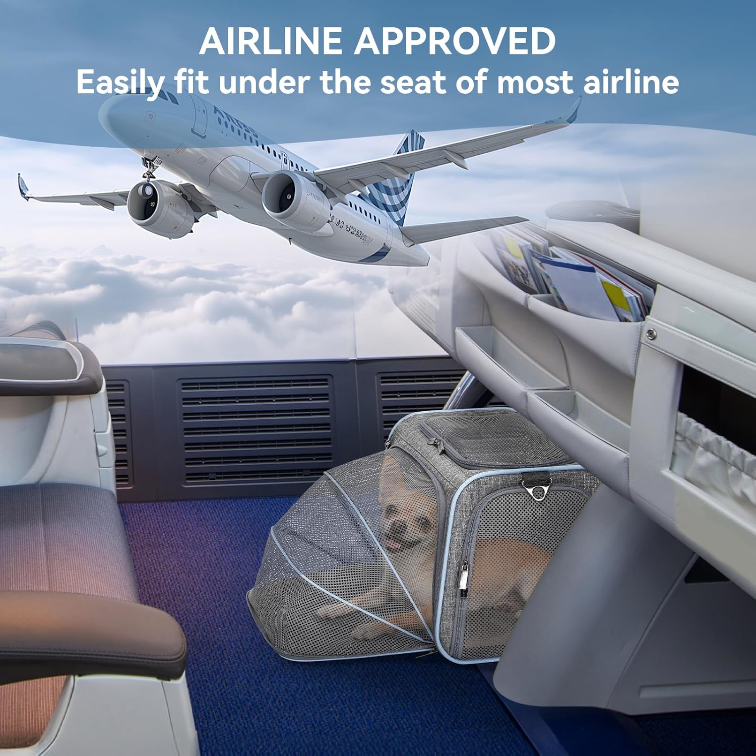 Petsfit Expandable Cat Dog Carrier Airline Approved, 17" L x 11" W x 11" H Soft-Sided Portable Pet Travel Carrier for Kitten, Puppy, Removable Soft Plush Mat and Pockets, Auto-Locking Zippers