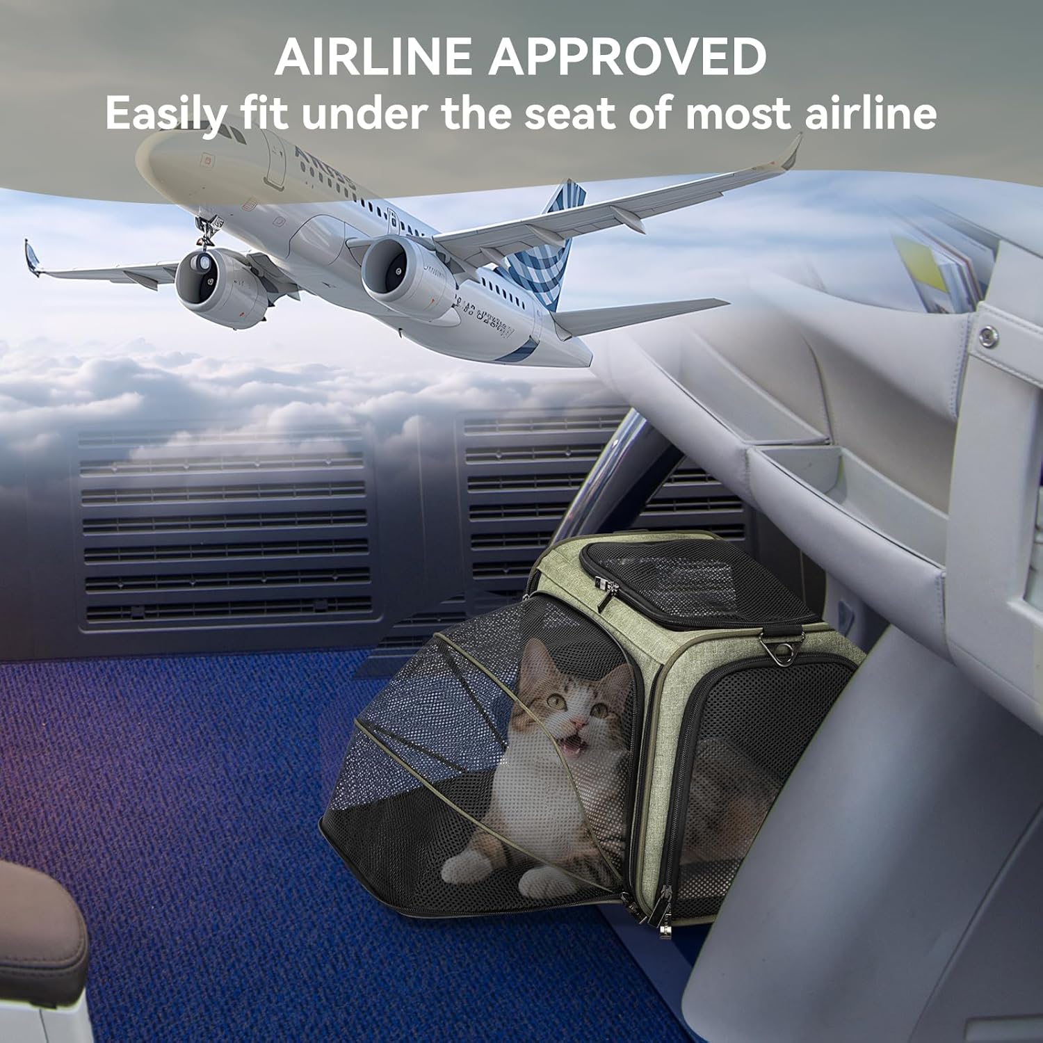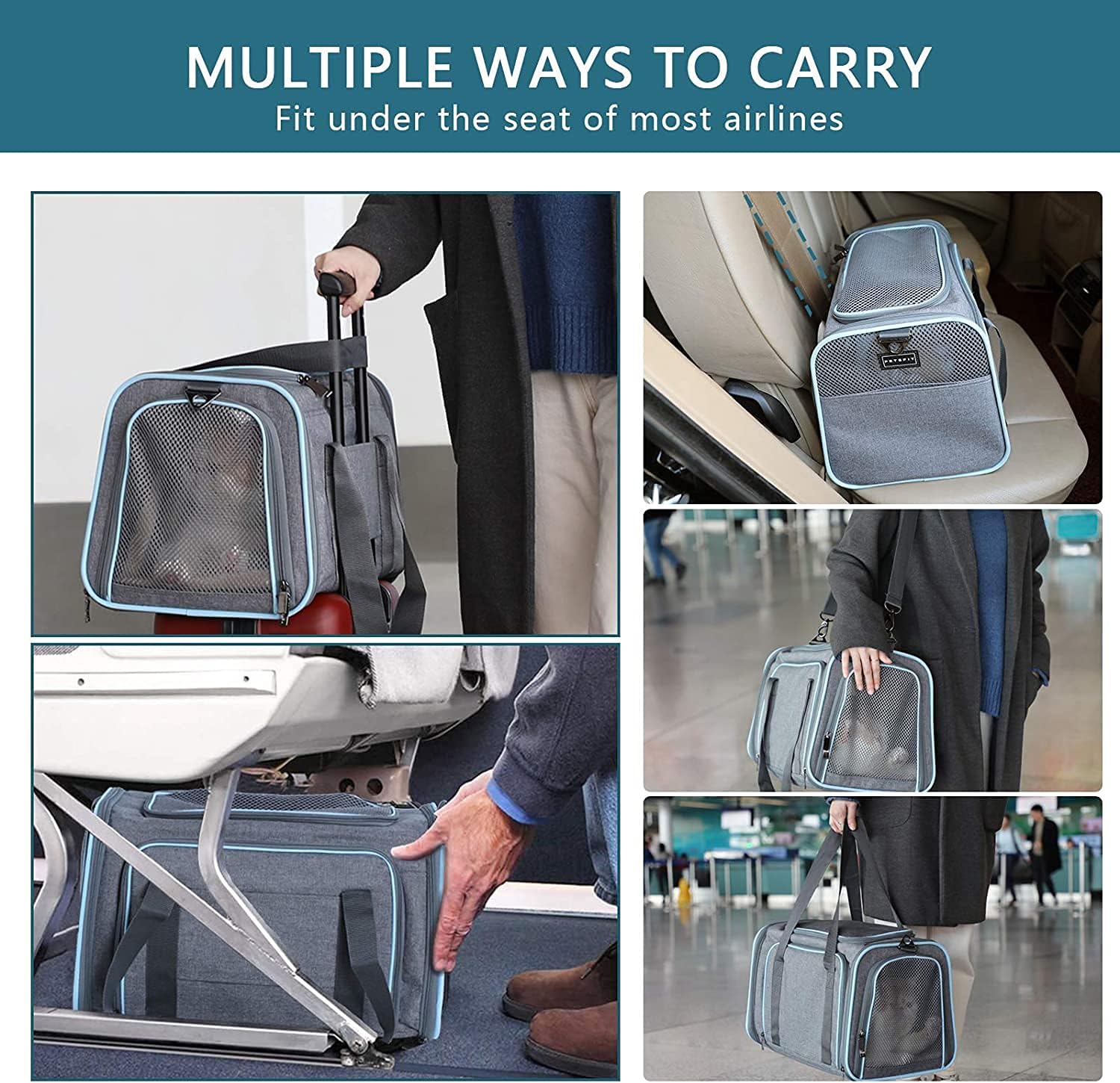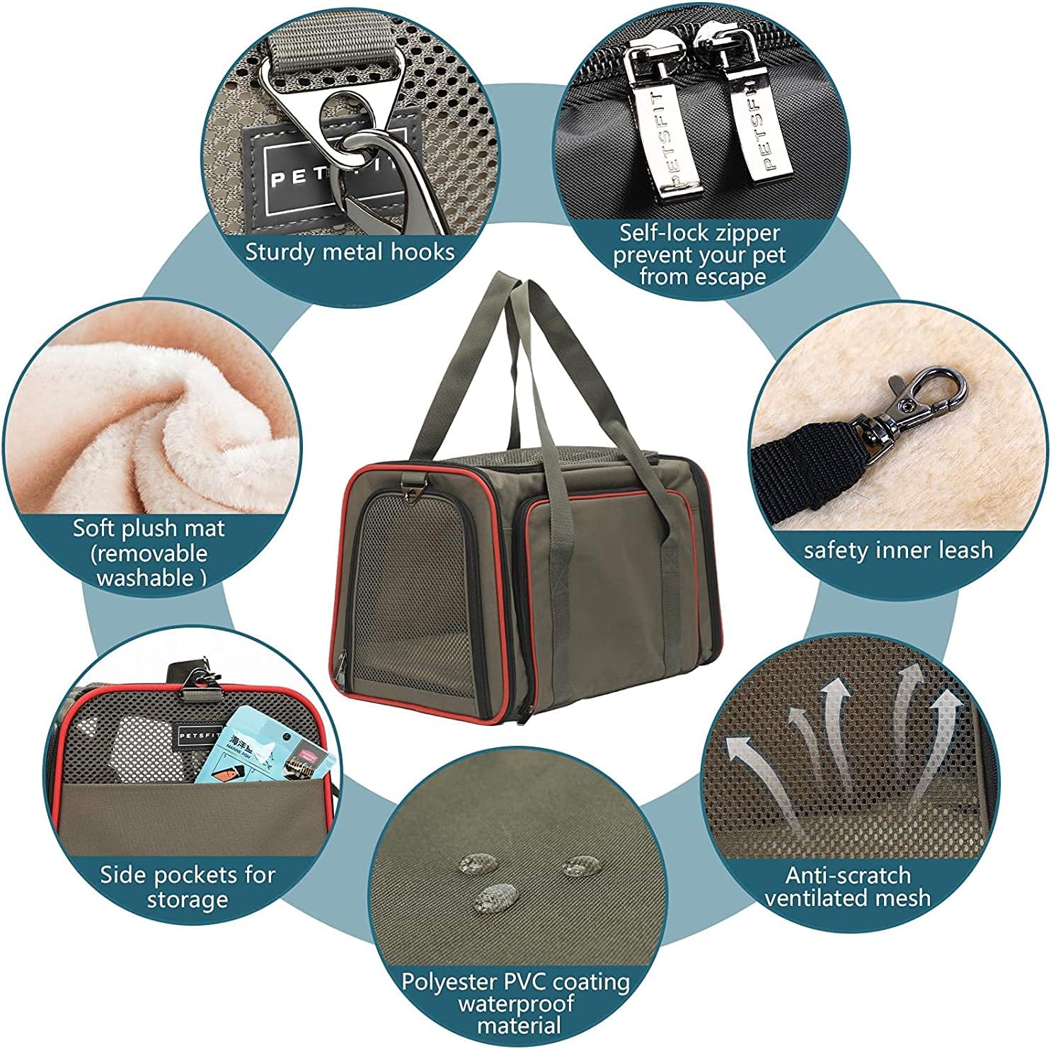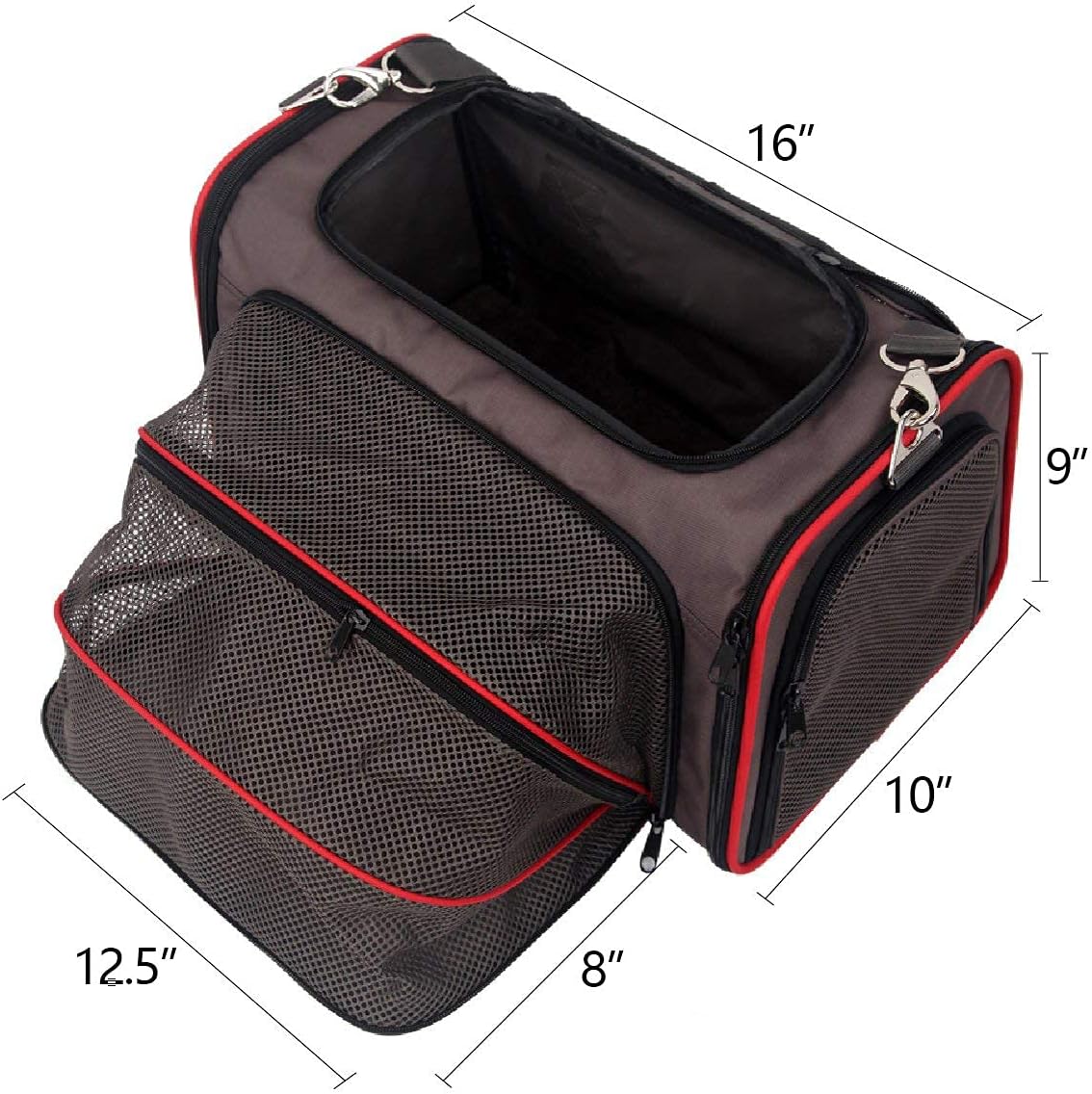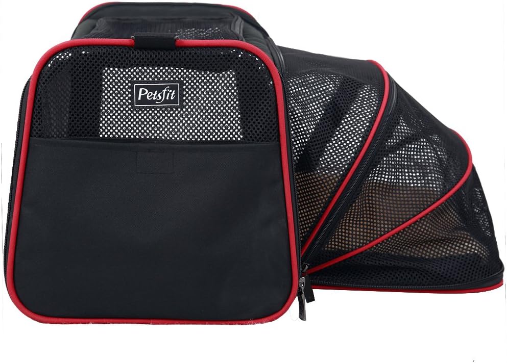 Petsfit Expandable Cat Dog Carrier Airline Approved, 17" L x 11" W x 11" H Soft-Sided Portable Pet Travel Carrier for Kitten, Puppy, Removable Soft Plush Mat and Pockets, Auto-Locking Zippers