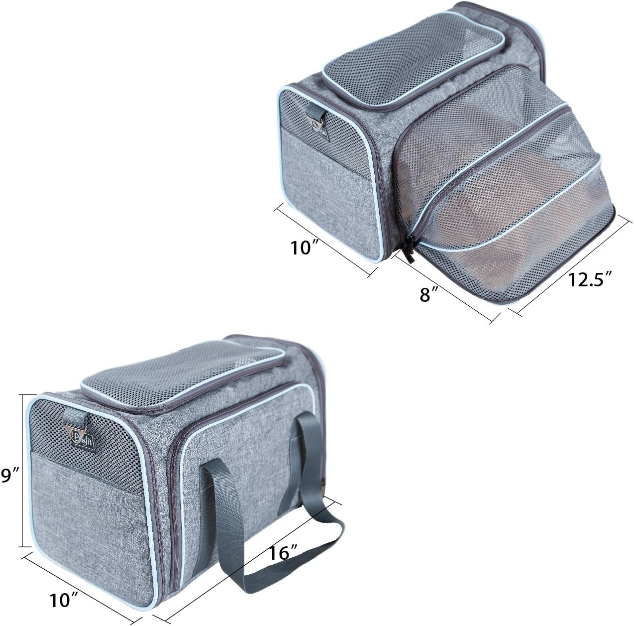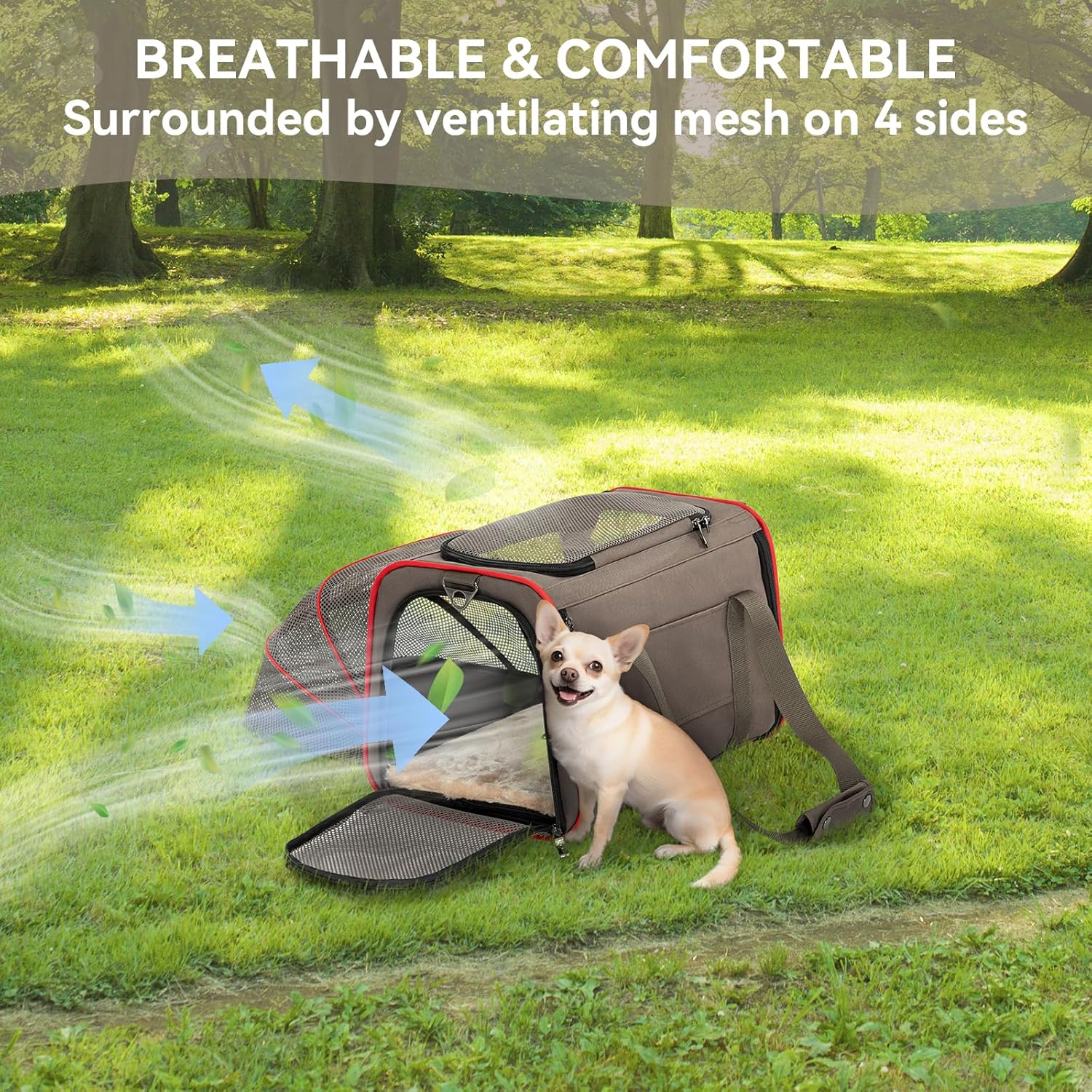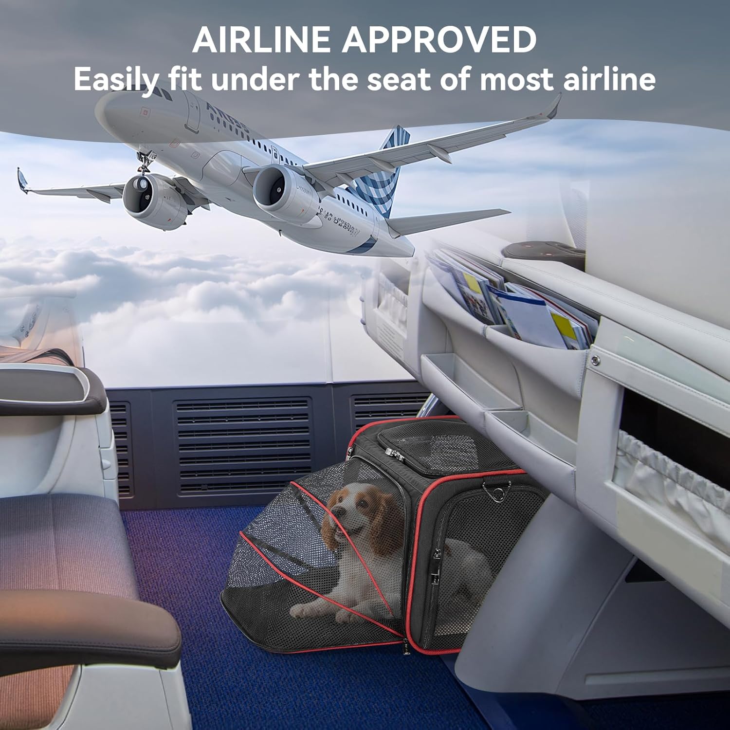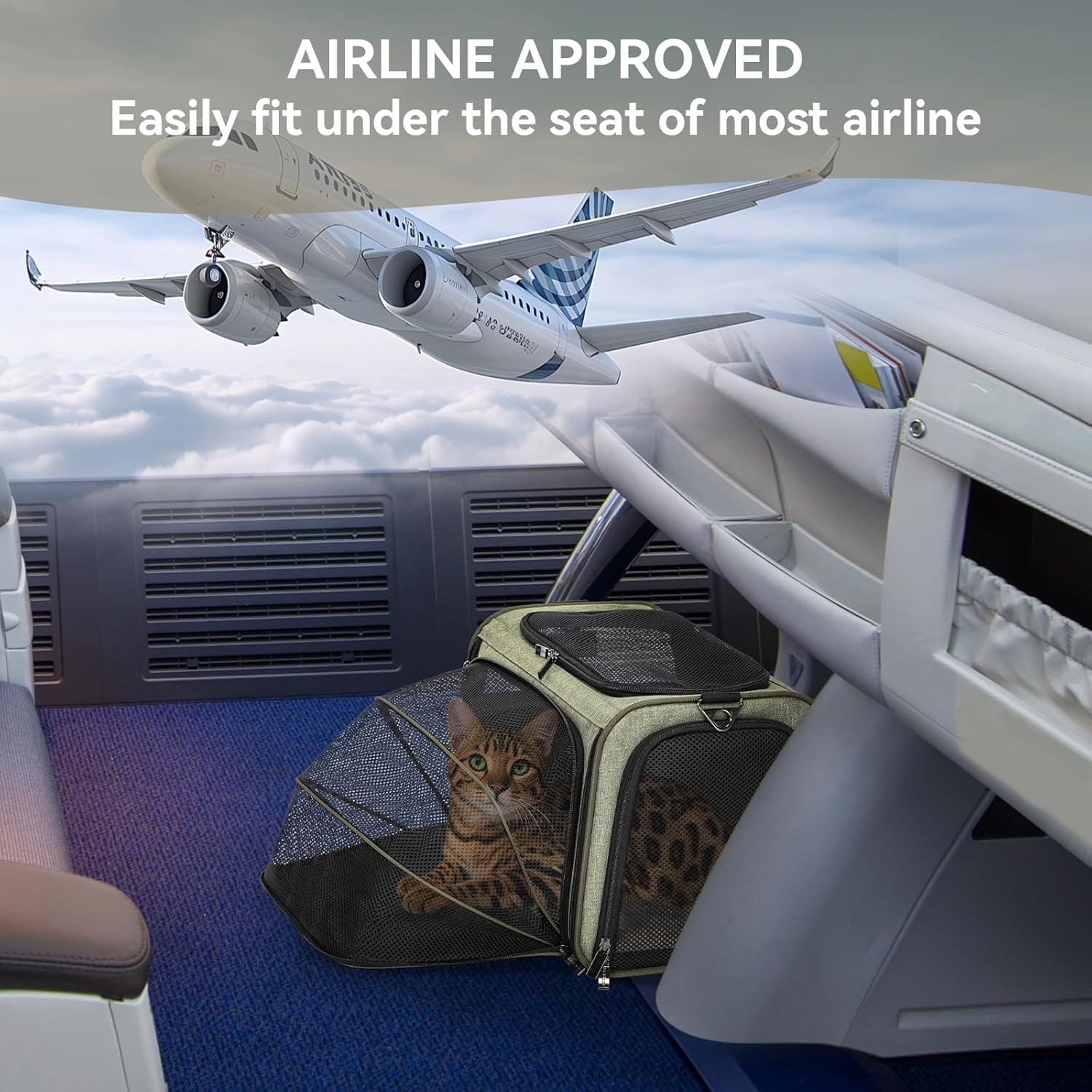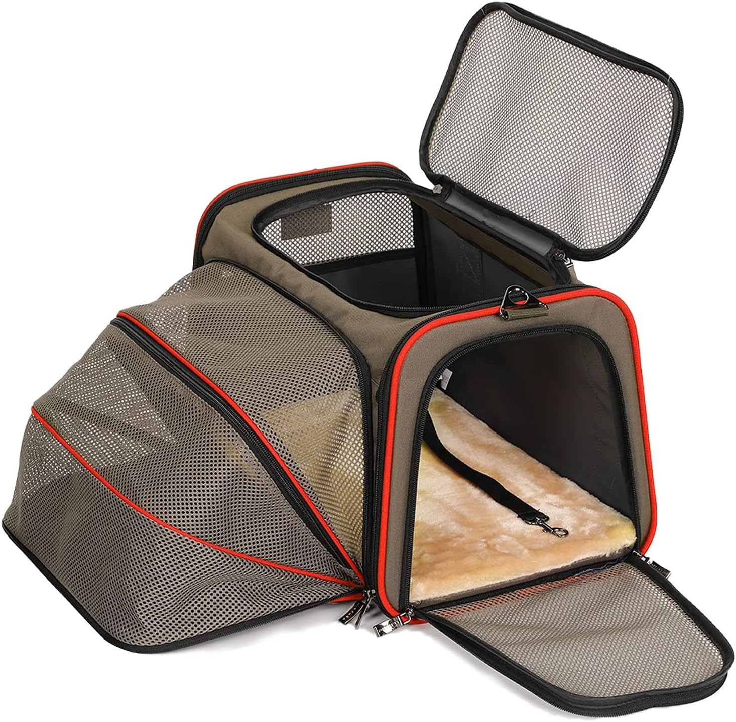 Petsfit Expandable Cat Dog Carrier Airline Approved, 17" L x 11" W x 11" H Soft-Sided Portable Pet Travel Carrier for Kitten, Puppy, Removable Soft Plush Mat and Pockets, Auto-Locking Zippers