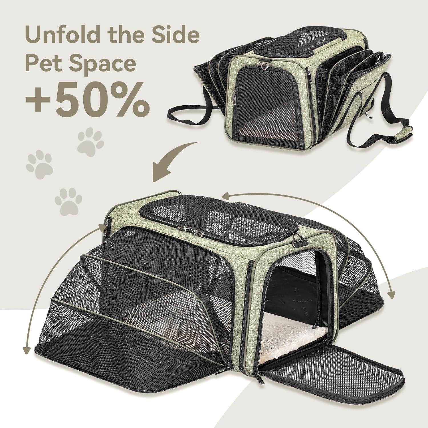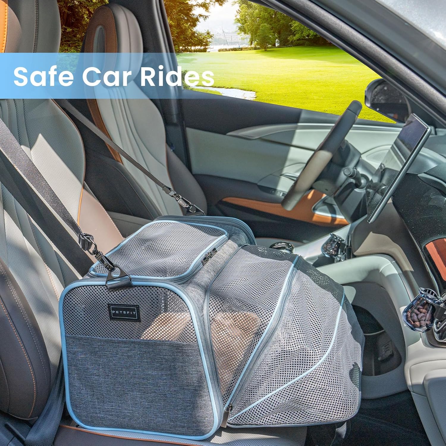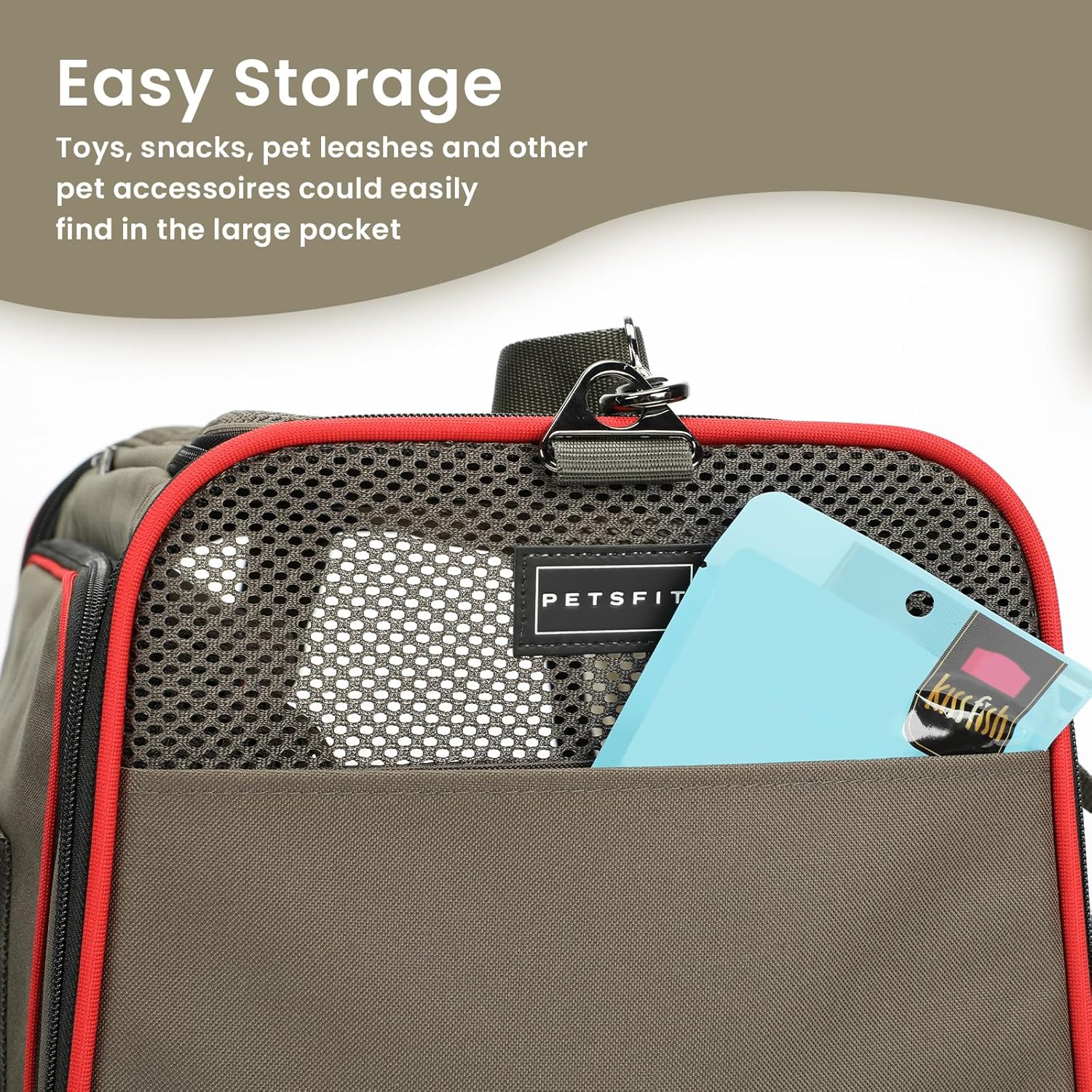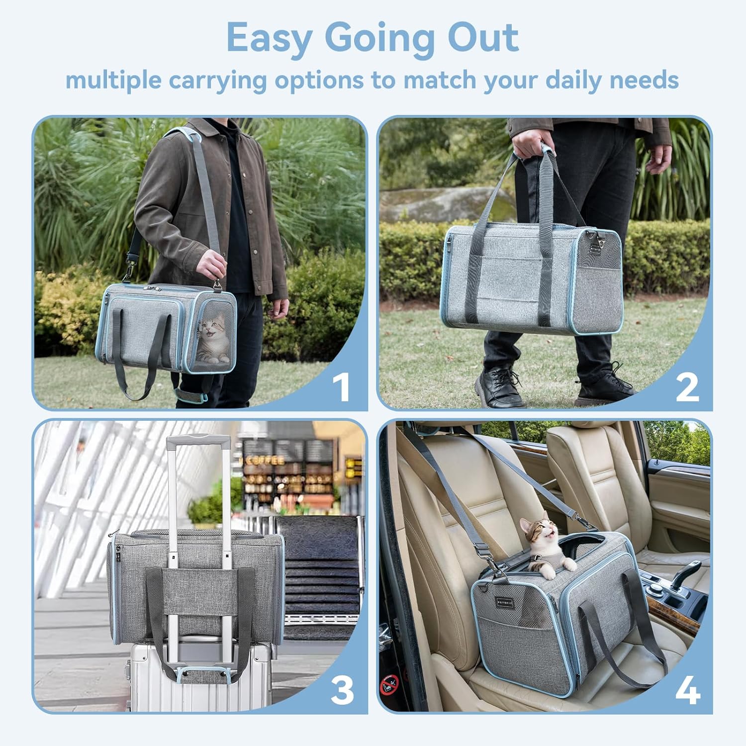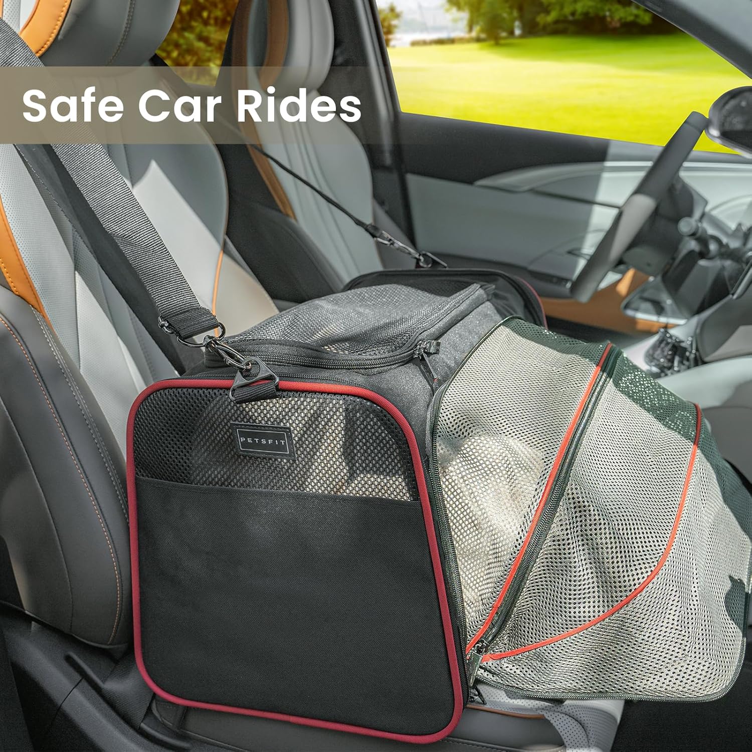 Petsfit Expandable Cat Dog Carrier Airline Approved, 17" L x 11" W x 11" H Soft-Sided Portable Pet Travel Carrier for Kitten, Puppy, Removable Soft Plush Mat and Pockets, Auto-Locking Zippers