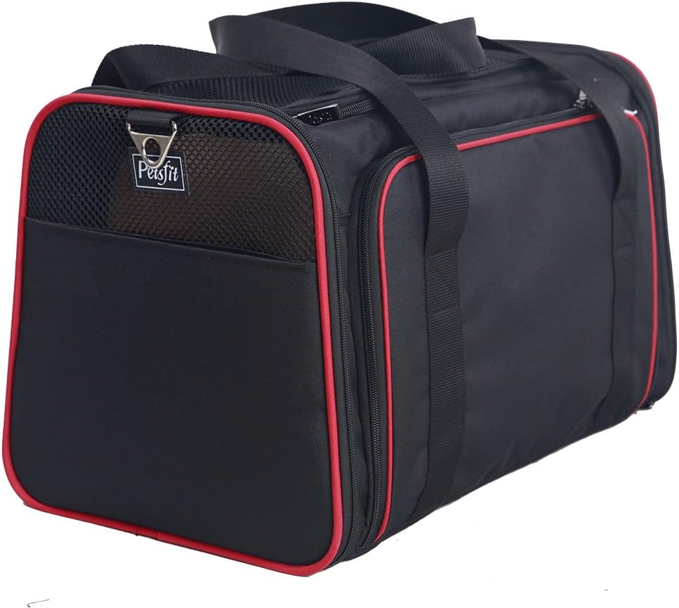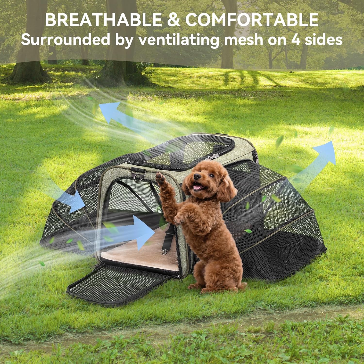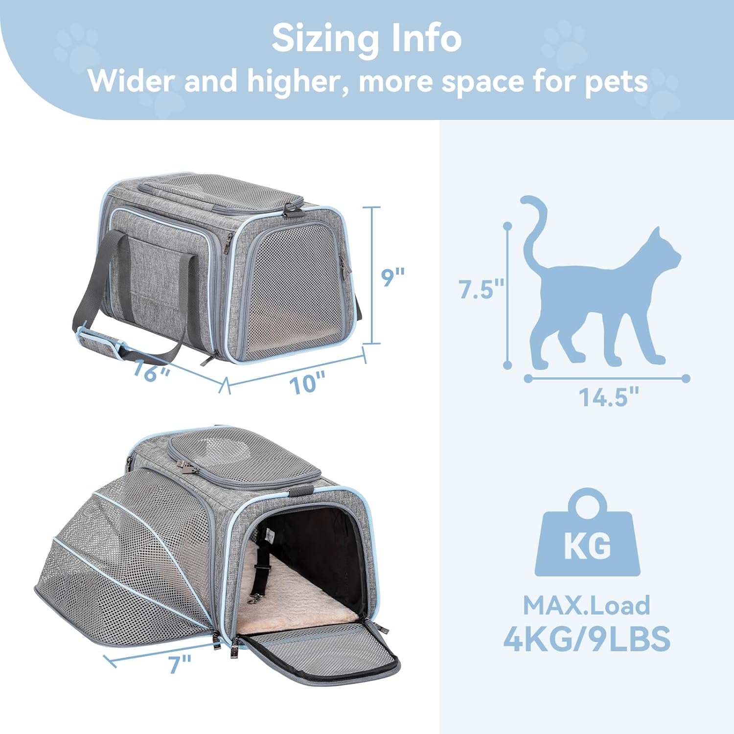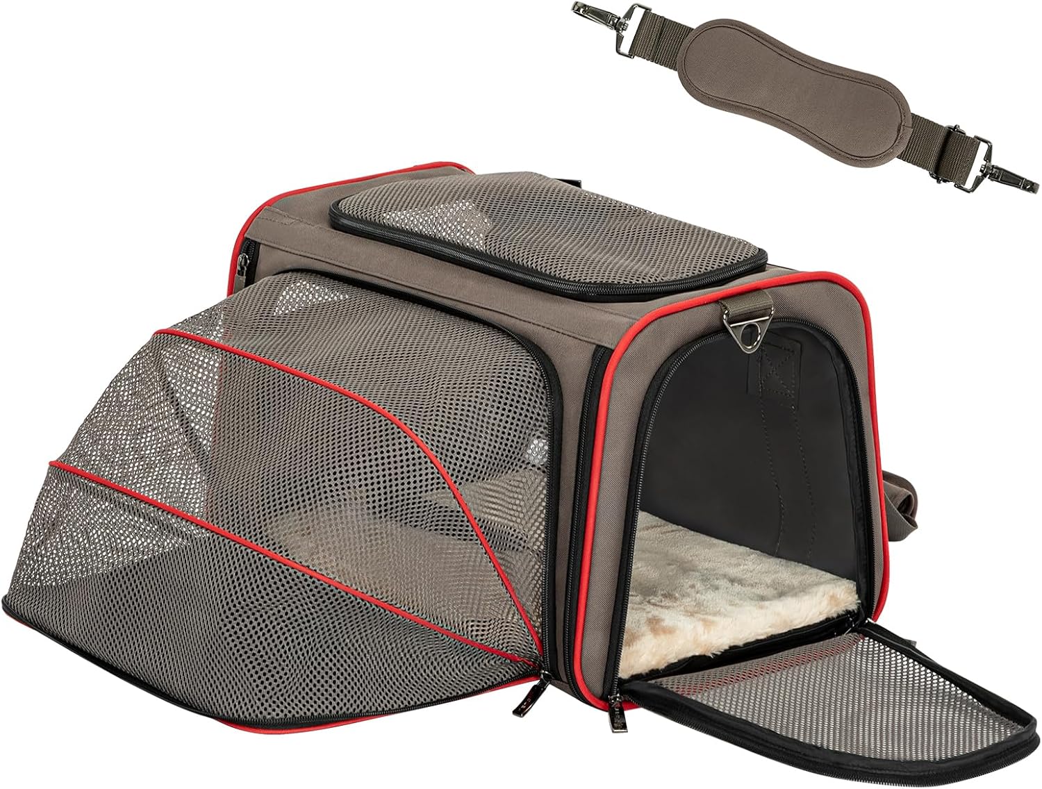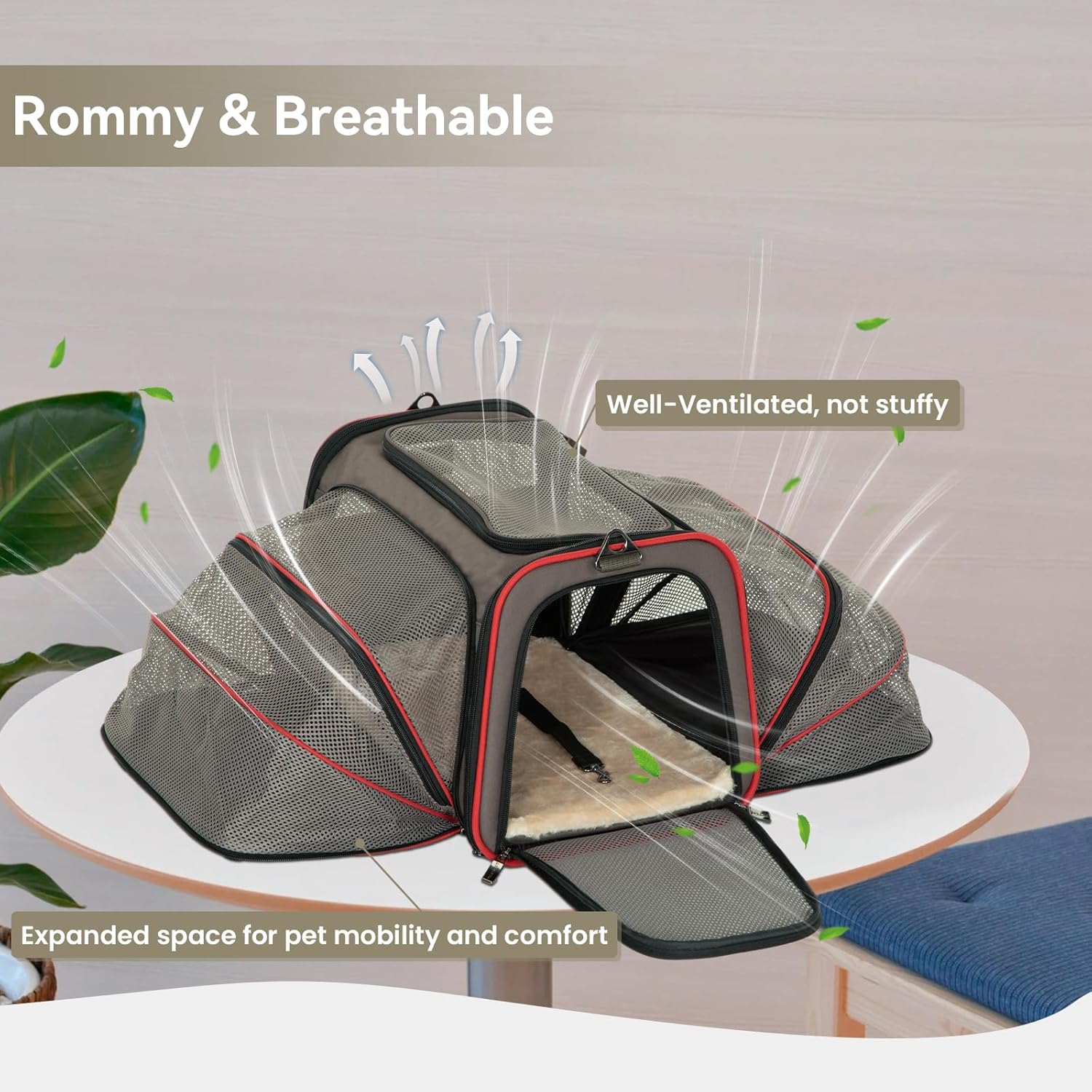 Petsfit Expandable Cat Dog Carrier Airline Approved, 17" L x 11" W x 11" H Soft-Sided Portable Pet Travel Carrier for Kitten, Puppy, Removable Soft Plush Mat and Pockets, Auto-Locking Zippers