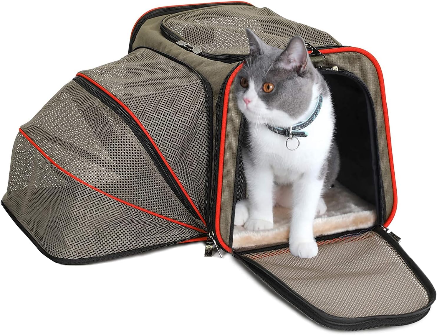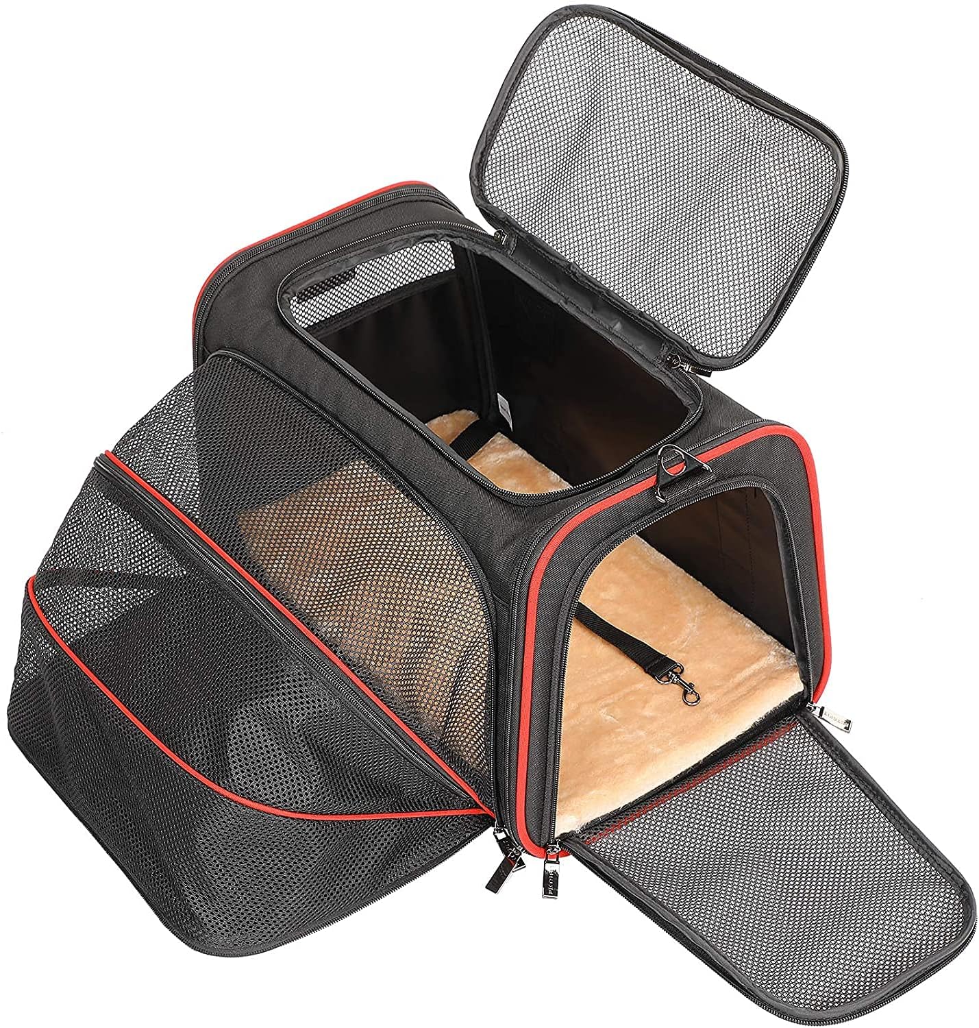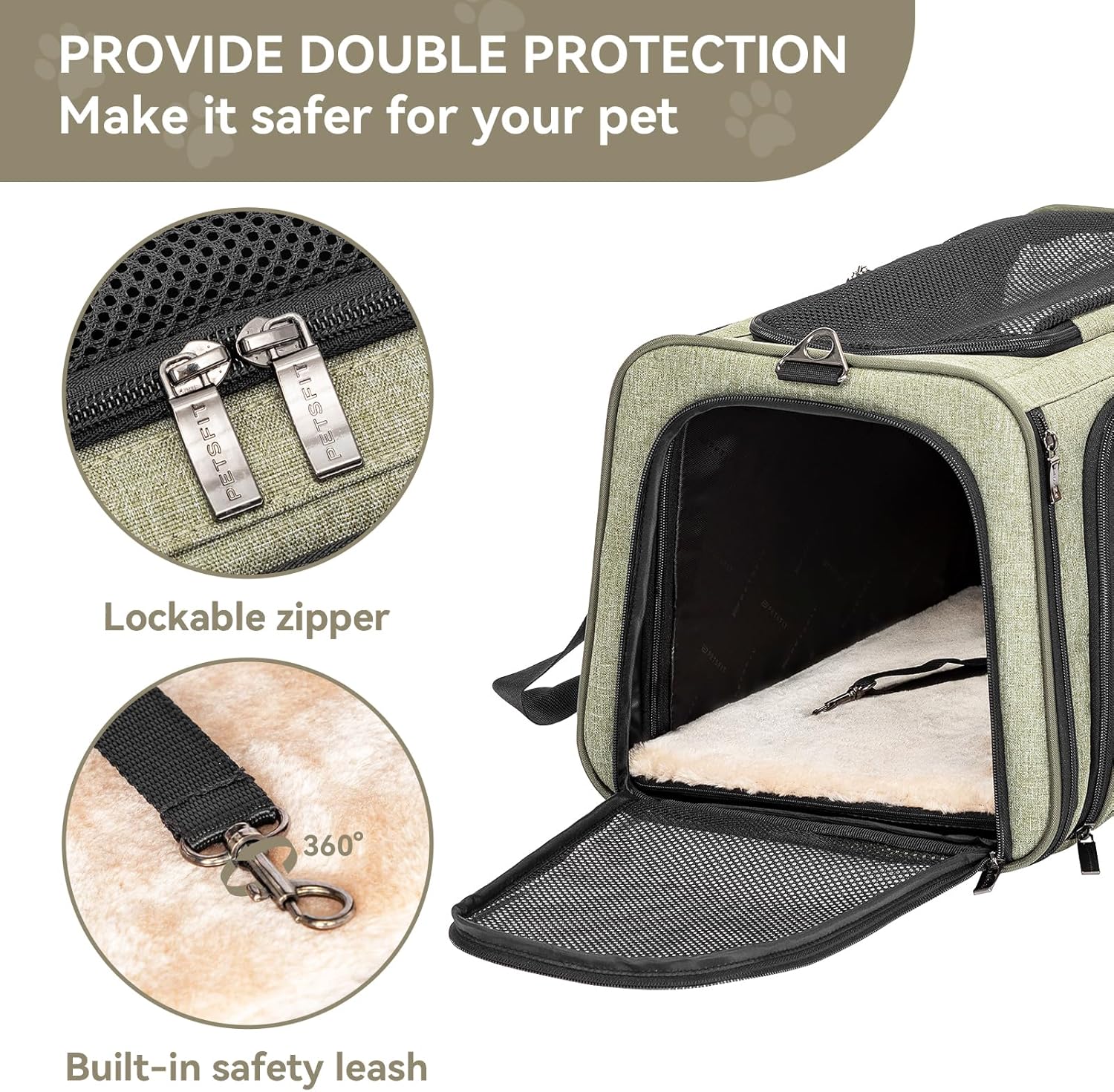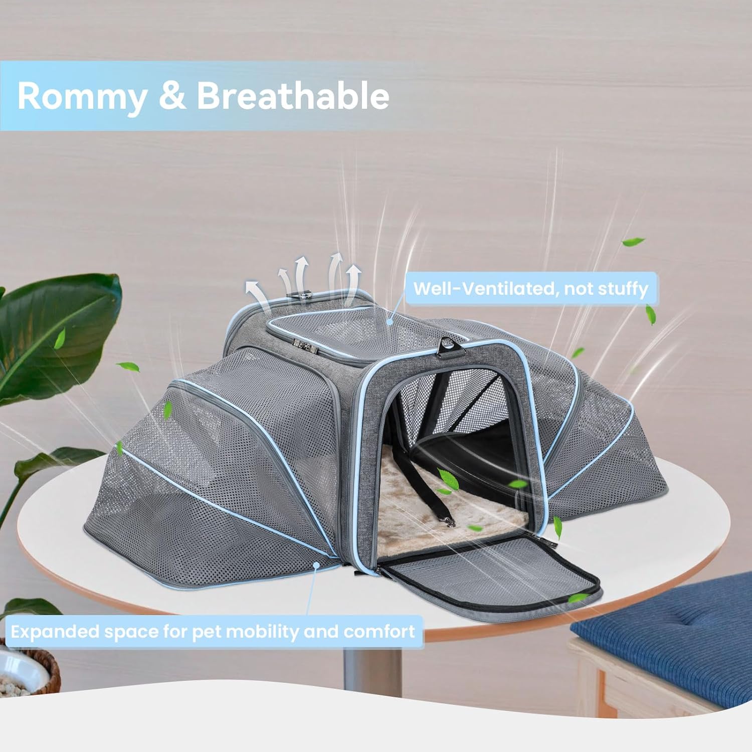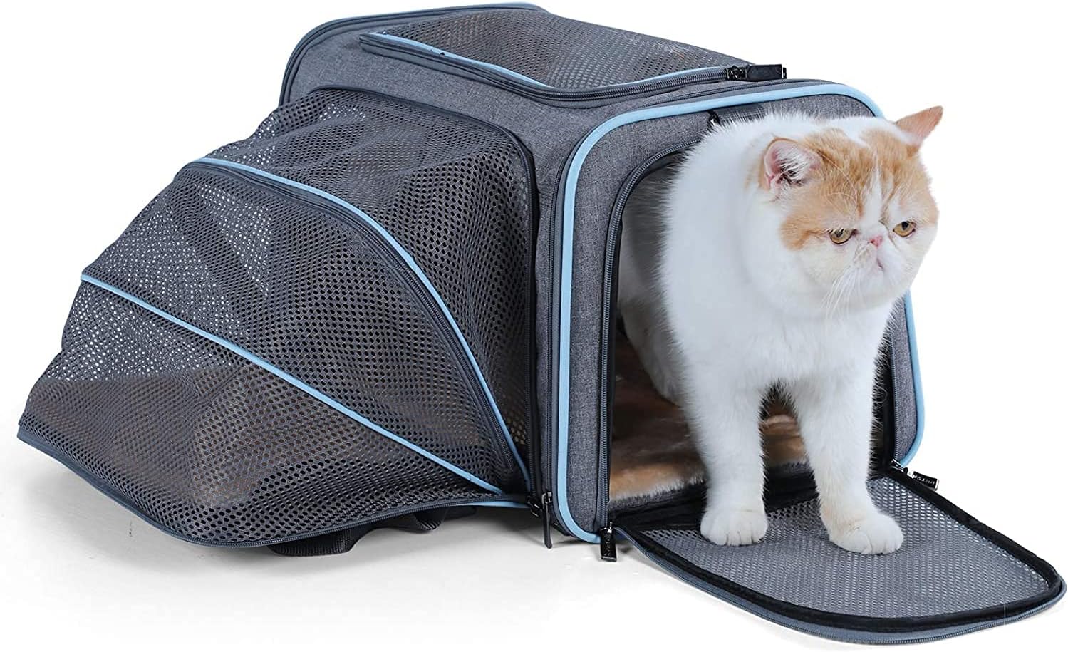 Petsfit Expandable Cat Dog Carrier Airline Approved, 17" L x 11" W x 11" H Soft-Sided Portable Pet Travel Carrier for Kitten, Puppy, Removable Soft Plush Mat and Pockets, Auto-Locking Zippers