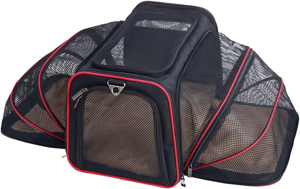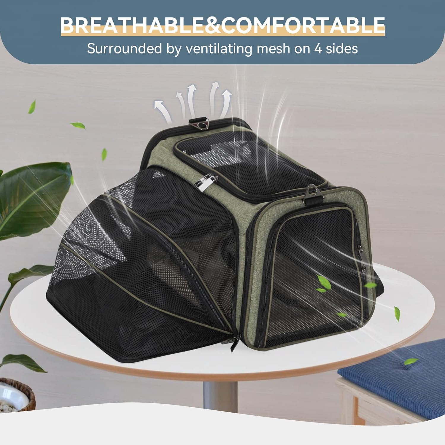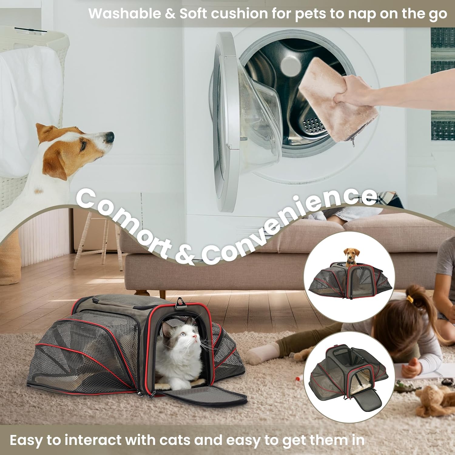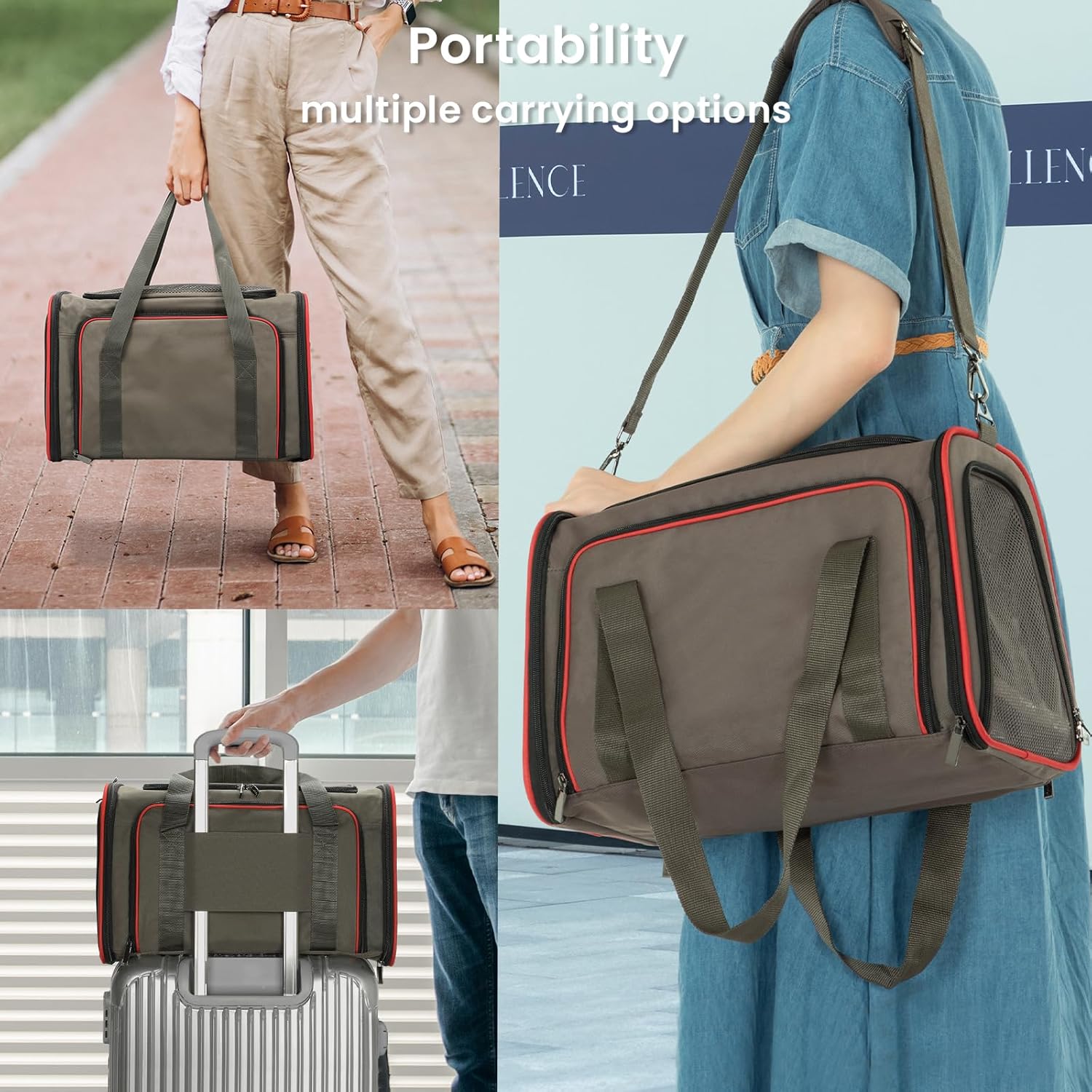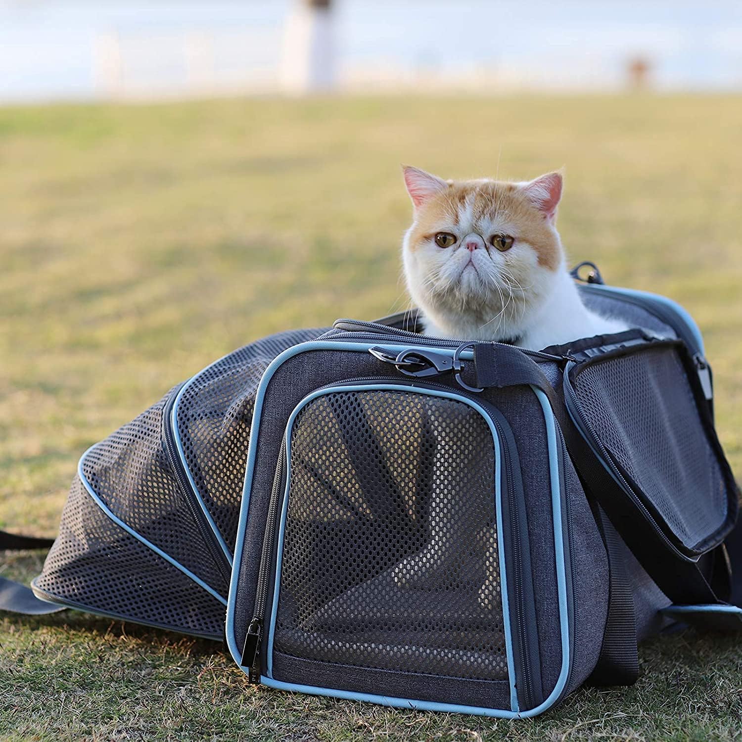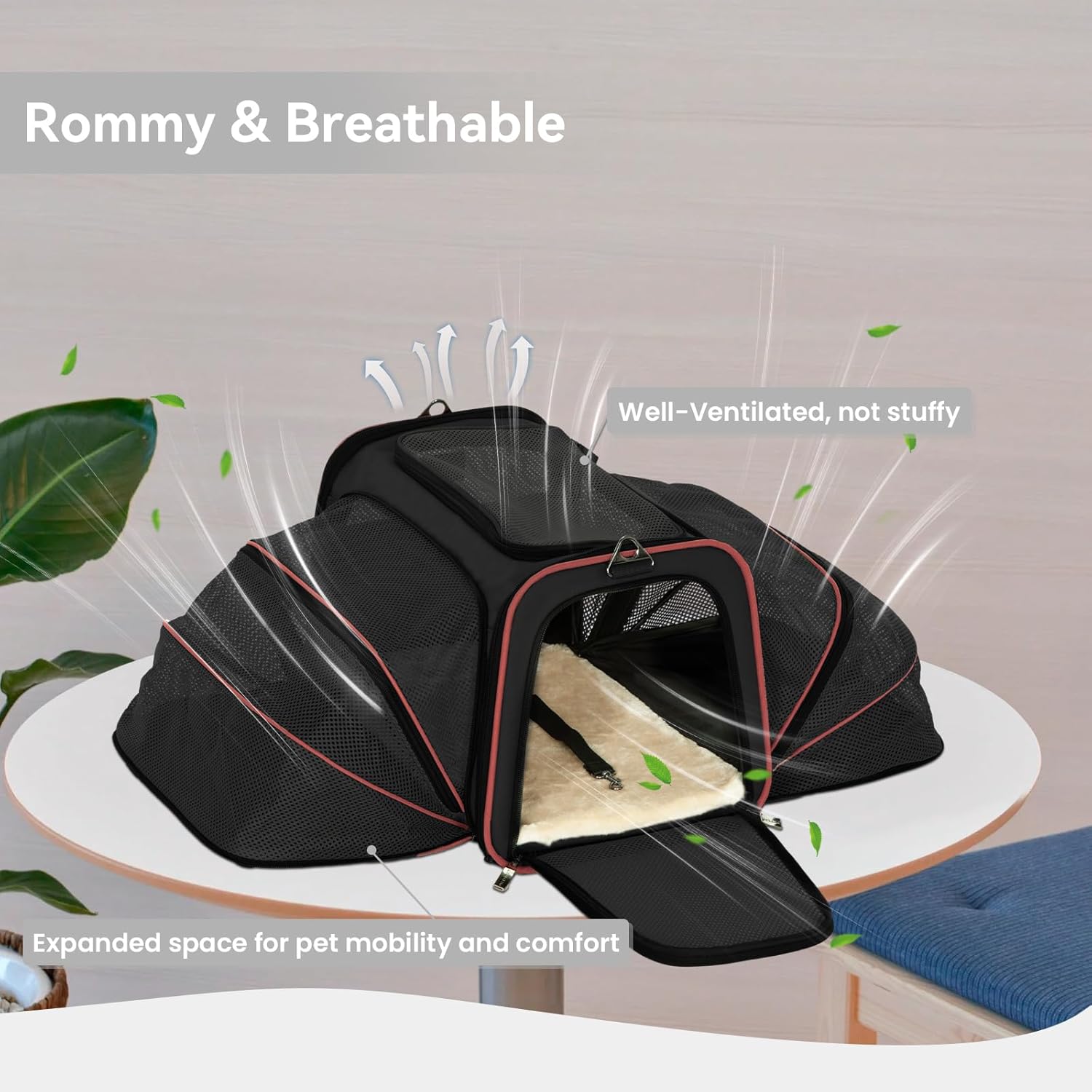 Petsfit Expandable Cat Dog Carrier Airline Approved, 17" L x 11" W x 11" H Soft-Sided Portable Pet Travel Carrier for Kitten, Puppy, Removable Soft Plush Mat and Pockets, Auto-Locking Zippers