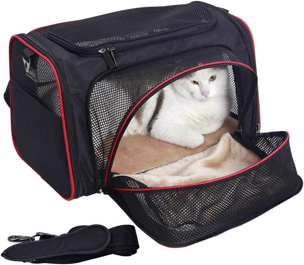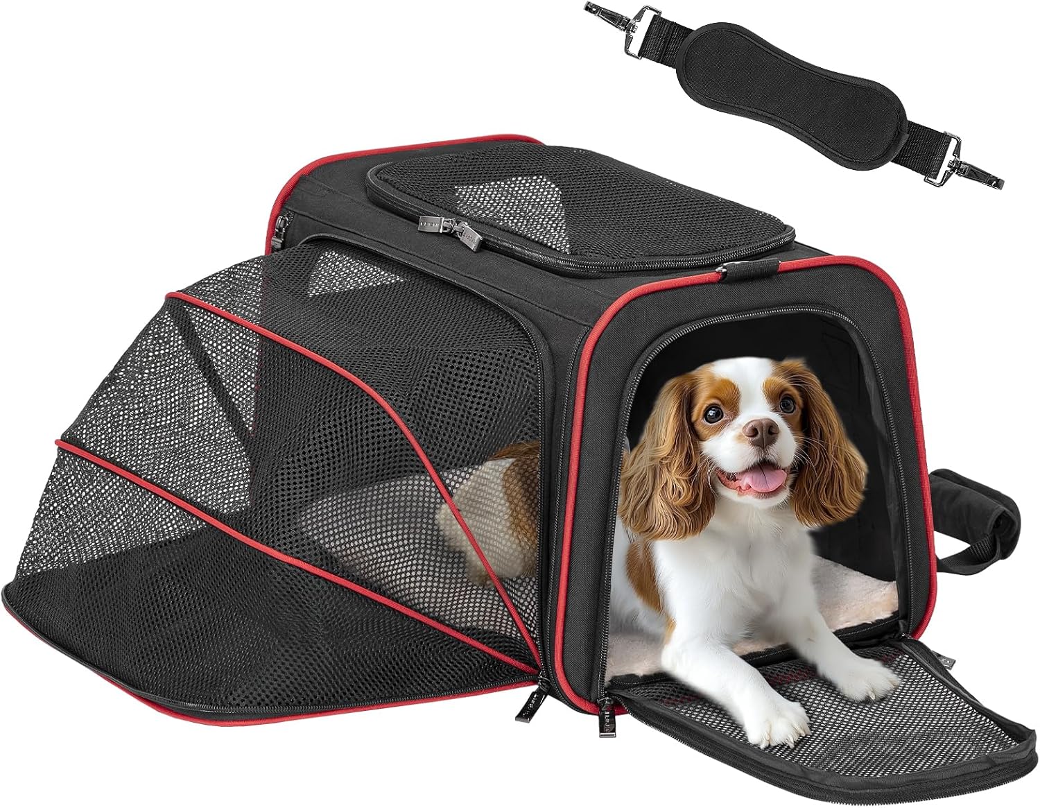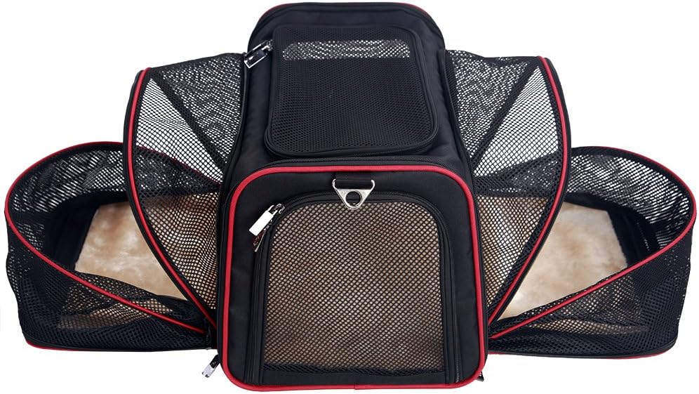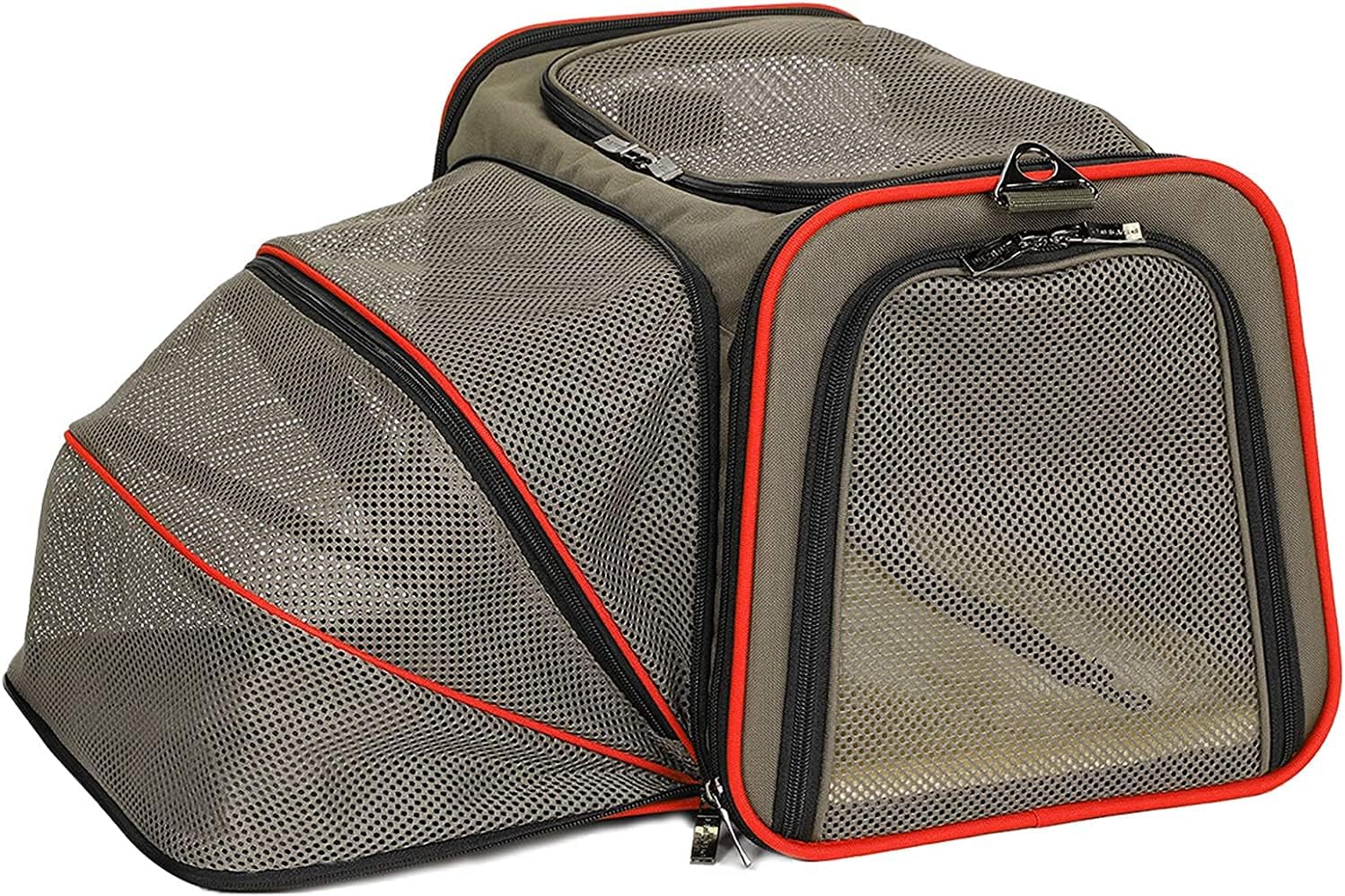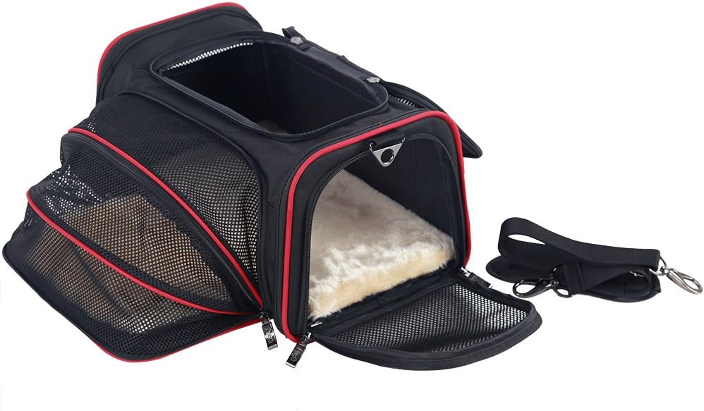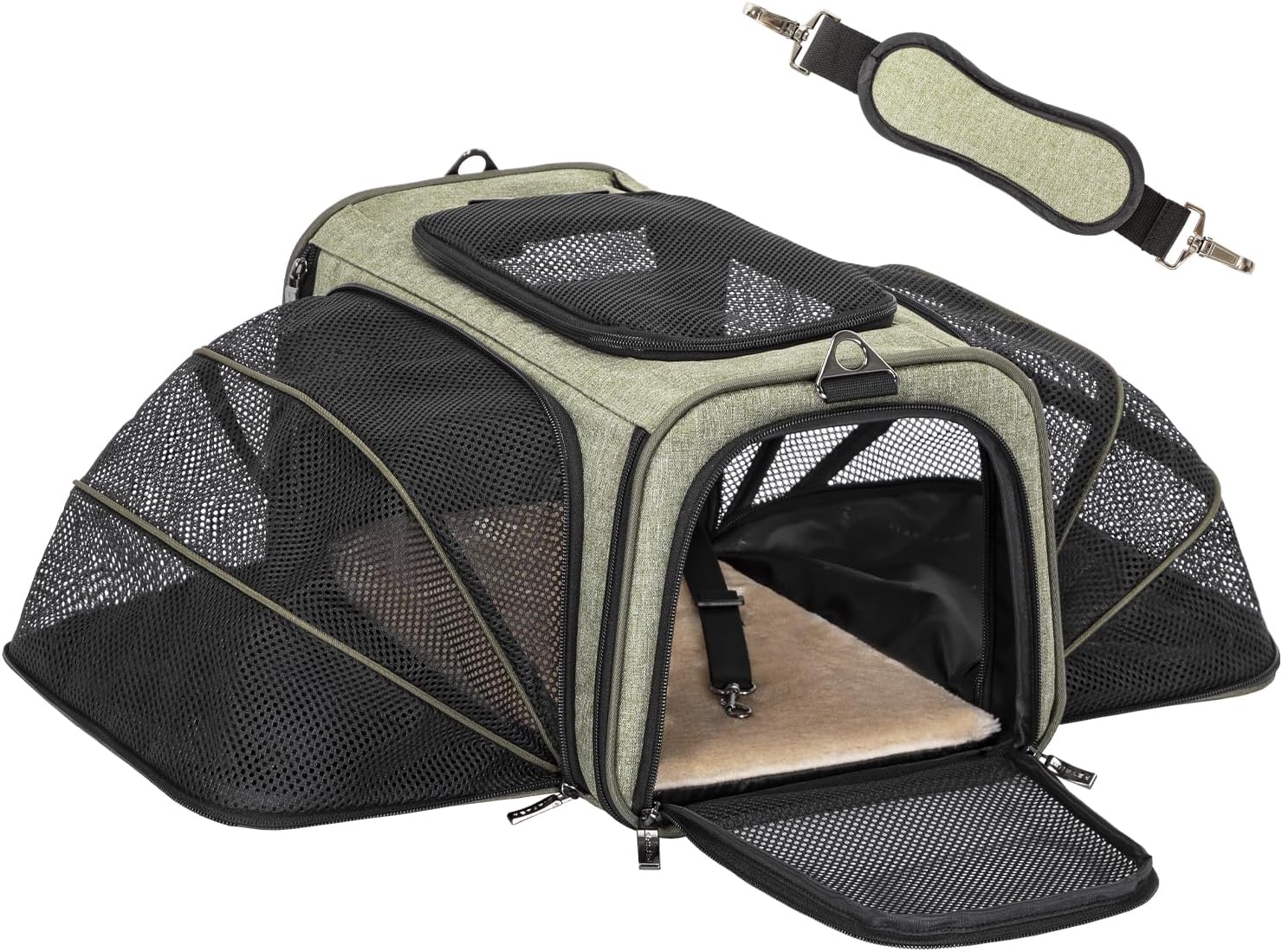 Petsfit Expandable Cat Dog Carrier Airline Approved, 17" L x 11" W x 11" H Soft-Sided Portable Pet Travel Carrier for Kitten, Puppy, Removable Soft Plush Mat and Pockets, Auto-Locking Zippers