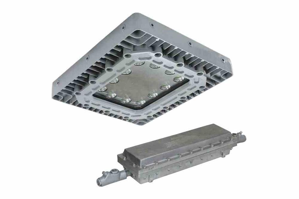 This Class I Divisions 1 & 2, Class II Divisions 1 & 2 explosion proof emergency light fixture provides 17,500 lumens of high quality light while drawing only 150 watts. The copper free aluminum alloy body is powder coated for added durability and an attractive aesthetic appearance. Special heat dissipating design in conjunction with LED technology helps this fixture to achieve an excellent 60,000 hour rated lifespan with 80% lumen retention. Light weight and a low profile make this unit an attractive alternative to larger and heavier older fixtures and requires less hardware to install. The EPLC2-EMG-HB-155W-LED-PND features a 60° beam angle ideal for narrow or confined spaces.
