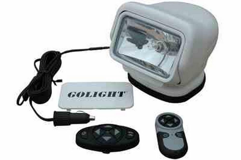 Remote Operation: Remote control functions include on/off, and 4 buttons which control up, down, left and right movement. The light will continue movement as long as the buttons are depressed. Releasing the buttons stops movement and holds the Golight in position. A fast and slow mode button (turtle/hare) controls the speed of the motor while the pan and tilt function buttons are depressed. Holding the button for 12 seconds in fast mode results in a full 370 degree rotation, and 8 seconds for full tilt. Slow mode is used for pinpoint accuracy at distance and is approximately 35 seconds for full rotation and 20 seconds for one full range of tilt. Durability: The GL-3067-24-M Golight Stryker is designed for demanding outdoor use with a weather resistant housing constructed of high quality ASA Luran thermoplastic that is heat resistant, impact resistant, UV resistant and able to withstand rugged use and abusive conditions. This model comes standard in a durable white. Also available are black, chrome and camouflage finishes. Remote movement of this spotlight is provided by an automotive grade internal motor, gear, and transmission assembly that is constructed of LEXAN, brass, and stainless steel to provide rust and corrosion resistance as well as long life and reliable operation. Magnetic Mounting: This light mounts using our magnetic mounting system consisting of a magnetic base encapsulated in soft rubber which prevents scratching of vehicle finishes and allows it to adapt to uneven vehicle surfaces for a secure grip. The magnetic base is water tight, sealed against intrusion from dust and dirt, and has 200 pounds of gripping force. This base has been tested to 60 mph to ensure effective stability at highway speeds and includes a rubber cord grip for secure power connections. Power: This Golight is connected to power through a detachable 16 foot, 16 AWG zip cord terminated with a cigarette plug. This cord can be attached and detached from the light via a 2 pin molded, weatherproof connector that connects the cord to the Golight’s integral 1 foot pigtail wire. This cord and magnetic mounting system allows easy setup of the light on vehicles and equipment. Operators can simply detach the light from the vehicle, unplug the cord, and switch the light to another vehicle in a matter of minutes, or simply stow the light for extended storage or to prevent theft. This light operates with 24 volts DC and draws 2.7 amps , making it ideal for vehicles, boats, ATVs, and similar sources of 24 volt direct current. Golight 24 volt models are configured using an internal step down transformer. The step down transformer is inline, within the housing of the Golight remote control light. For this reason, all replacement parts, including bulbs, motors and other electrical components are still 12 volts. The Golight 24 volt model is basically a 12-volt light with an integral step down board that converts the incoming 24 volts DC to 12 volts DC. Light Output: The lamp in this Golight Stryker is a 65 watt CR5 Pentabeam™ bulb which produces 500,000 industrial candlepower, or 6.5 million retail candlepower depending upon which rating system is used. This bulb is paired with a tight focus reflector and thick glass lens to produce a narrow spot beam over 850 feet in length. This beam is effective to the far end of its reach, producing enough illumination to read a book by at 850 feet. This 24 Volt Golight Stryker is ideal for hunting, security, boating, law enforcement, emergency services, utilities, and anywhere high power and remote control functionality are desired. This unit uses less power on a 24 volt system, making it well suited to vehicles and boats where power supply is limited. This Golight Stryker is also ideal for home and commercial security applications and can be adapted to standard 110-120 VAC wall outlet power using our . Note on Voltage: Most vehicles are 12 Volt. 24 Volts DOES NOT mean more power. Running a 24V light from a 12V power source will result in a very dim or non-functioning light, and may cause internal damage to the light as well. For common vehicle use, please order 12V.