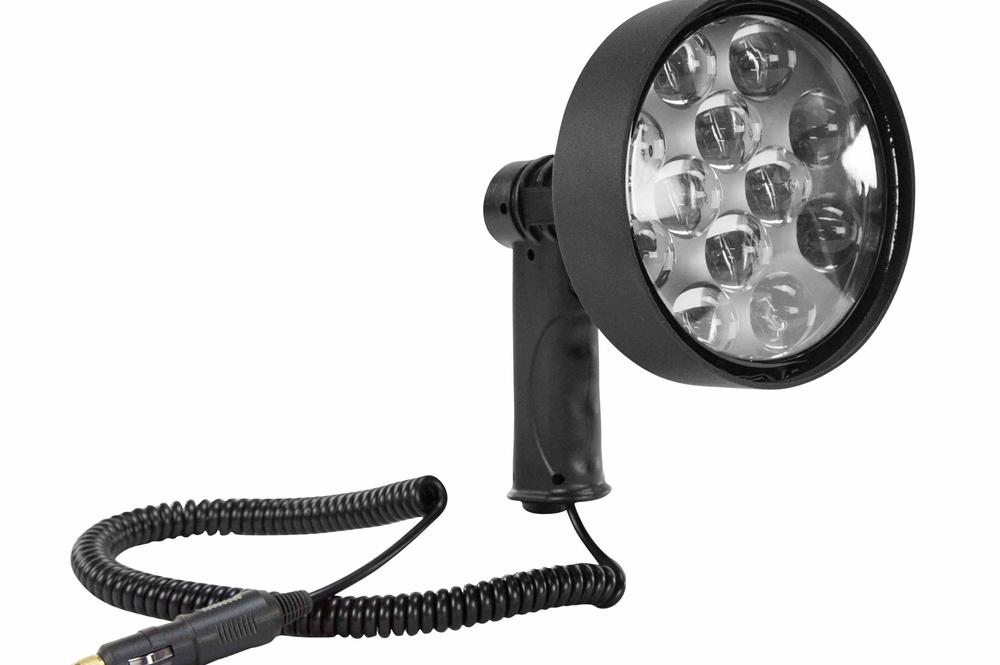 The HL-85-CPR-MS super bright handheld 10 million candlepower spotlight from Larson Electronics is lightweight, ultra rugged, and features a comfortable ergonomic design. This unit uses seven high output Cree LEDs and an advanced reflector and lens configuration to generate 3,200 lumens with a beam reach of over 1,600 feet while drawing only 36 watts of power. Equipped with a cigarette plug that operates on 12-24V DC, this IP67 rated waterproof spotlight is ideal for hunting, camping, marine and boating use as well as for first responders and emergency services. The HL-85-CPR-MS features a momentary switch that keeps the light on as long as the button is held down and turns the light off when the switch is released. Light Features: The HL-85-CPR-MS super bright handheld spotlight delivers an impressive 3,200 lumens while drawing only 36 watts of energy. With a combination seven high output Cree LEDs and a 5" reflector, this spotlight cuts through the darkness with a beam length of over 1,600 feet. The Cree LED units in this light have been chosen for their high lumen per watt ratio and extreme longevity. These Cree LEDs generate 56 lumens per watt effective lumen output and have a 70% lumen retention at 50,000 hours, giving them better efficiency and operational life than traditional light sources. The unique shape and shallow contour of the 120mm reflector is paired with a convex lens and inset lens position to efficiently capture and project a focused beam of light while reducing the light spillage and waste that is common with many spotlights. This efficient design also reduces casting, a phenomenon that occurs when wasted light "spills" around the light source. Often times, when surrounded by water, snow or other reflective surfaces, this light spillage prevents the human eye from adjusting properly and seeing objects at distance. With the HL-85-CPR-MS spotlight configuration, 90% of the emitted light is captured and focused, clearly and sharply illuminating objects all the way to the end of the beam reach. This IP67 rated waterproof spotlight features an ultra-durable ABS shockproof polymer body, an aluminum alloy light head housing, and an impact resistant polycarbonate lens. While the HL-85-CPR-MS is built to withstand rugged use and harsh outdoor conditions, comfort and ease of operation haven`t been sacrificed. This unit is ergonomically designed for balanced and comfortable handling. The 4.5"L x 1.5"D and 5/8 inch thick nylon handle has a no-slip textured surface that ensures a firm grip even in wet conditions. The booted push button is conveniently placed to allow operators easy forefinger access to the switch for quick on/off action. On/Off Switch Operation: The HL-85-CPR-MS LED handheld spotlight features a momentary on/off switch. This means that the spotlight will stay on as long as the switch is held down by the operator and will turn off as soon as the switch is released.