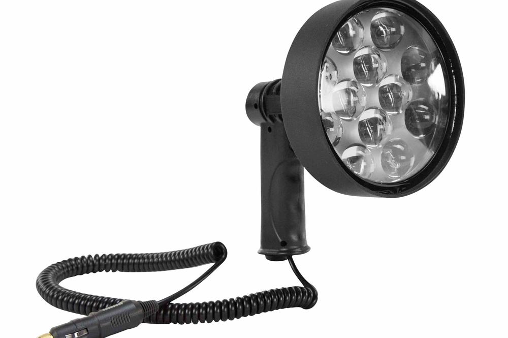 The HL-85-LED-CPR super bright handheld 10 million candlepower spotlight from Larson Electronics is lightweight, ultra rugged, and features a comfortable ergonomic design. This unit uses seven high output Cree LEDs and an advanced reflector and lens configuration to generate 3,200 lumens with a beam reach of over 1,600 feet while drawing only 36 watts of power. Equipped with a cigarette plug that operates on 12-24V DC, this IP67 rated waterproof spotlight is ideal for hunting, camping, marine and boating use as well as for first responders and emergency services. The HL-85-LED-CPR features a continual on/off switch that requires one press to stay on and another press to turn off. Light Features: The HL-85-LED-CPR super bright handheld spotlight delivers an impressive 3,200 lumens while drawing only 36 watts of energy. With a combination seven high output Cree LEDs and a 5" reflector, this spotlight cuts through the darkness with a beam length of over 1,600 feet. The Cree LED units in this light have been chosen for their high lumen per watt ratio and extreme longevity. These Cree LEDs generate 56 lumens per watt effective lumen output and have a 70% lumen retention at 50,000 hours, giving them better efficiency and operational life than traditional light sources. The unique shape and shallow contour of the 120mm reflector is paired with a convex lens and inset lens position to efficiently capture and project a focused beam of light while reducing the light spillage and waste that is common with many spotlights. This efficient design also reduces casting, a phenomenon that occurs when wasted light "spills" around the light source. Often times, when surrounded by water, snow or other reflective surfaces, this light spillage prevents the human eye from adjusting properly and seeing objects at distance. With the HL-85-LED-CPR spotlight configuration, 90% of the emitted light is captured and focused, clearly and sharply illuminating objects all the way to the end of the beam reach. This IP67 rated waterproof spotlight features an ultra-durable ABS shockproof polymer body, an aluminum alloy light head housing, and an impact resistant polycarbonate lens. While the HL-85-LED-CPR is built to withstand rugged use and harsh outdoor conditions, comfort and ease of operation haven`t been sacrificed. This unit is ergonomically designed for balanced and comfortable handling. The 4.5"L x 1.5"D and 5/8 inch thick nylon handle has a no-slip textured surface that ensures a firm grip even in wet conditions. The booted push button is conveniently placed to allow operators easy forefinger access to the switch for quick on/off action. On/Off Switch Operation: The HL-85-LED-CPR LED handheld spotlight features a continual on/off switch. This means that the spotlight will stay on after a single button press and remain on until the power button is pressed again. Operators simply press the button once and will have a continual source of high-intensity LED light for their illumination needs until the on/off switch is pressed again to turn the light off. There is no need to keep pressure on the on/off switch at all times when light is desired unlike other spotlight models on the market that feature a trigger type switch. This operation of the on/off switch makes the HL-85-LED-CPR an easy to use and convenient source of portable LED light.