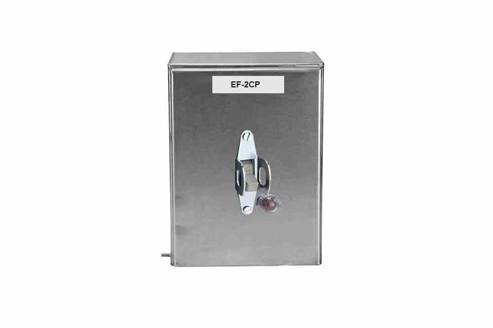 | The IND-CS-SS-M4 from Larson Electronics is an Industrial Stainless Steel Power Switch that offers control options for connected systems. This IP66 rated unit is designed for on/off operation and features a padlockable design for security. The device is constructed of stainless steel and is compatible with flanged panel mounting requirements. The IND-CS-SS-M4 is recommended for use in industrial sites and facilities. Designed for on/off operation, this power switch features the following label at the top/center: EF-2CP. The heavy-duty switch is constructed of stainless steel, with a hinged cover. Stainless steel control stations in this series can be customized with the following components: panel ID (316 stainless steel), tamperproof latches, key latches, copper ground/earth bars, hubs (quantity/location), glands, backplates, terminals and more. Wiring: Terminal strips inside the device are available for completing wiring connections. Mounting: The IND-CS-SS-M4 is compatible with flanged panel mount installations. Â |