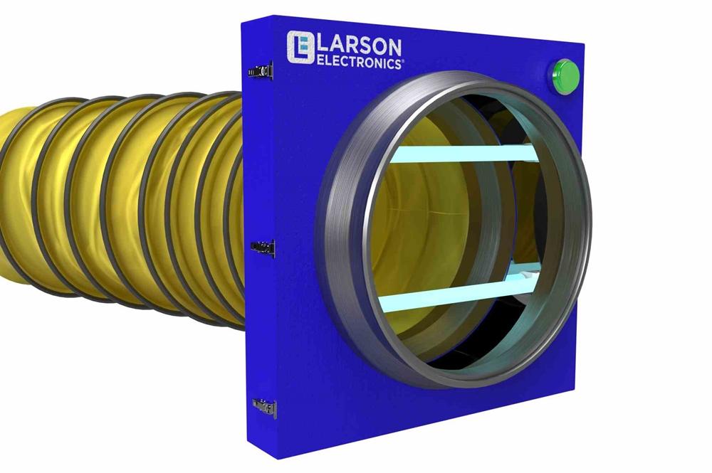 This unit is Made In USA - Manufactured in Texas The Larson Electronics IND-FDP-BXC-10D-18-2L-R1-N3R-120V-50C UV Air Sanitizer for Inline Fan continuously cleans moving air in ducts and fan systems. Equipped with two germicidal UV lamps, the unit offers UV-C output at a range of 200nm - 280nm (254nm) and is installed between the ductwork and portable fan. The UV system is made out of powder coated aluminum and carries a NEMA 3R rating for use in both indoor and outdoor locations. This device is suitable for 8" ducts. *Please note: This product produces UV light. Make sure to follow all safety guidelines and protocols found in the user manual. UVC light in the proper setting kills up to 99.9% of viruses, mold, spores and bacteria. * The IND-FDP-BXC-10D-18-2L-R1-N3R-120V-50C is a powerful sanitation solution for cleaning circulating air from inside ducts connected to inline fans. Equipped with two UVC fluorescent lamps, this system offers UV output, within the 200nm - 280nm UV-C range (254 nm). The lights have an expected lifespan of 8,000+ hours and emit a flood beam pattern with 360 degrees of coverage. Suitable for cleaning both intake and exhaust air, this UV germicidal system is compatible with 8" ducts and up to 750 CFM. The UV device is made out of aluminum with a powder coated blue finish for durability. A NEMA 3R rating allows the unit to be used in both indoor and outdoor locations. An external indicator light turns on when the unit is in use to safely notify the operator about ongoing sanitation inside the duct. Operators are provided access to an external power switch for activation at safe distances. The UV light in this system can disinfect over 99% of bacteria and viruses, as well as kill 99% of viruses, bacteria, mold and spores. Voltage: The IND-FDP-BXC-10D-18-2L-R1-N3R-120V-50C operates on 120V AC.