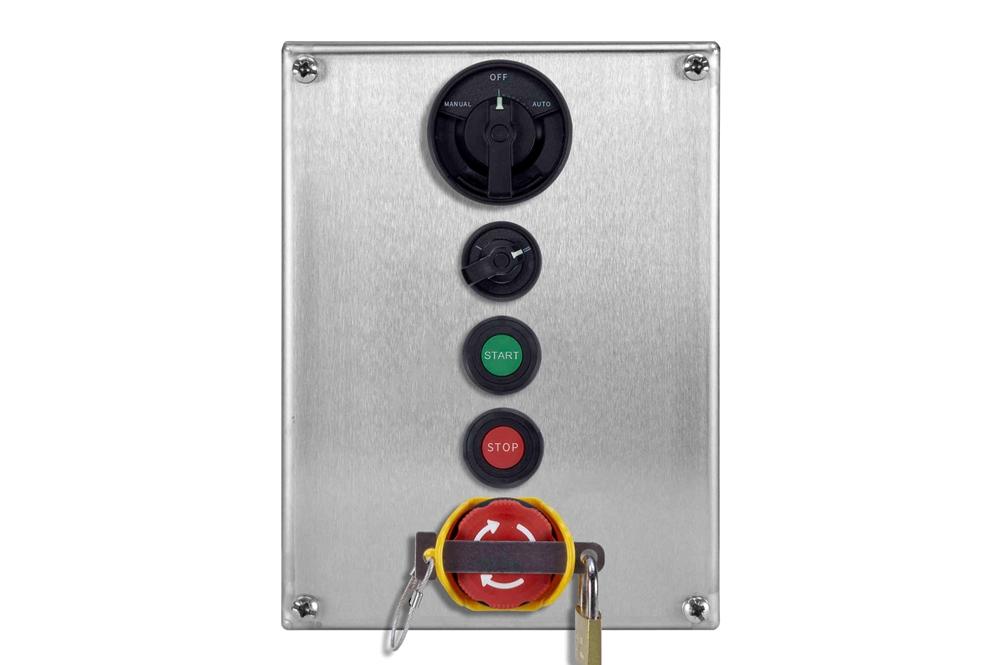 | Selector Switches: (1) 2-Pole, 3-Position Selector Switch Labeled "Manual", "Off", "Auto"; (1) 2-Position Selector Switch for Forward or Reverse | |