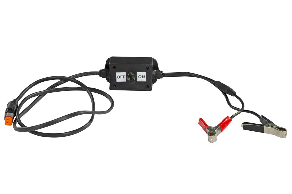 Inline On/Off Toggle Switch for LED Lights - AC or DC - For Larson Electronics LED Lights This toggle switch is installed inwith between the light and the power source, allowing operators to quickly and easily power their LED lights on or off. Two predrilled holes on each side of the switch allow for permanent flat surface mounting. The output wiring whip is terminated in a male water tight two pin Deustch connector. The input wiring whip is offer with a female twp pin Deutsch connector, battery clamps, or ring terminals termination.