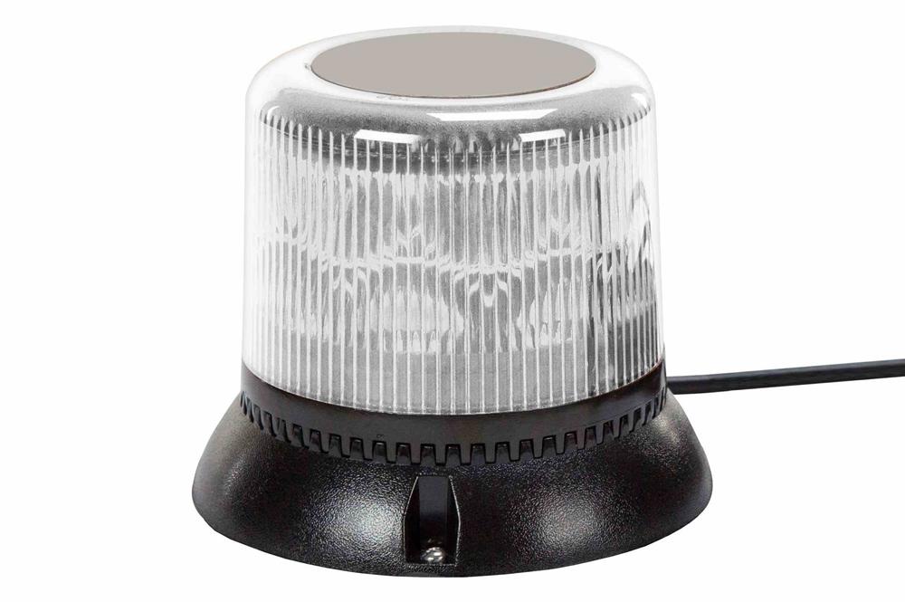 Made in the USA The Larson Electronics LEDB-2-W-PMK Single LED Strobing Beacon works on 12 to 48 volts DC, offers a choice of colors, and is equipped with a permanent mount and pipe mount kit for secure and durable mounting to flat surfaces. This compact, Generation 3 LED beacon contains an LED lamp assembly that produces 360° of brilliant light without the dark spots or unevenness of traditional incandescent beacon lights. This LED beacon is available in white and includes a permanent mounting system via through holes and self tapping screws. This unit also includes a 1/2 inch pipe mount kit and embedded threaded pipe mount in the base. This permanent mounting system provides maximum mounting security and reliable performance. LED Benefits: Unlike gas burning and arc type lamps that have glass bulbs, LEDs have no filaments or fragile housings to break during operation and/or transportation. Instead of heating a small filament or using a combination of gases to produce light, light emitting diodes (LEDs) use semi-conductive materials that illuminate when electric current is applied, providing instant illumination with no warm up or cool down time before re-striking. Because there is no warm up period, this light can be cycled on and off with no reduction in lamp life. LED lights run at significantly cooler temperatures than traditional metal halide and high pressure sodium lights and contain no harmful gases, vapors, or mercury, making them both safer and more energy efficient. No extra energy is wasted in cooling enclosed work areas due to external heat emissions from bulb type lights, and the operator risks associated with traditional lighting methods, such as accidental burns and exposure to hazardous substances contained in the glass bulbs, are eliminated. In addition, LEDs are also safer for the environment as they are 100% recyclable, which eliminates the need for costly special disposal services required with traditional gas burning and arc type lamps. This magnetic mount LED beacon has triple, quad, double and fast single flash modes that flash at approximately 109 flashes per minute. This waterproof and shock resistant beacon has a black injection molded ABS base that mounts with 3 self tapping screws and includes a gasket for positive sealing to the mounting surface. This unit contains a fully potted circuit board topped off with an LED assembly protected by a polycarbonate lens cover that is designed to efficiently distribute the flash over a 360 degree radius. The colors of this unit are produced by color specific LEDs rather than a colored lens. This increases the effectiveness and reliability of the unit as there is no chance of lens discoloration and no loss of output due to lens dissipation. This LED beacon draws less than 1 amps on 12 volts and can be operated with 12 to 48 volt DC current. Power and ground leads protrude from the base of this LED beacon to power the unit. Operator provides 16 AWG wire to power source (battery, fuse block, etc.). This unit generates a superior signal in an extremely small, durable package.