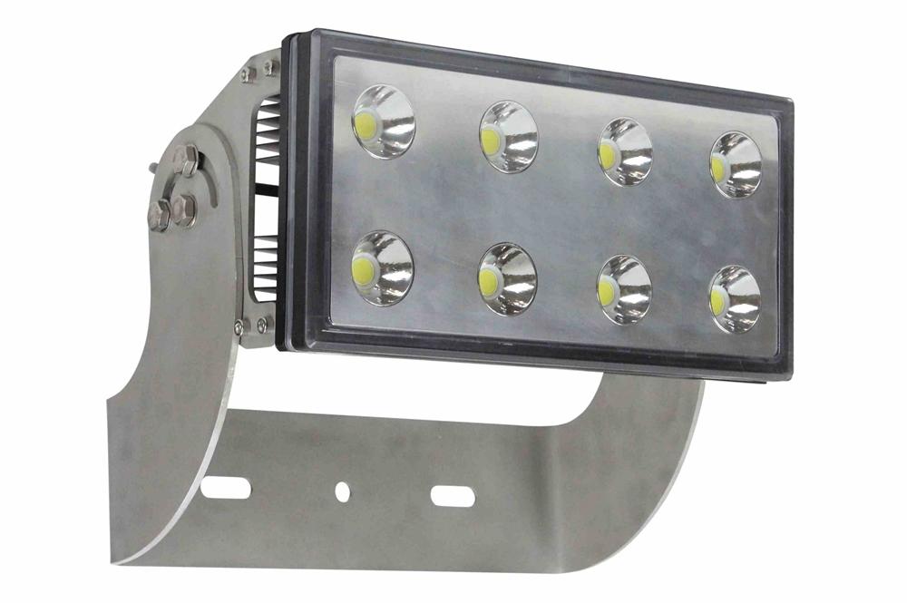The LEDWP-1000-10C-GP LED wall pack light from Larson Electronics produces a long flood beam of light while drawing only 0.83 amps at 100 watts on a 120 volt AC electrical system. The light assembly consists of eight high output MCOB LEDs paired with specular reflectors to produce a light output comparable to that of a 400 watt metal halide. This LED wall pack is IP67 rated and designed to withstand demanding conditions and is waterproof, vapor proof, and built to resist the damaging effects of an outdoor environment.