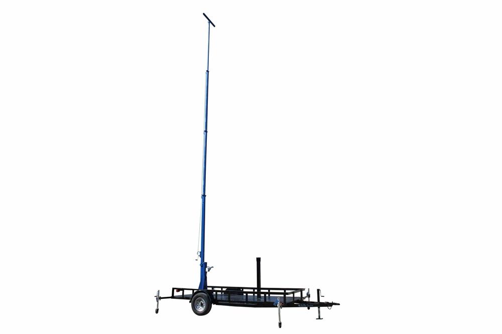 60' 8-Stage Light Mast on 14 Foot Single Axle Trailer w/ Wheels, Extends to 60 Ft, 125 Lbs Payload, Aluminum MastPL3-LM-60-8S-ALU-125LBS-TLR14