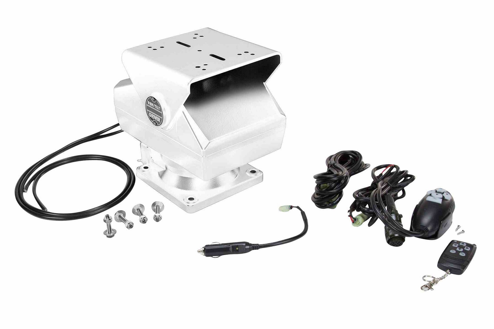 This unit is constructed of die-cast aluminum and powder coated with a white finish for added corrosion resistance. The internal gears of the PTB-1-WHT provide no slip and no "slop" during operation, and the pan/tilt base holds its position after movement has stopped. Mounting is provided via four-corner thru-holes. This pan/tilt base will keep its position during storms and strong winds and holds up to vibrations in vehicle and offshore applications.