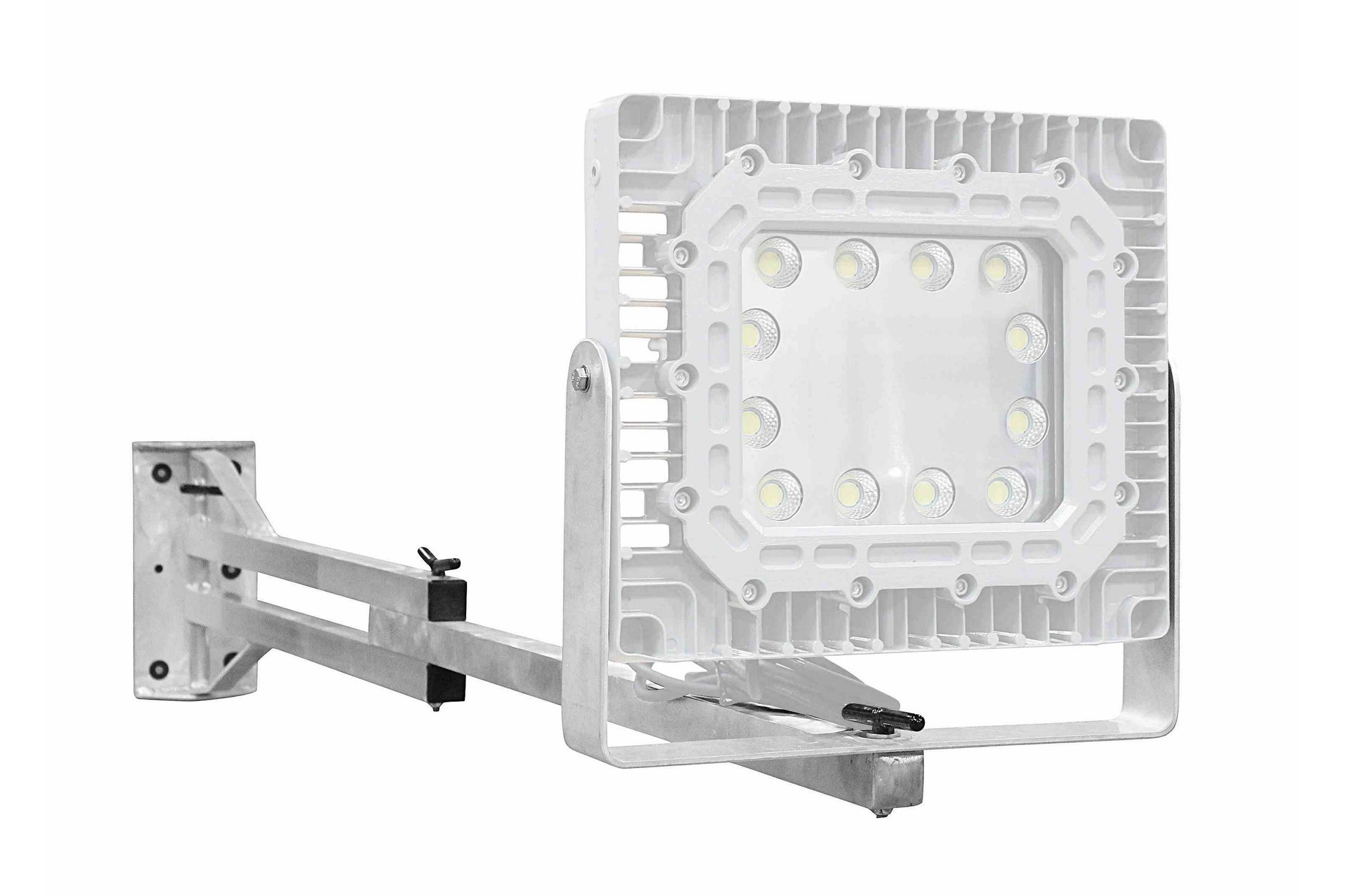 The SWAM-SBDL-36-EXPSW features an adjustable two-part swing arm constructed of light weight aluminum. The two piece arm design provides two pivot points, one at the mounting bracket and one in the center of the swing arm. The aluminum swing arm swings 170° from the mounting bracket point and 340° from the center pivot point, while a mounted light head is vertically adjustable up to 270°, providing full adjustability. This switch blade swing arm measures 36" long and can be mounted with the operator provided light head oriented on the top side or bottom side of the arm, allowing operators to illuminate objects in any location. This swing arm is ideal also for mounting the unit to loading door areas and docks for use as a loading bay or dock light.