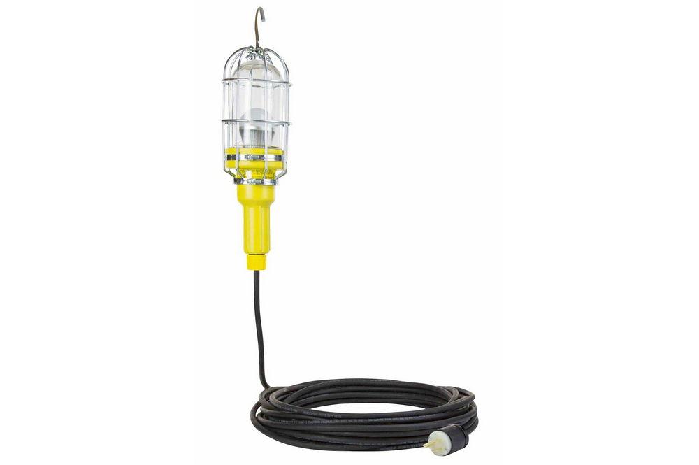 Lamp: The 10-watt LED lamp used in this unit produces nearly 3 times the illumination of incandescent lamps as measured in foot candles, at less than 1/10th of the electricity usage and without the associated heat. This LED drop light runs at operating temperatures of 55° F, greatly reducing the chances of accidents or burns commonly associated with incandescent drop lights. This lamp has no ballast, which reduces lamp weight, a steel globe guard, and a stainless steel hook for easy overhead mounting. The solid state LED bulb has no filament, making it resistant to damage from impacts and dropping.