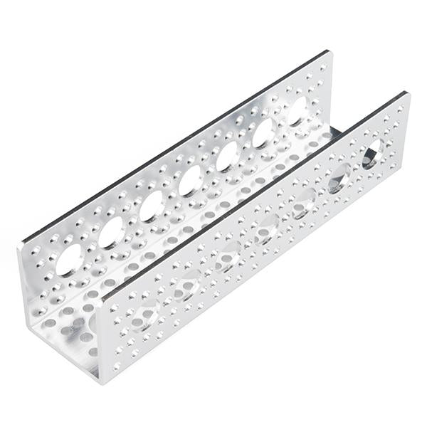 These aluminum channels are the building blocks to the [Actobotics](https://www.sparkfun.com/pages/Actobotics) line and function as the back bone to your electromechanical project. These channels can serve as connection points for servos, motors, and shafts while still providing an easy to assemble structure. Each aluminum channel has exterior dimensions of 1.5" wide by 1.5" tall, interior dimensions of 1.32" wide by 1.41" deep, a 0.09" thick wall, utilize both the 1.5" and 0.77" hub patterns, and are 6" long.