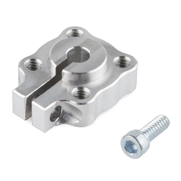These clamping hubs are a great and cost-effective choice when attaching hub mount gears or wheels to shafts or tubes and can be a better option than set screw hubs if you don't want to risk damaging whatever you need clamped. These clamping hubs have a 5mm bore, four 6-32 tapped holes, one 6-32 machine screw for tightening, and utilizes the 0.77" hub pattern.