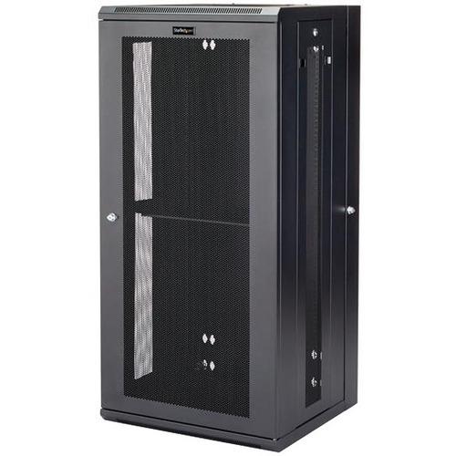 The 26U network cabinet features a removable and reversible front door and removable side panels, each with quick-release mechanisms, so you can easily access your equipment. Plus, each door and panel on this rack features an independent lock, ensuring your equipment is secure.
