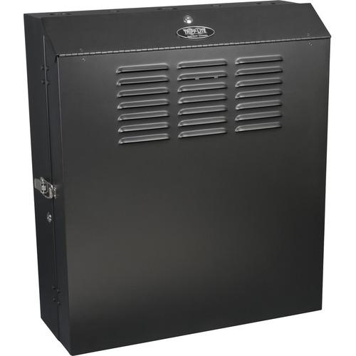 The SRWF5U SmartRack 5U Low-Profile Vertical-Mount Switch-Depth Wall-Mount Rack Enclosure Cabinet is designed to house EIA-standard 19-inch rack equipment in network wiring closets, retail locations, classrooms, back offices and other areas with limited floor space where you need equipment to be secure, organized and out of the way. Constructed from heavy-duty steel with a durable black powder-coated finish, the cabinet has a maximum load capacity of 150 pounds.Because the low-profile cabinet mounts vertically, it extends less than 10 inches from the wall while housing equipment up to 20 inches deep, including network switches and patch panels. In addition to 5U of rack space in the primary mounting area, it also includes a slide-out 2U mounting bracket at the top of the enclosure for patch panels up to 2.5 inches deep. The top panel and front door lock securely to help prevent damage, tampering or theft. The cabinet is vented, which allows air to flow freely and keep equipment cool. The reversible front door can open left or right. Convenient top and bottom ports allow easy cable routing. The SRWF5U comes fully assembled and ready to mount to the wall. Equipment installation is easy with threaded mounting holes and hardware that support M6 or 12-24 mounting.- Maximum load capacity of 150 lb.