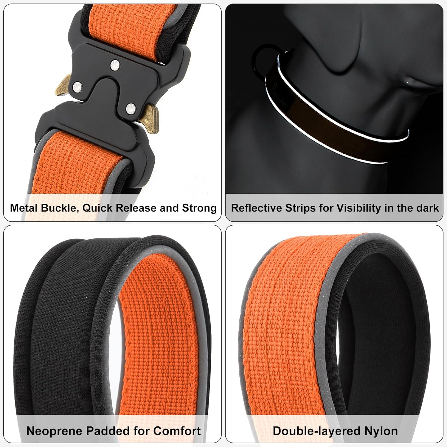 • Soft Neoprene Padded Comfort. Comfort is key for our four-legged friends. That's why our military collar features soft padding, providing your dog with comfort during walks, hikes, or training sessions. Say goodbye to chafing or discomfort – our collar keeps your pet content and secure.