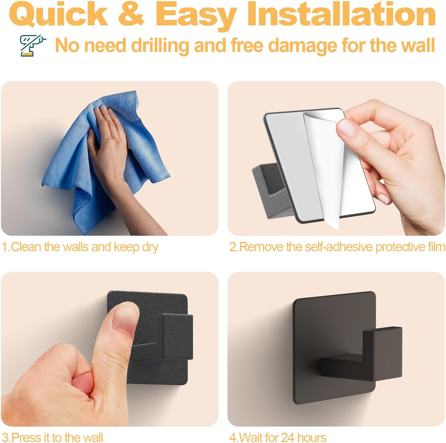 •  Durable and Sturdy: The self-adhesive towel hook is made of aluminum to ensure quality and service life; It will not rust or corrode after long-term use