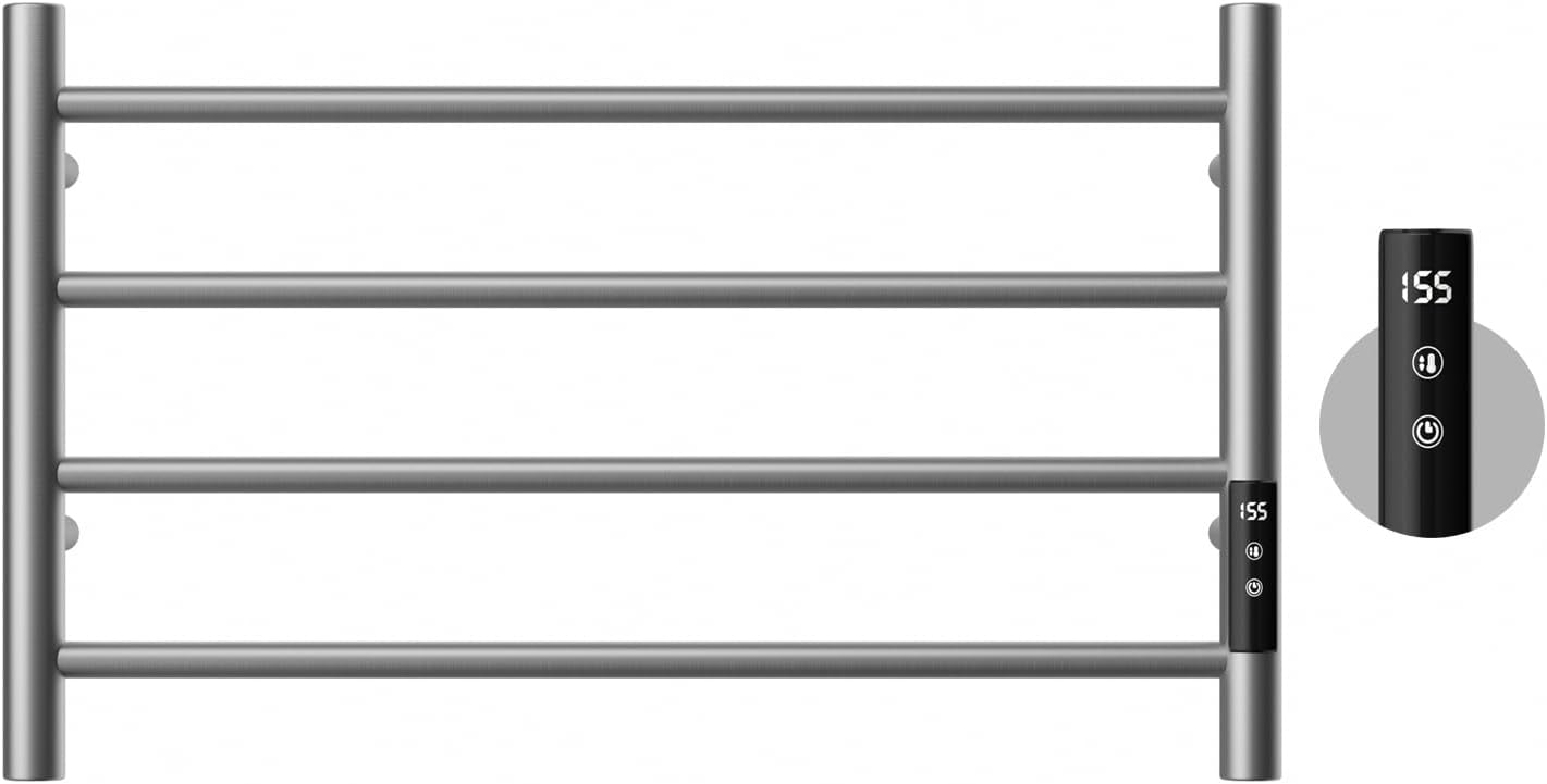 POPFLY Heated Towel Rack, Wall Mounted Electric Hot Towel Warmer, 4-Bar 304 Stainless Steel Small Heated Towel Warmer Rack for Bathroom with Timer and Temperature Control, BrushedPL17-B0D25LCX8Q
