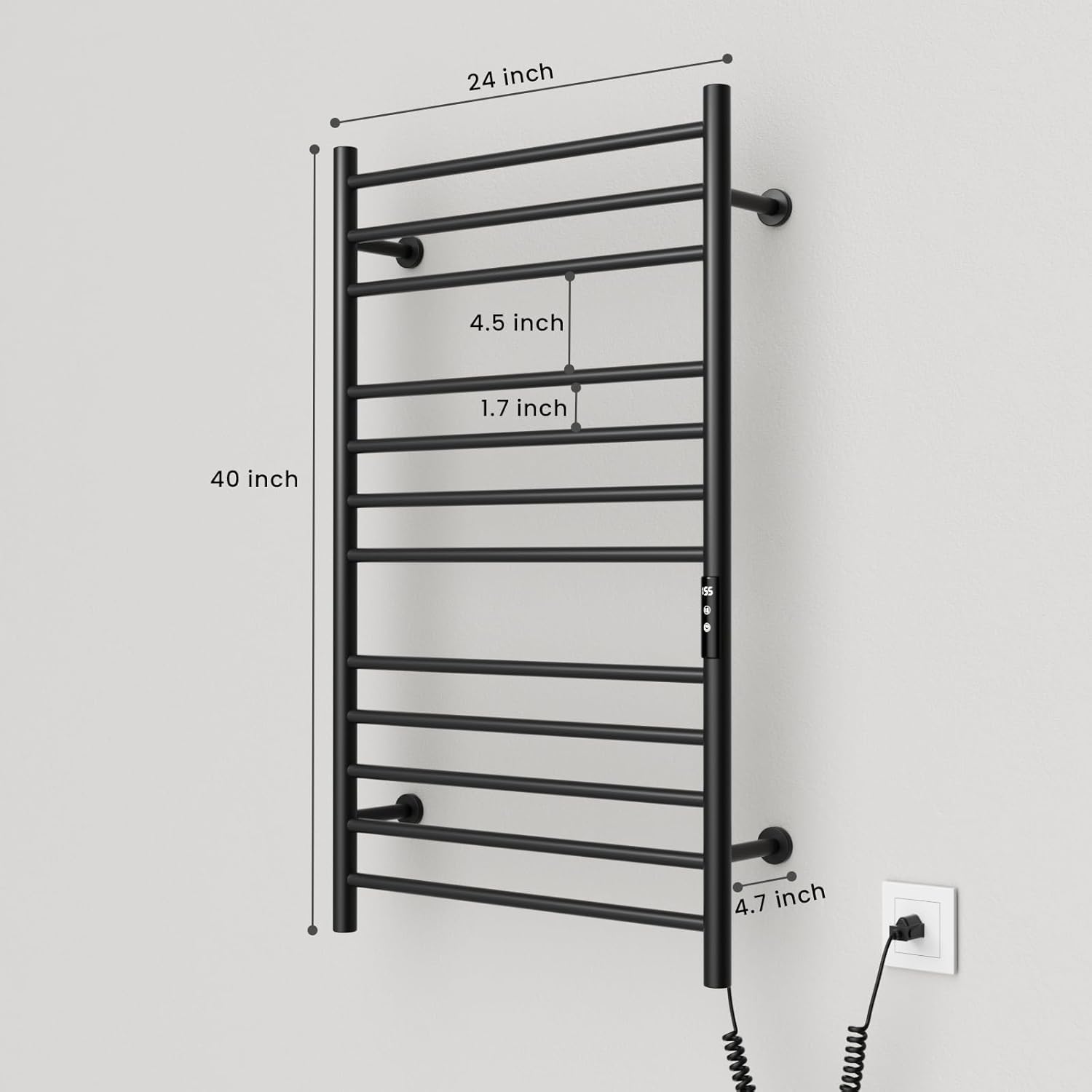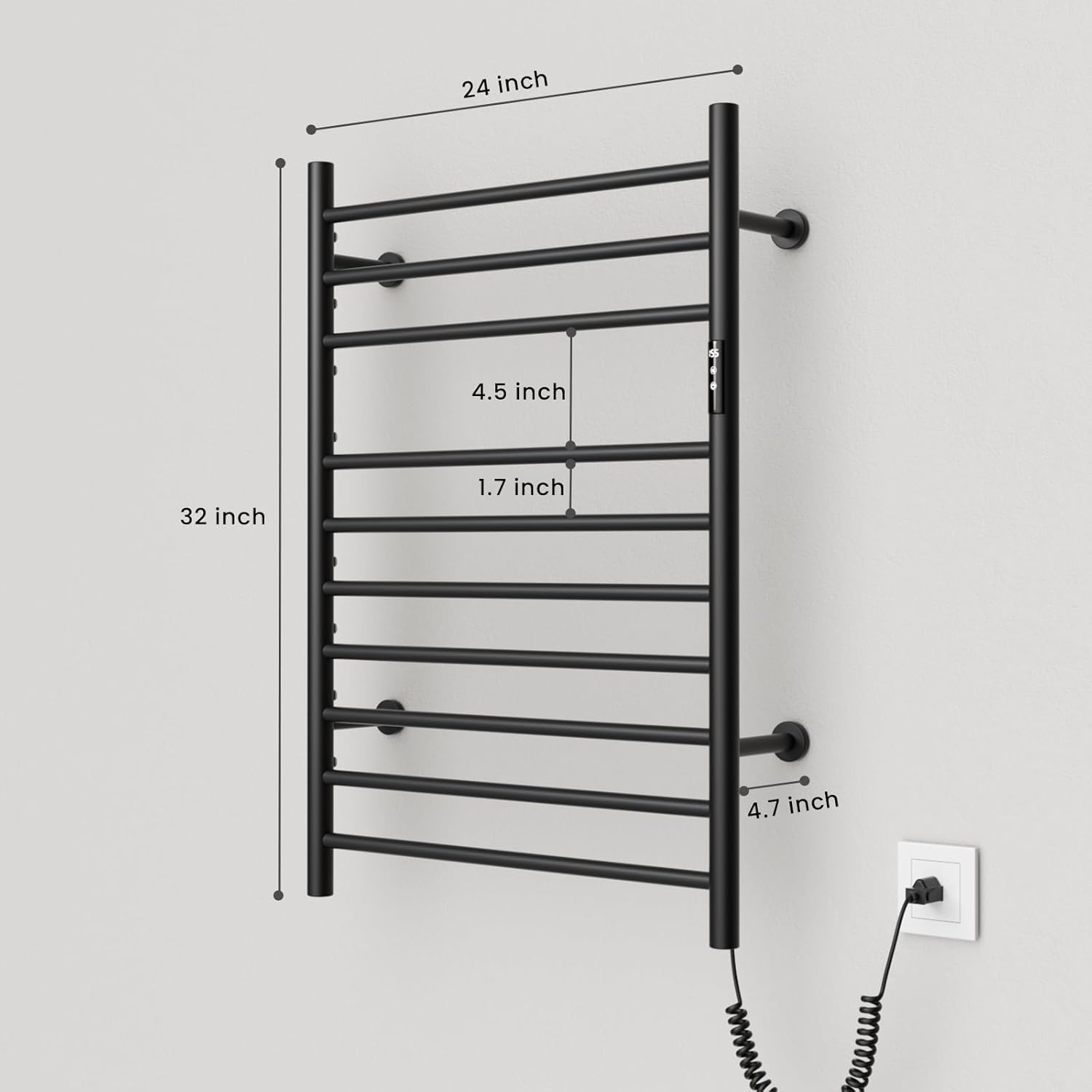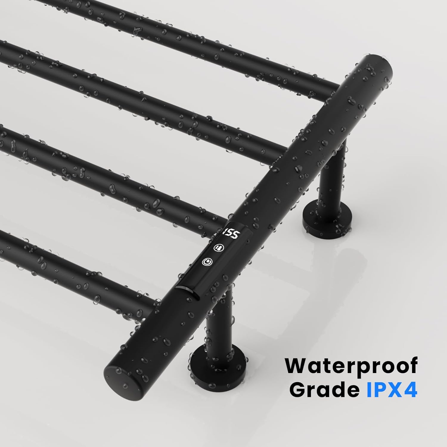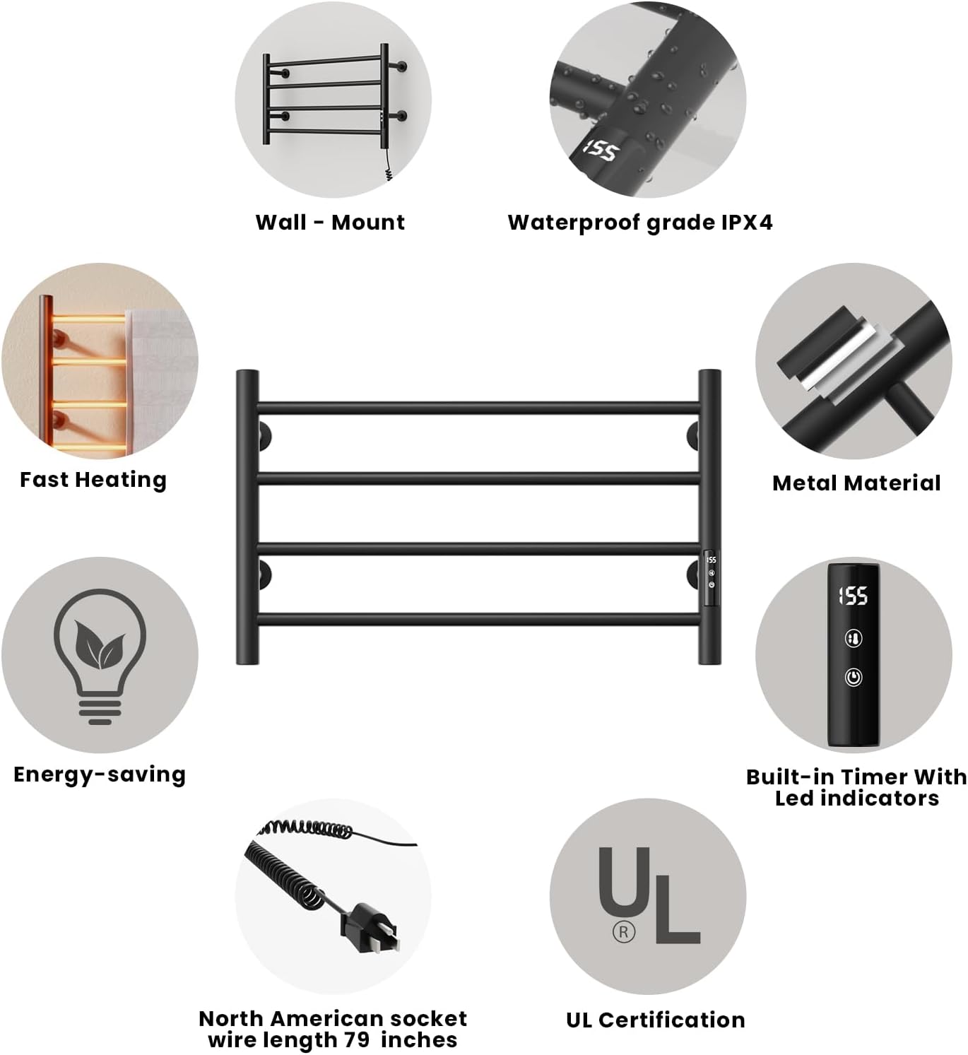 • 【Premium Material】Heated Towel Rack is made of 304 stainless steel, laser welded without any sharp edges. Easy to clean and durable use