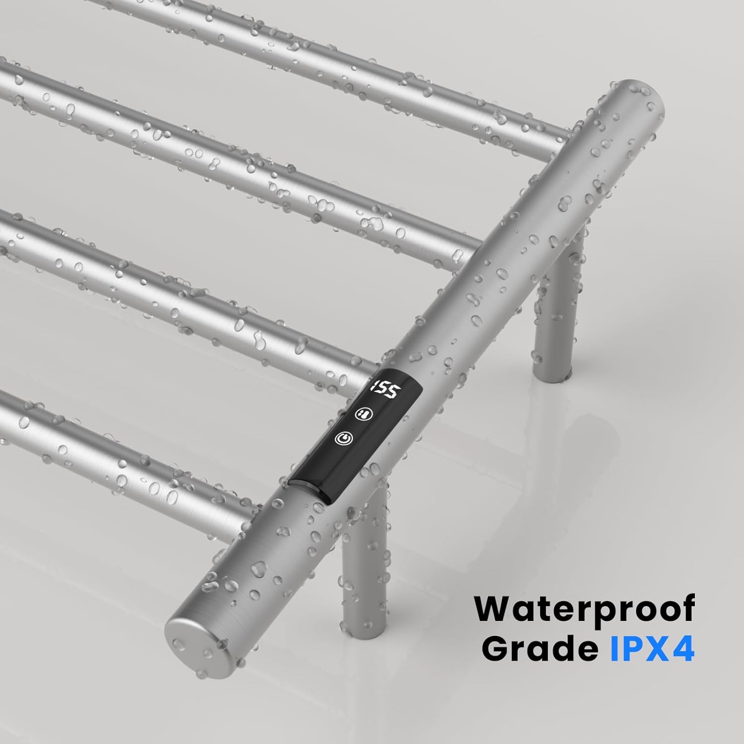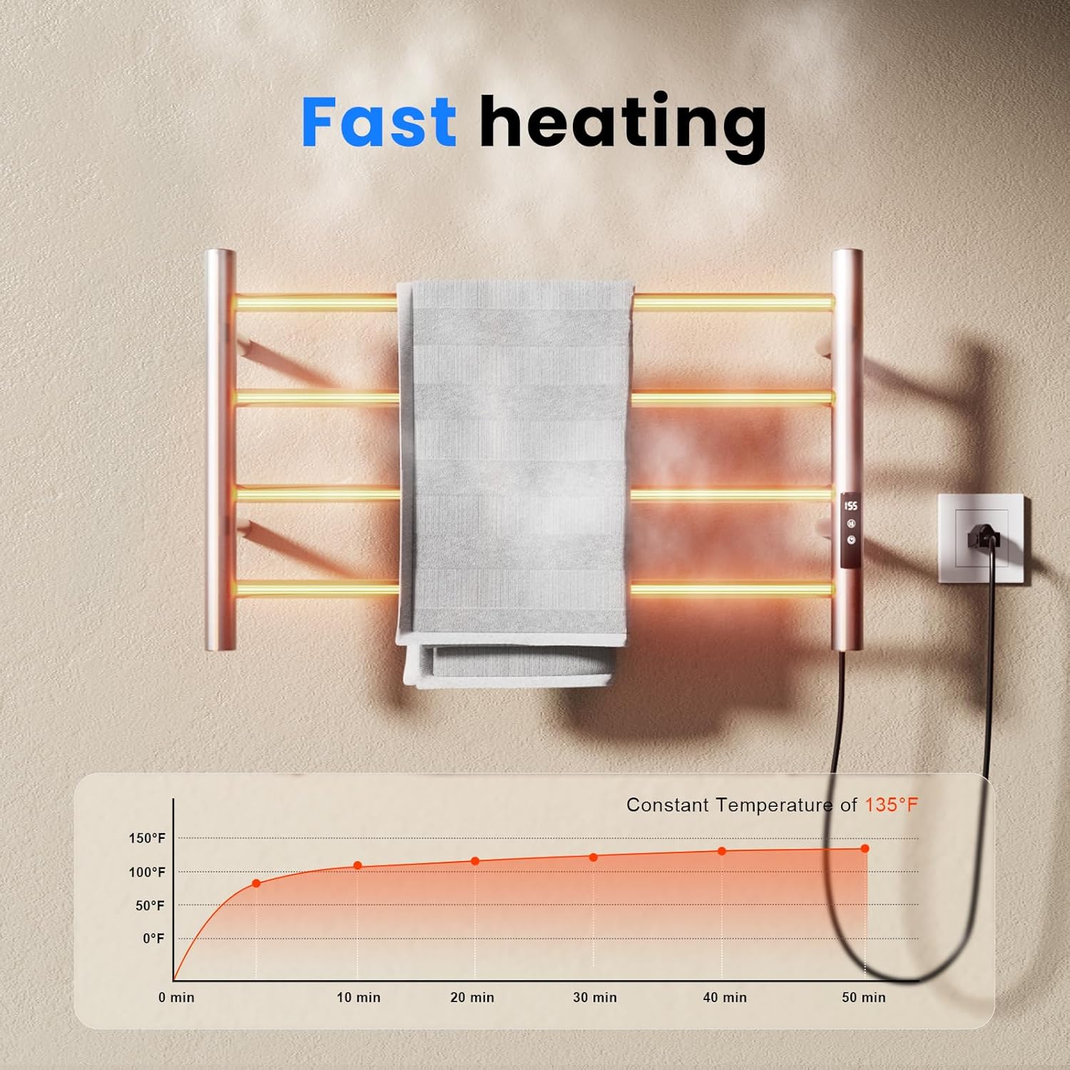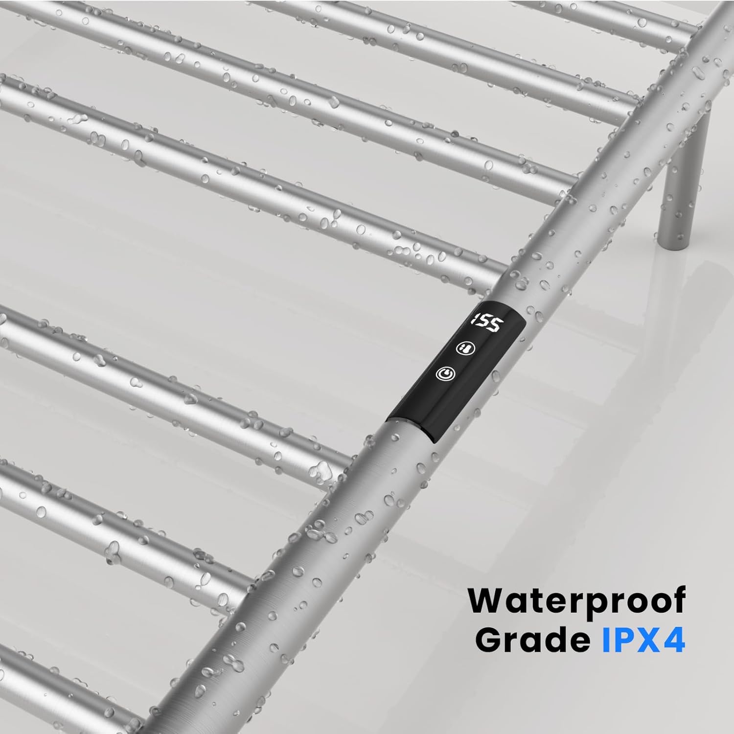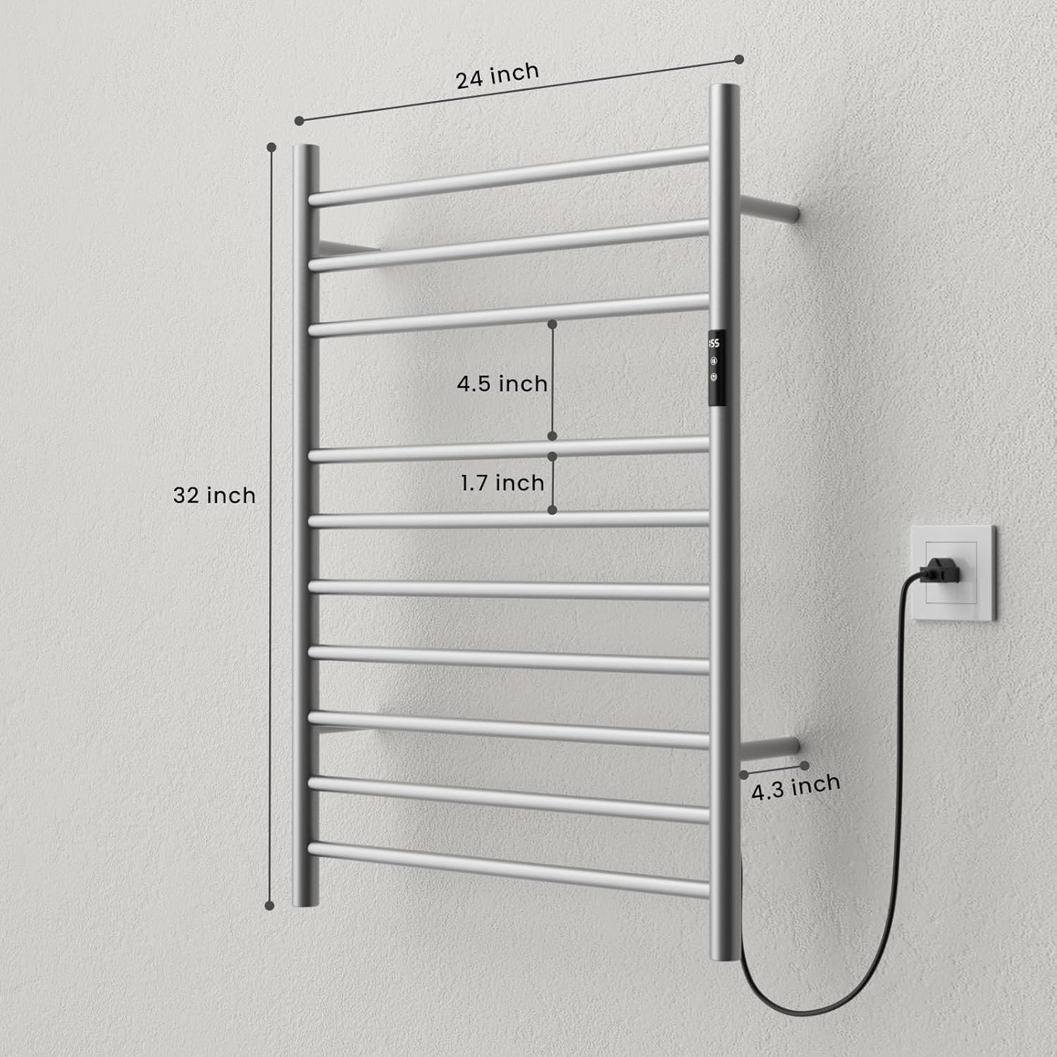 • 【Premium Material】Heated Towel Rack is made of 304 stainless steel, laser welded without any sharp edges. Easy to clean and durable use