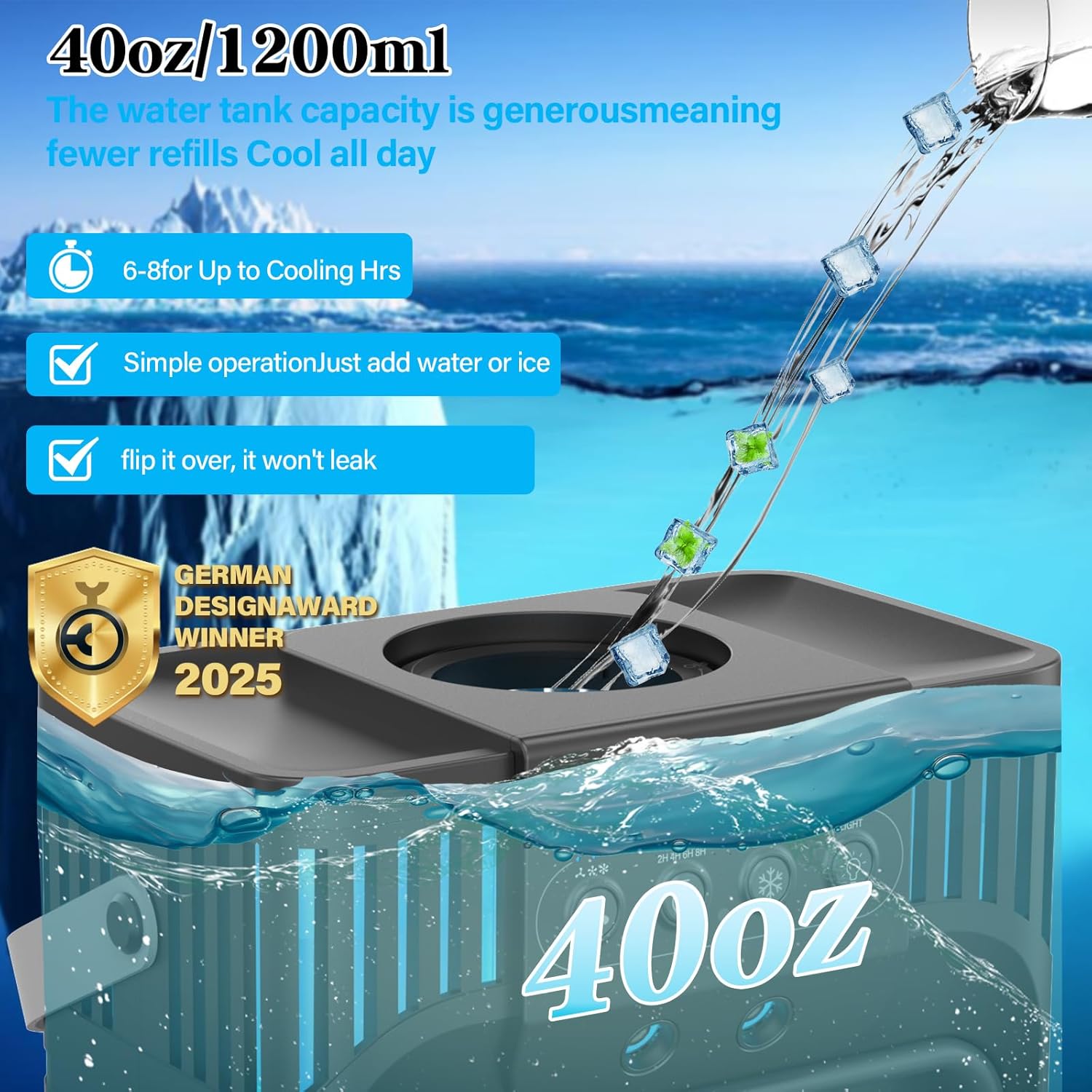 {3S Cooling, High -Efficiency Refrigeration Atomization}LEAEYFE upgraded version of the portable air conditioner is equipped with 2000r/h high-speed motor plus dual ultrasonic atomizers, which can reduce the surrounding temperature to 86F-68F in just 3 seconds to provide you with strong, cool, fresh air flow instead of being caught by heat waves.