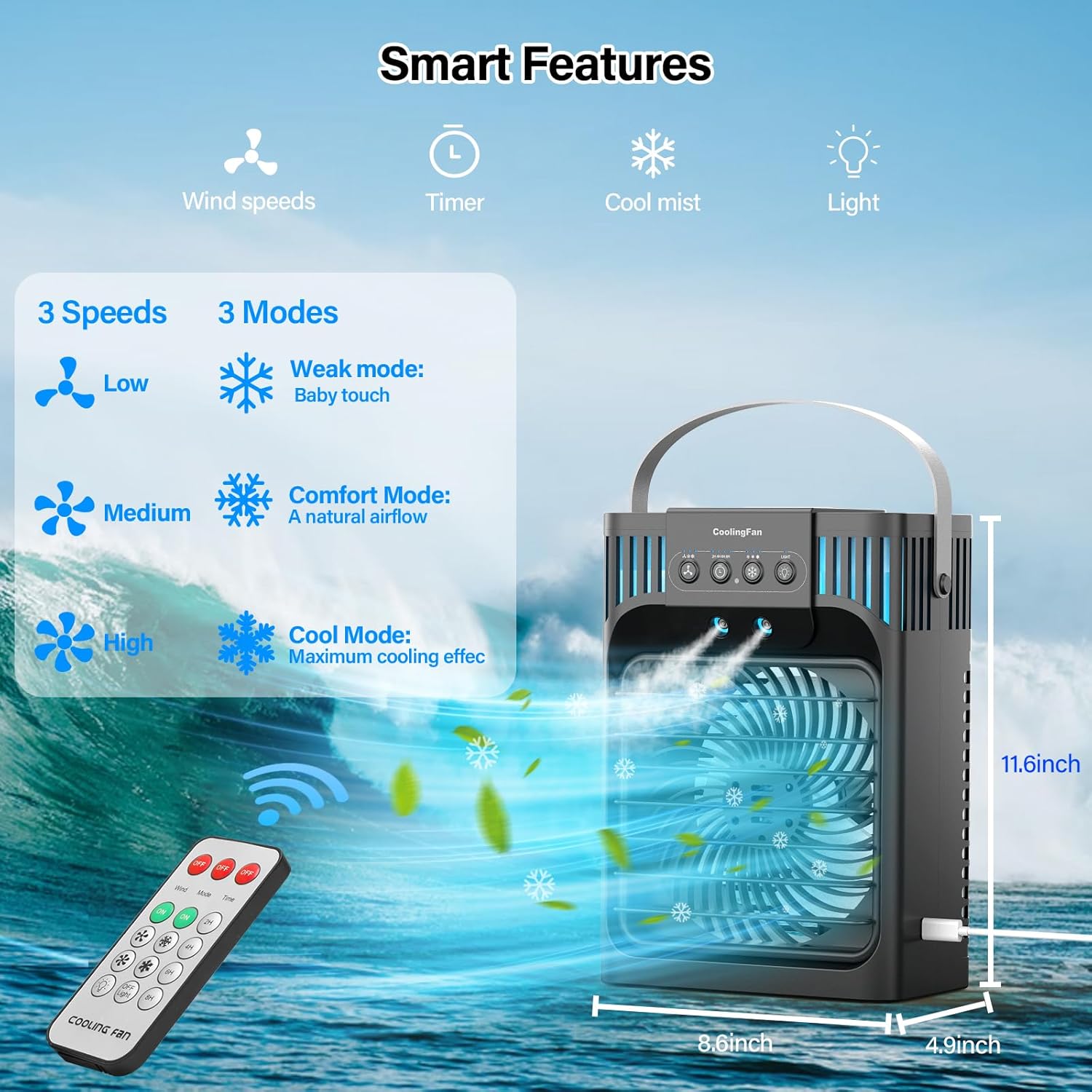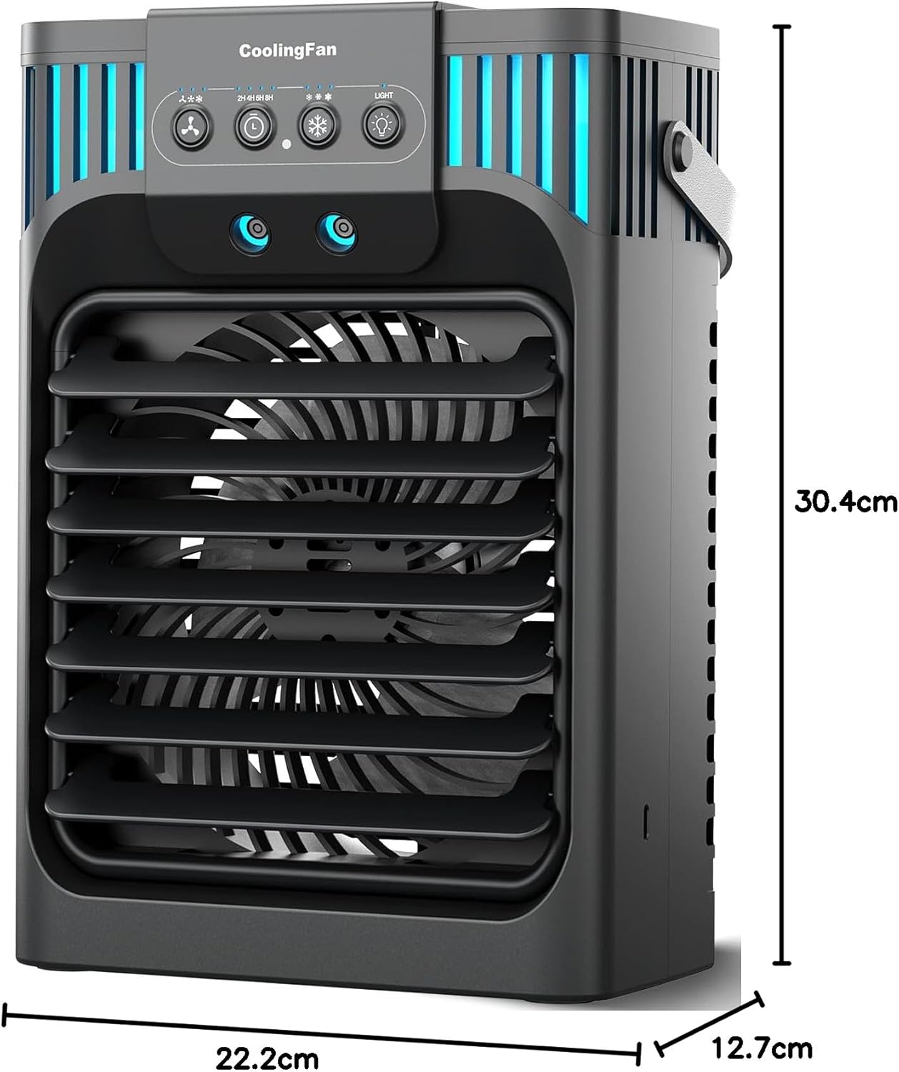 Portable Air Conditioner, LEAEYFE 3 Higher Speeds With 1200ml Extra Large Water Tank, 7 Color Lights 2/8 Hour Timer, 120° OscillatingCooling Fan For Desk, Home, Bed and Living Room