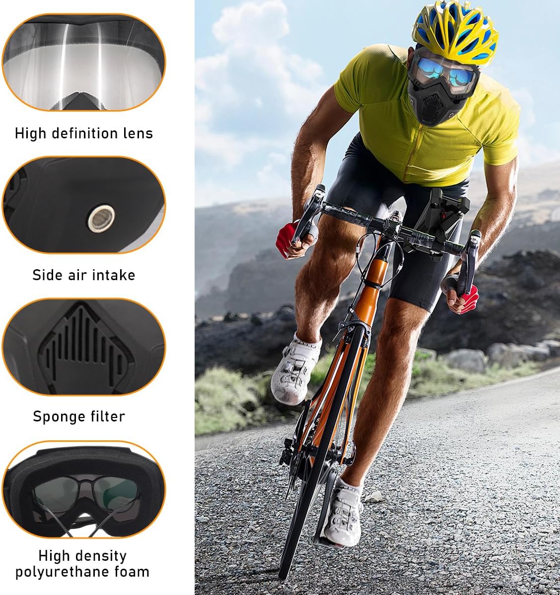povtii Motorcycle Goggles, Windproof Dirt Bike Helmet Riding Goggles with Removable Face Mask, Motorcycle Accessories