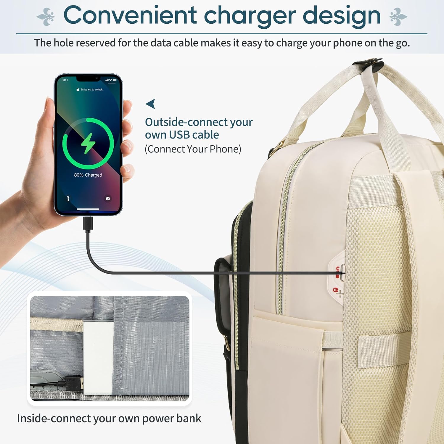 CONVENIENT DESIGN: This laptop backpack features side cable ports for headphones and charging cables, plus an internal compartment for power bank—so you can power up without opening the bag or holding a power bank. The laptop backpack contains built-in luggage straps that allow you to slide it onto your suitcase for easy transport.