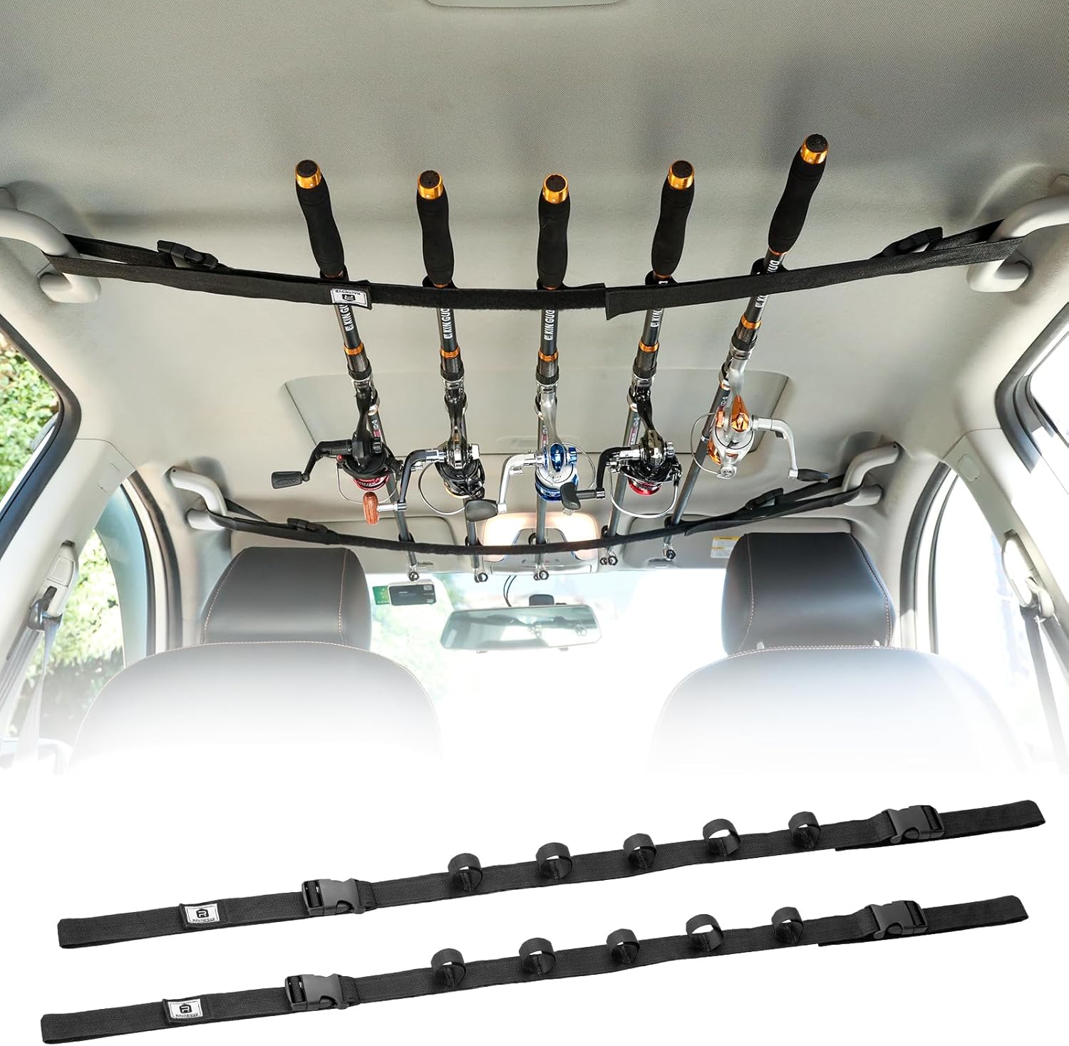 • Special & Professional: Raynesys vehicle-mounted fishing rod strap is specially designed to solve the storage and transportation problems of fishing rods, which can hold up to 5 fishing rods and fix them tightly and safely in cars and prevent them from getting entangled or broken.