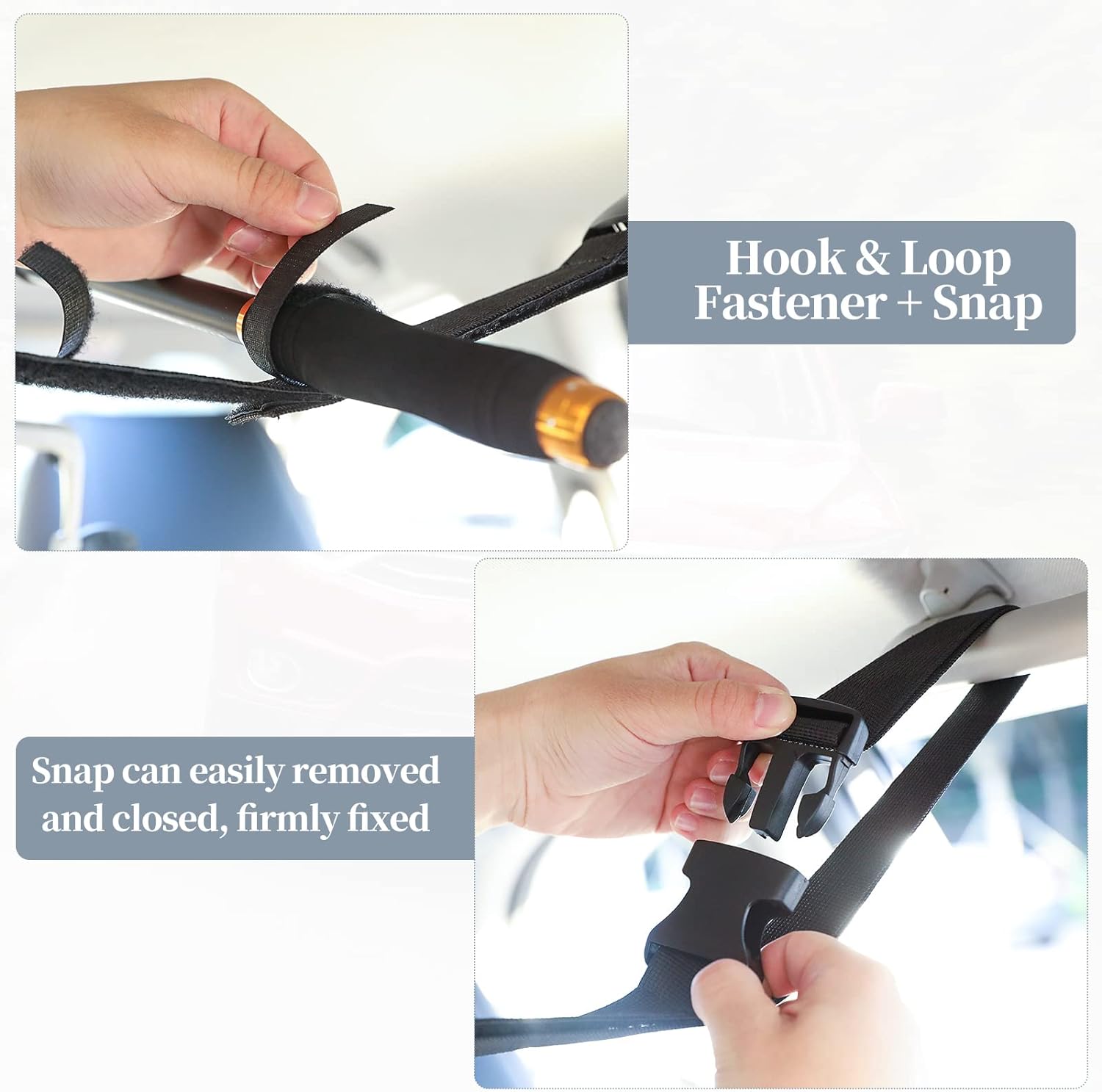 •  High-quality & Trustworthy: The rod holder straps are made of high-quality and high-strength polyester material, so that you don't have any worry about the material quality. Additionally, the buckle equipped can help easy installation and storage. There is no need to drill on cars you loved.