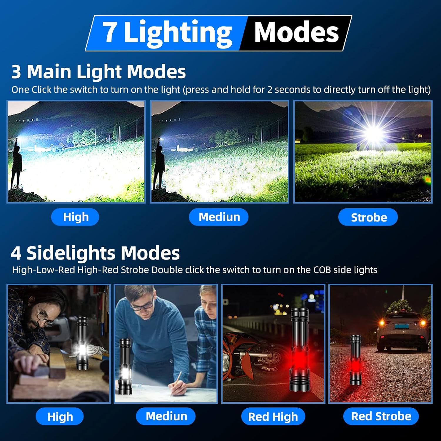 Rechargeable Flashlight 990000 High Lumens, Powerful Led Tactical Flashlights with Zoomable, 7 Modes & COB Lights, IPX7 Waterproof, Brightest Flash Lights for Camping, Emergencies, Dog Walking