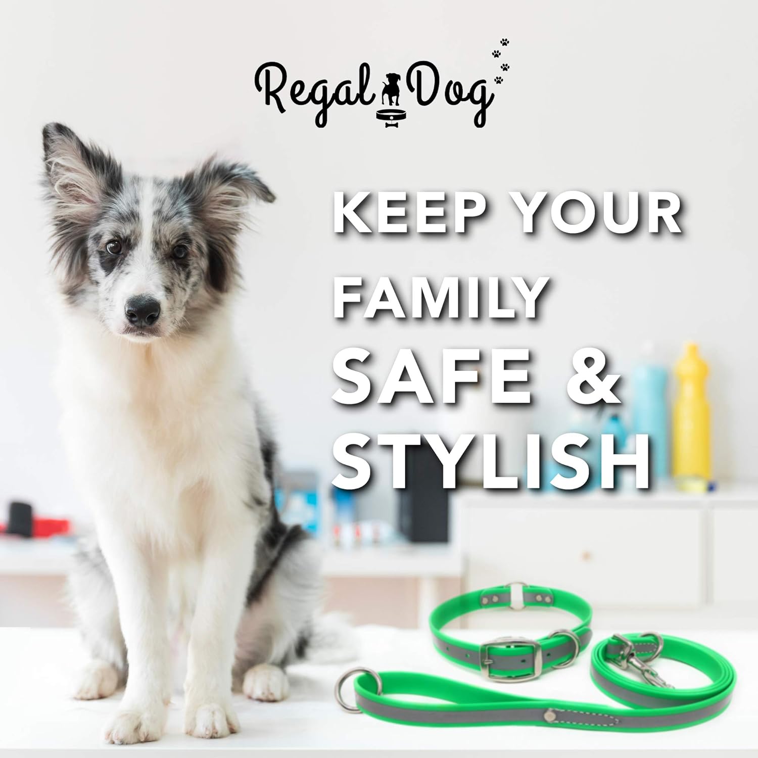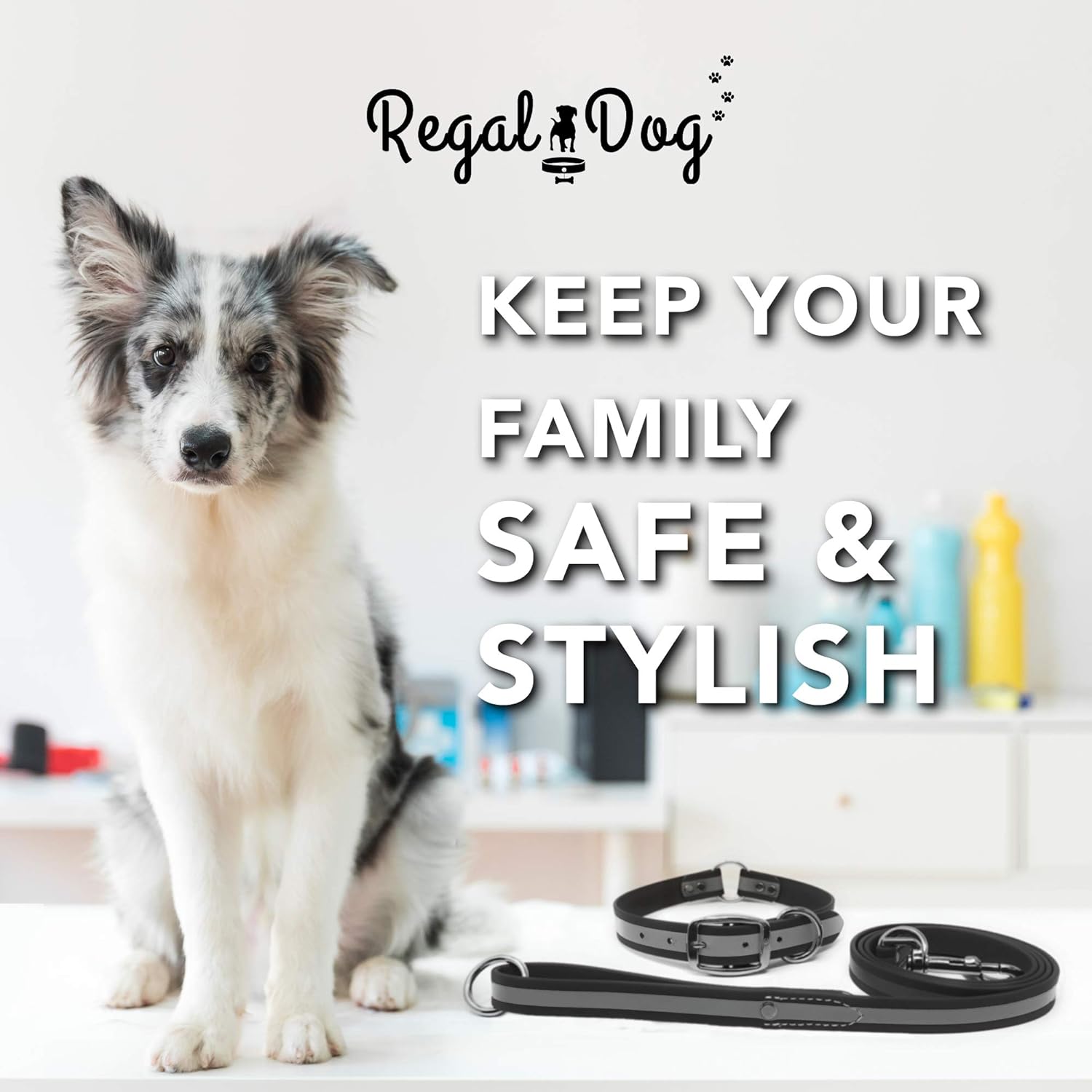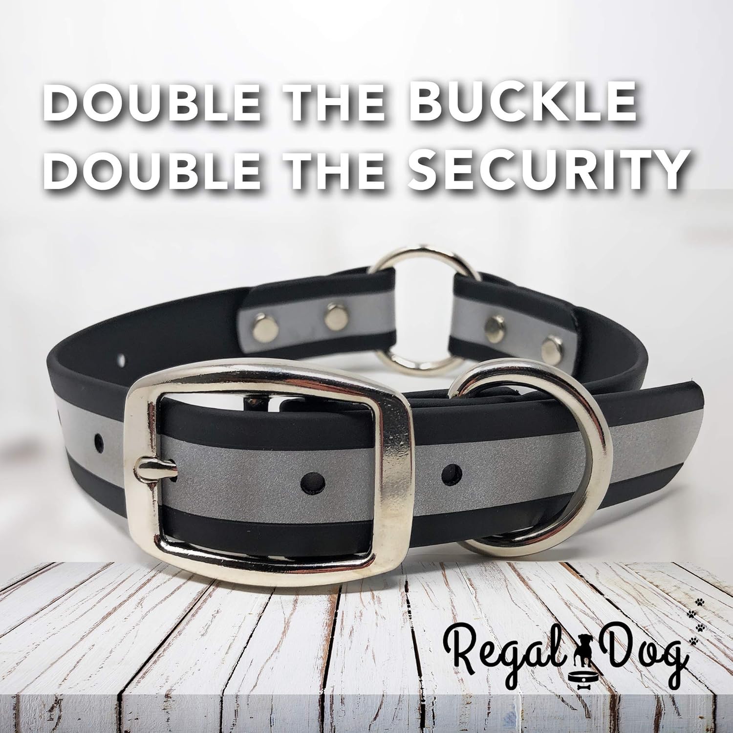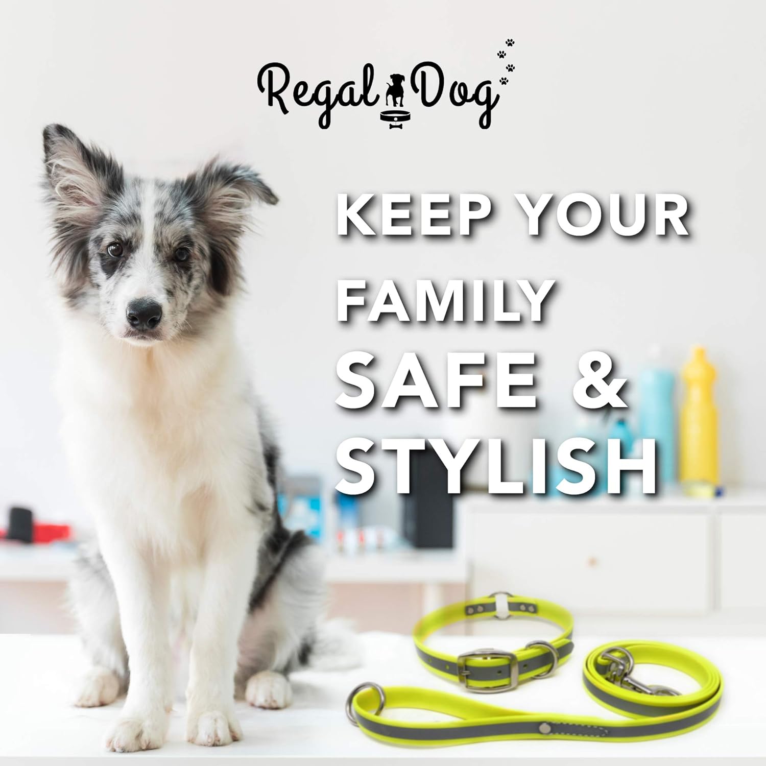 • ๐—ฆ๐—”๐—™๐—˜๐—ง๐—ฌ ๐—”๐—™๐—ง๐—˜๐—ฅ ๐—ฆ๐—จ๐—ก๐——๐—ข๐—ช๐—ก - Walking your dog in the dark is dangerous. Fetch some safety for both you and your furry friend with the Waterproof Reflective Dog Collar by Regal Dog Products! As cars pass, the highly reflective strip notifies drivers of your presence so they can safely steer clear. Keep your dog visible and out of harm's way wherever you may go on your day or night walk.ย