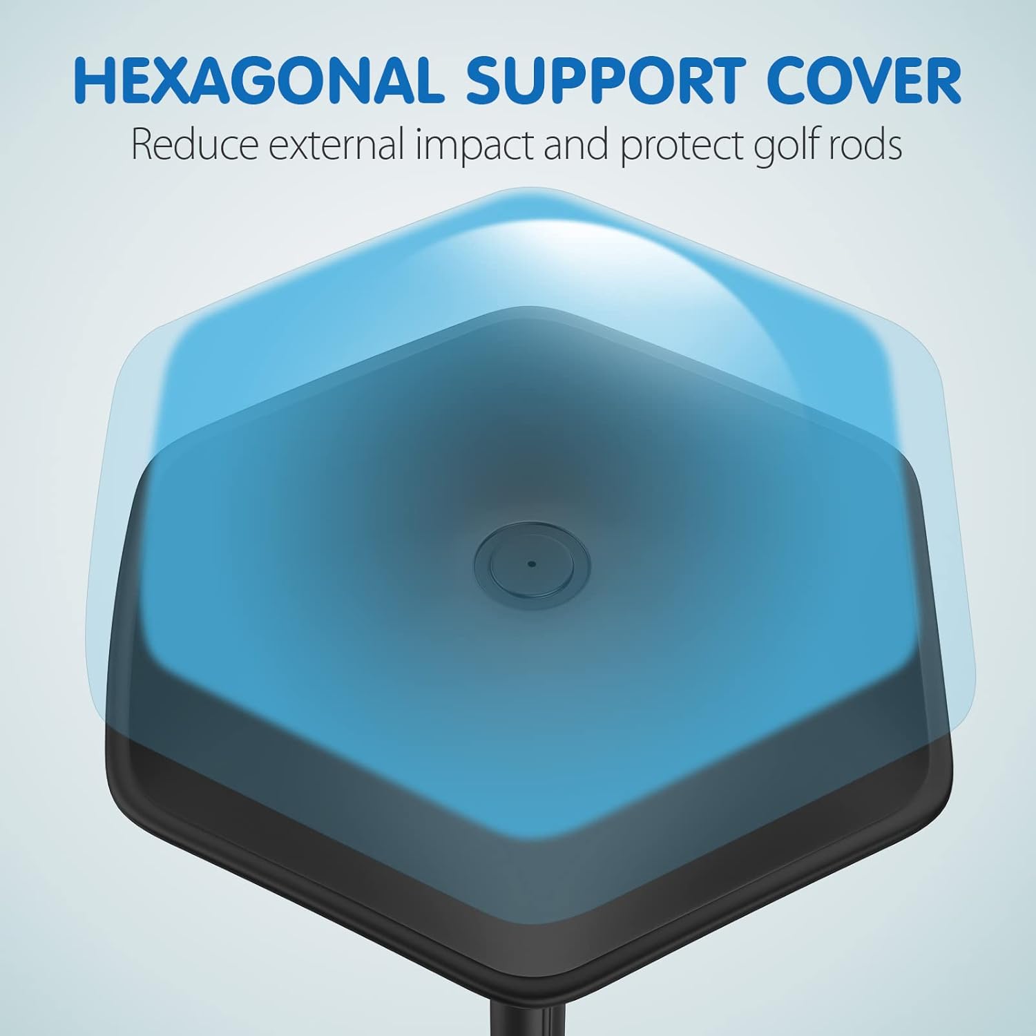 The oversized hexagonal anti-impact top cover absorbs and disperses external force, preventing deformation and offering superior vibration reduction. Made with high-resilience rubber, it adds an extra layer of shock protection to safeguard your driver, woods, irons, and other clubs.