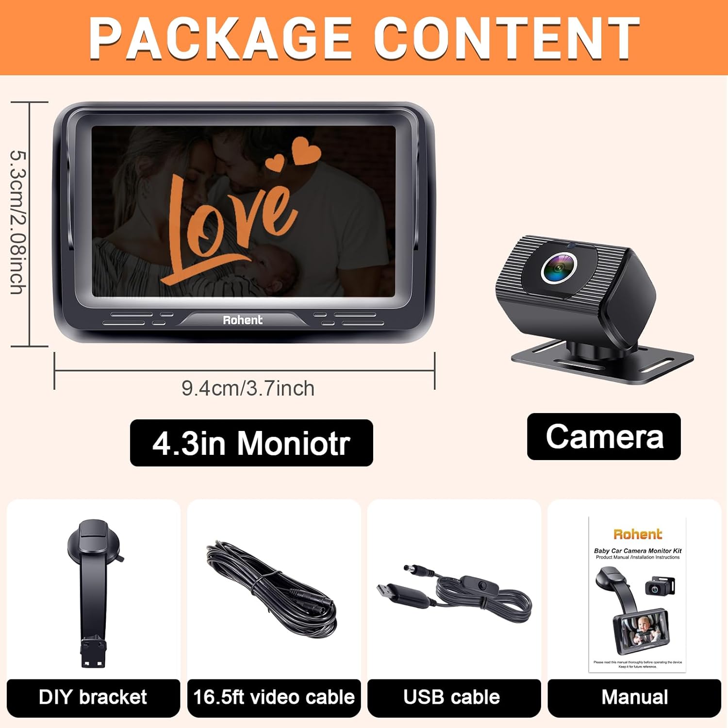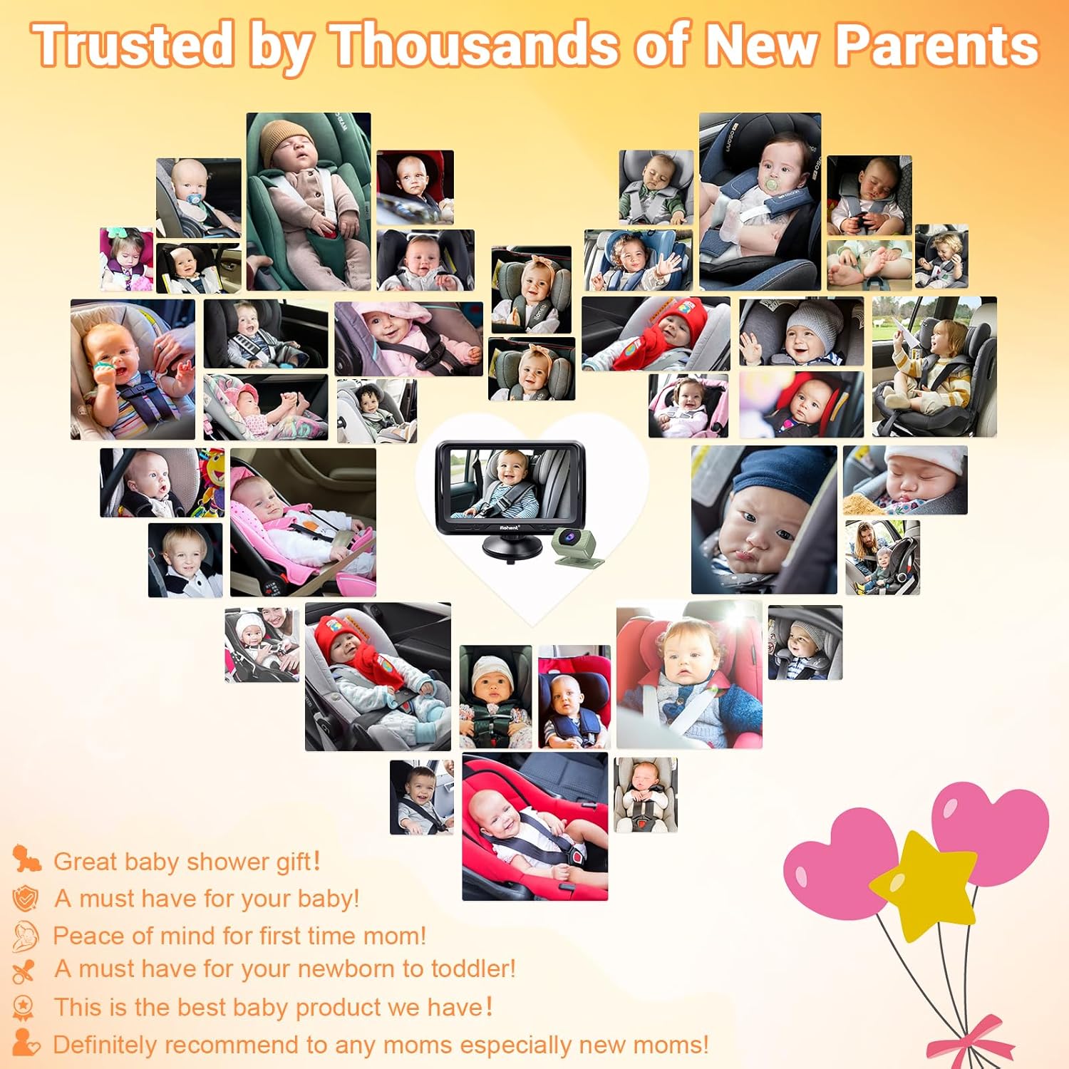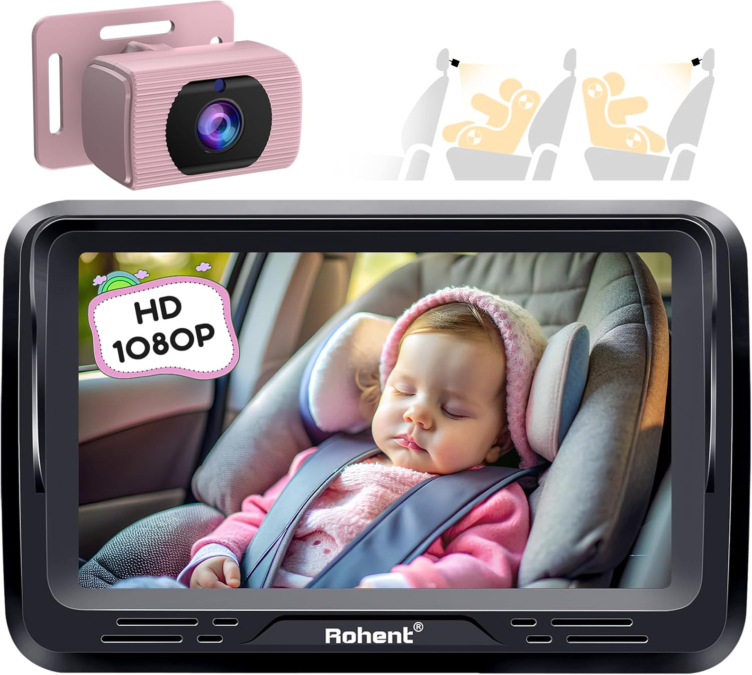 Rohent Baby Car Camera HD 1080P - Rear-Facing Infant Monitor with Night Vision Car Camera for Baby 150° Wide-Angle Lens Anti-Glare Screen Easy Install 360° Adjustable Display