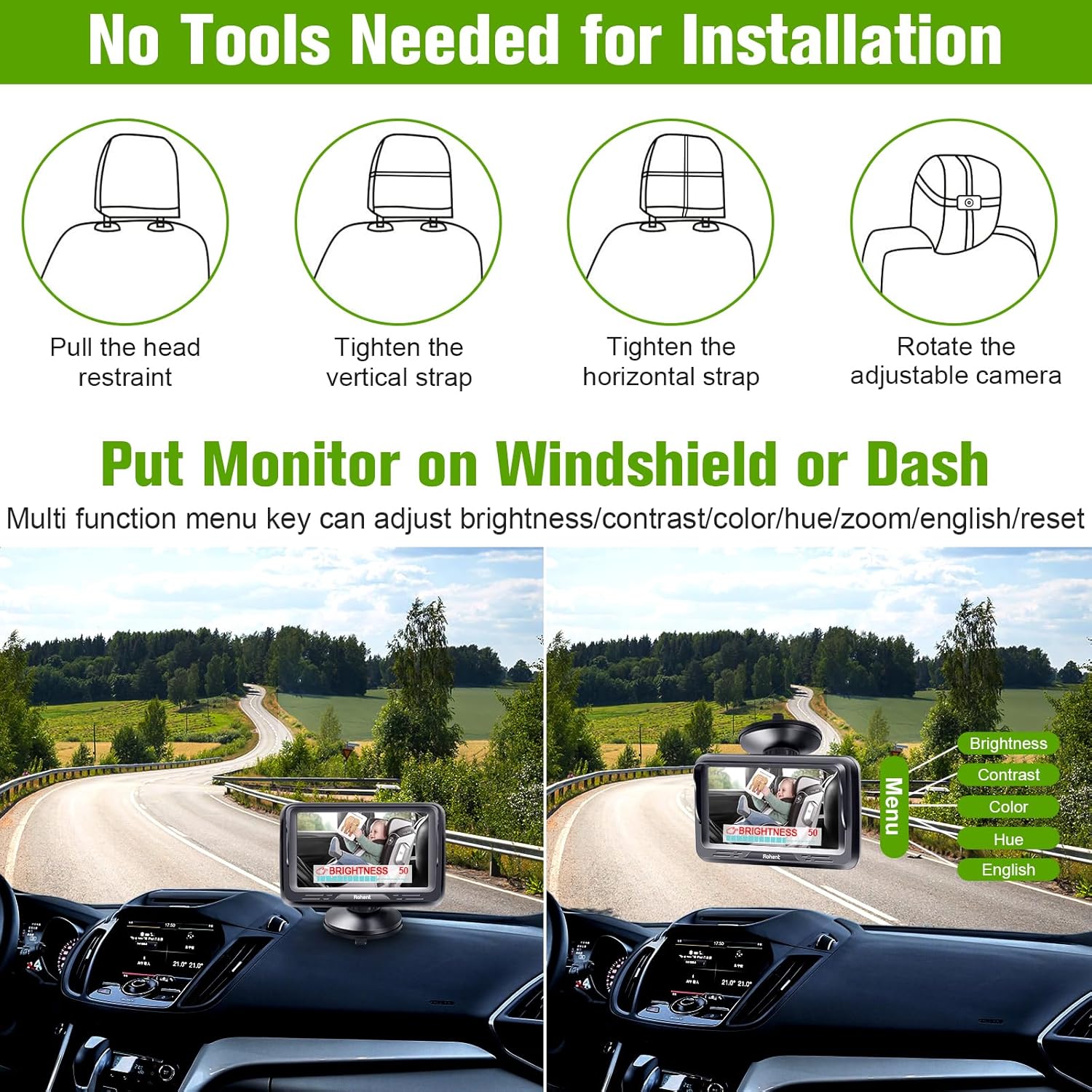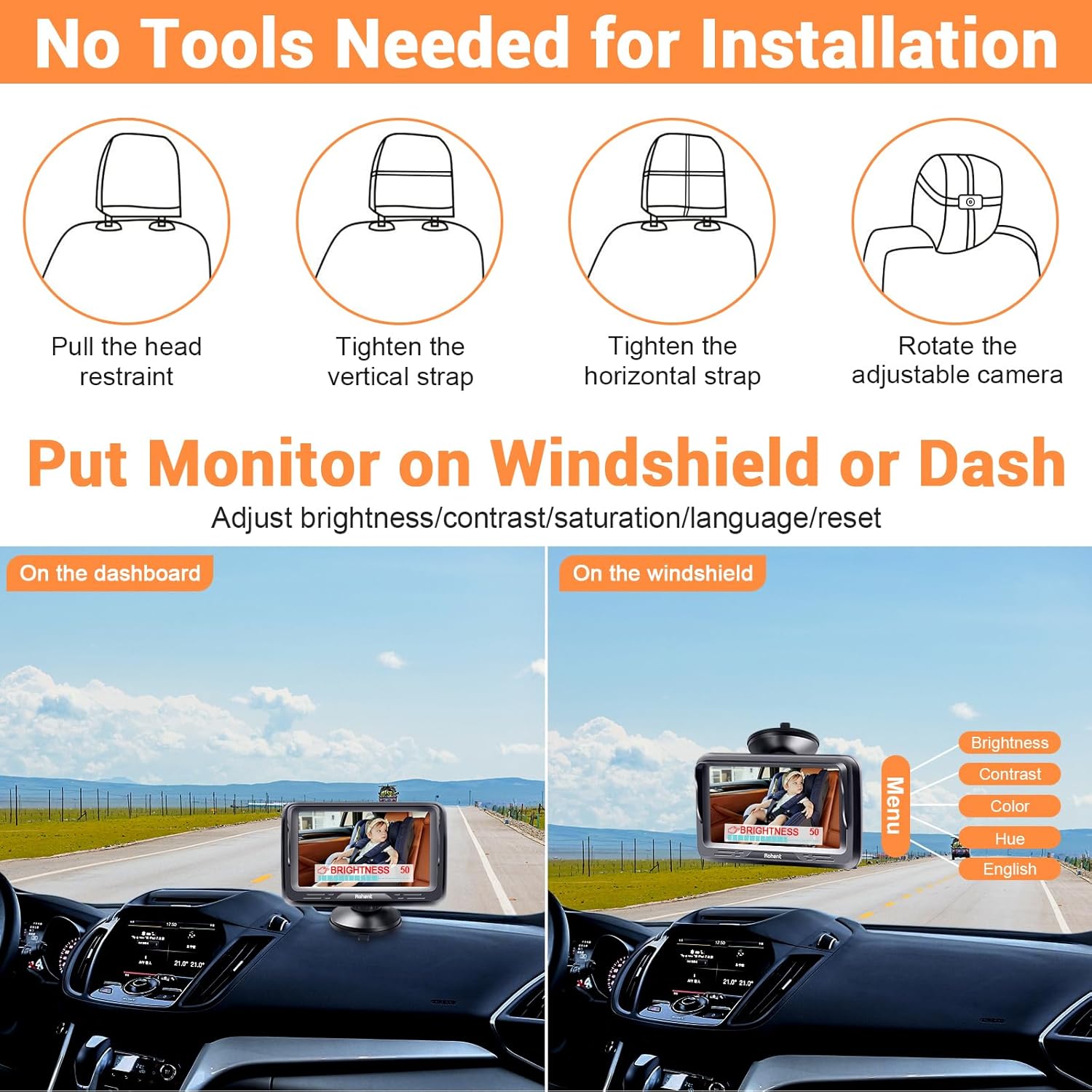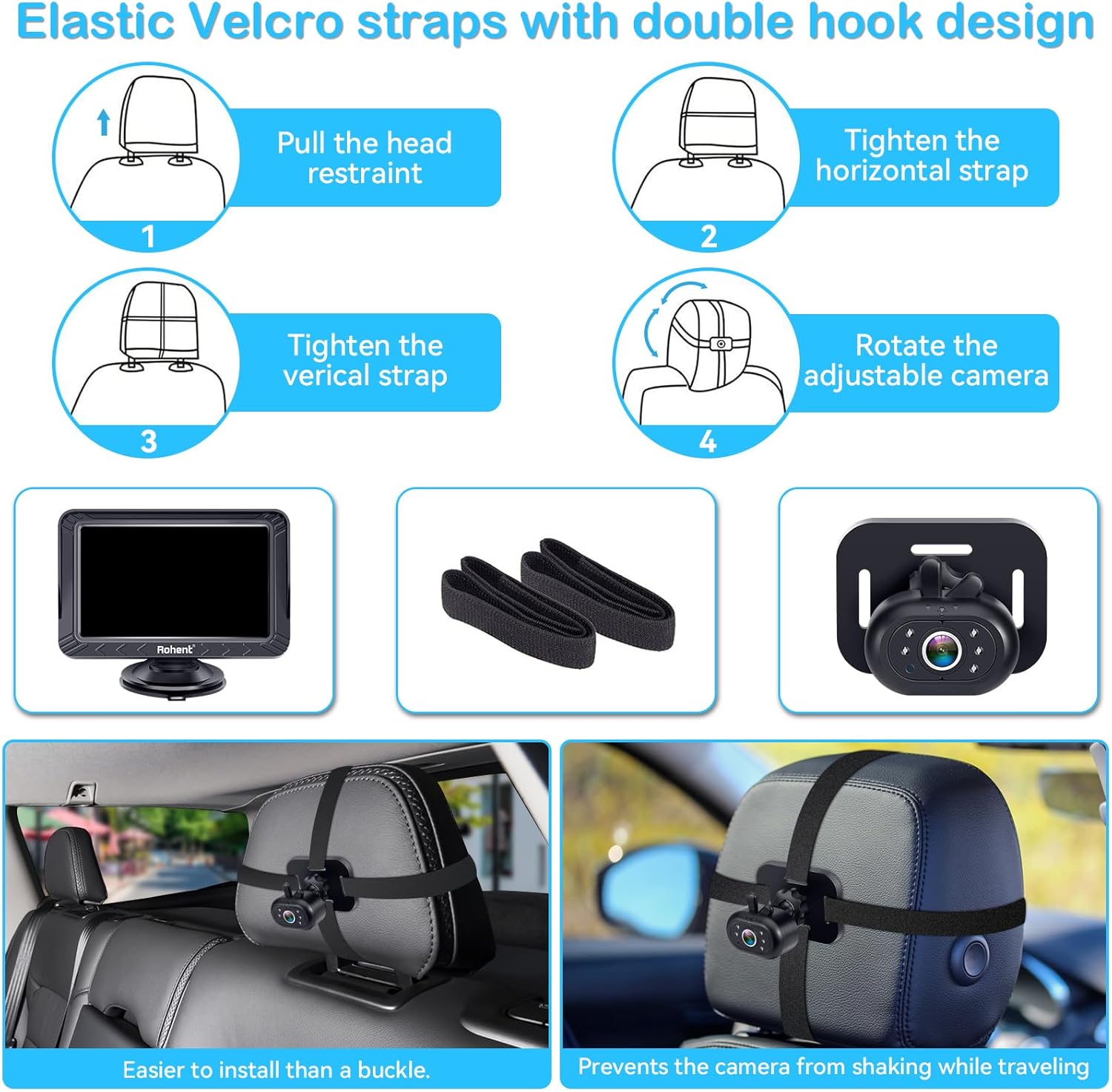 - Quick & Tool-Free Installation – Set up in under 3 minutes by simply strapping the camera securely to the headrest and connecting the monitor to the power source, with no tools needed