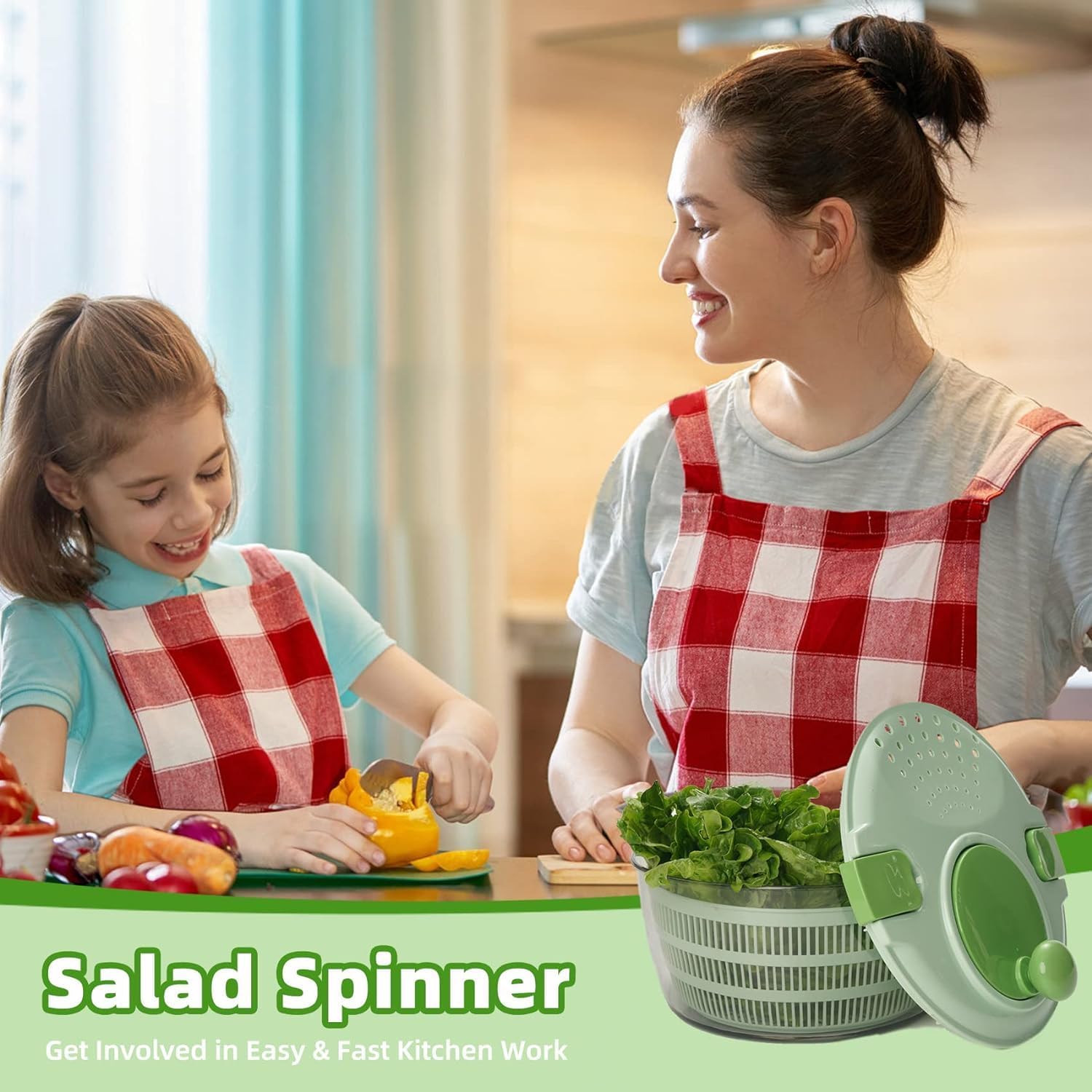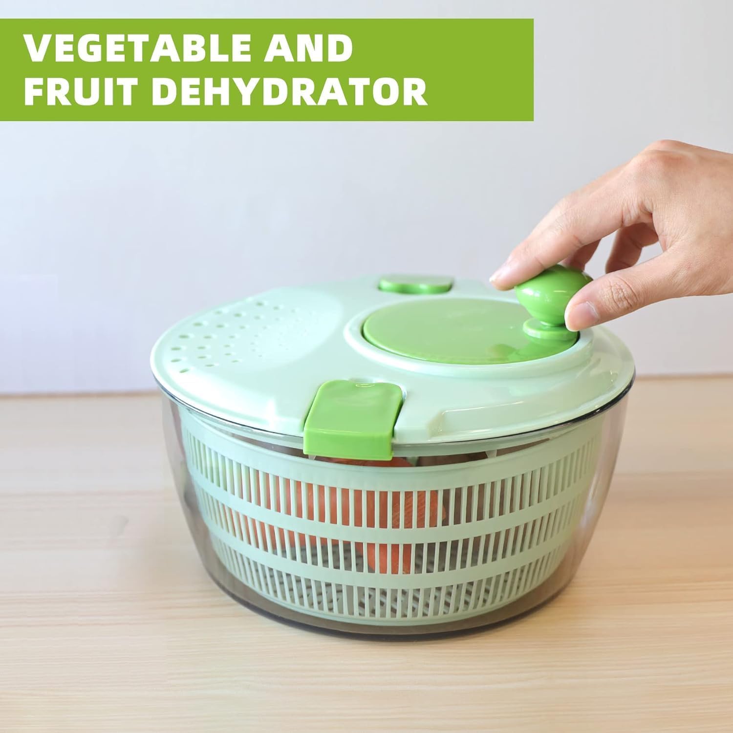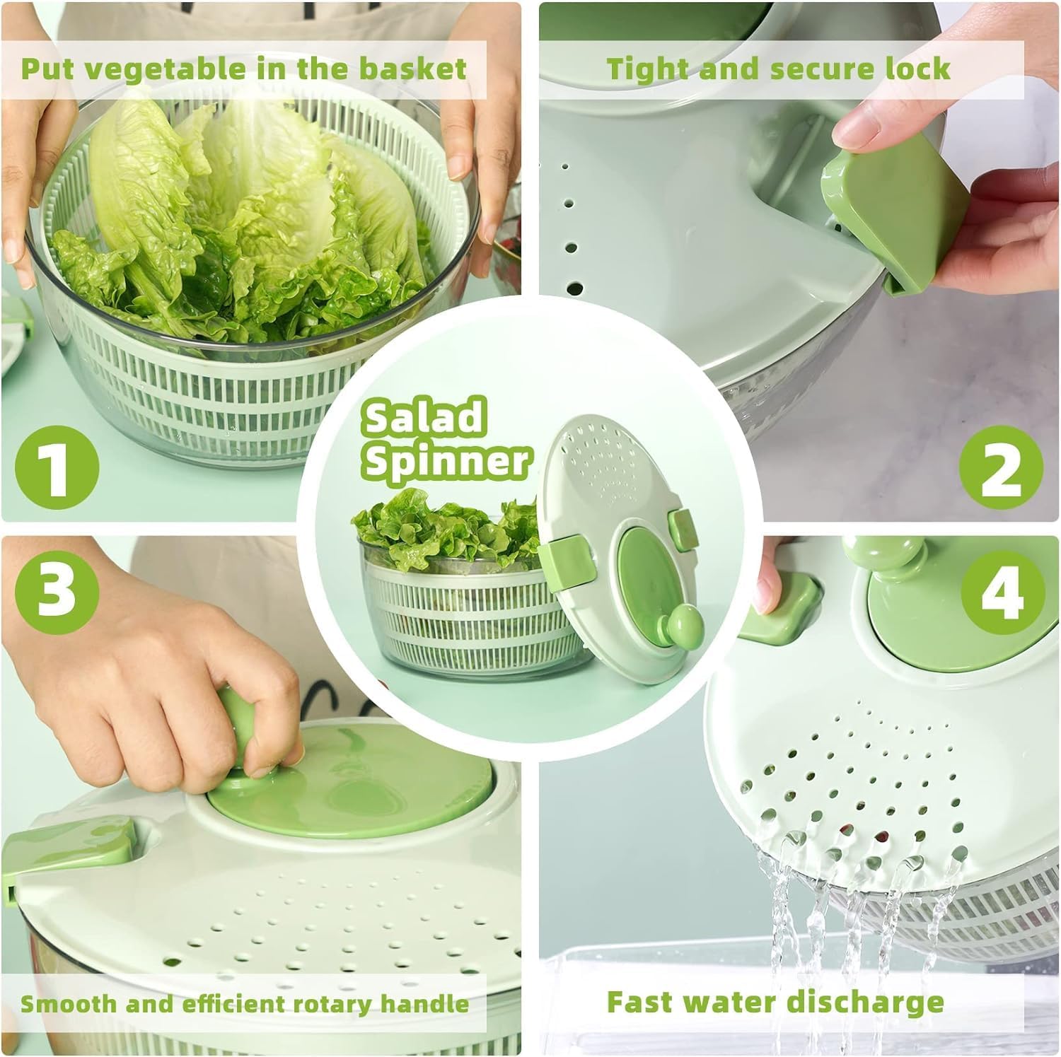 Salad Spinner - Green Salad Spinner Large - 4.2L Lettuce Spinner for Vegetable Washing, Lettuce Dryer with Drain, Bowl, Colander, BPA Free
