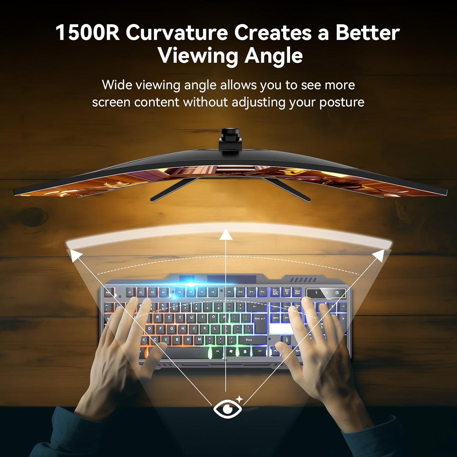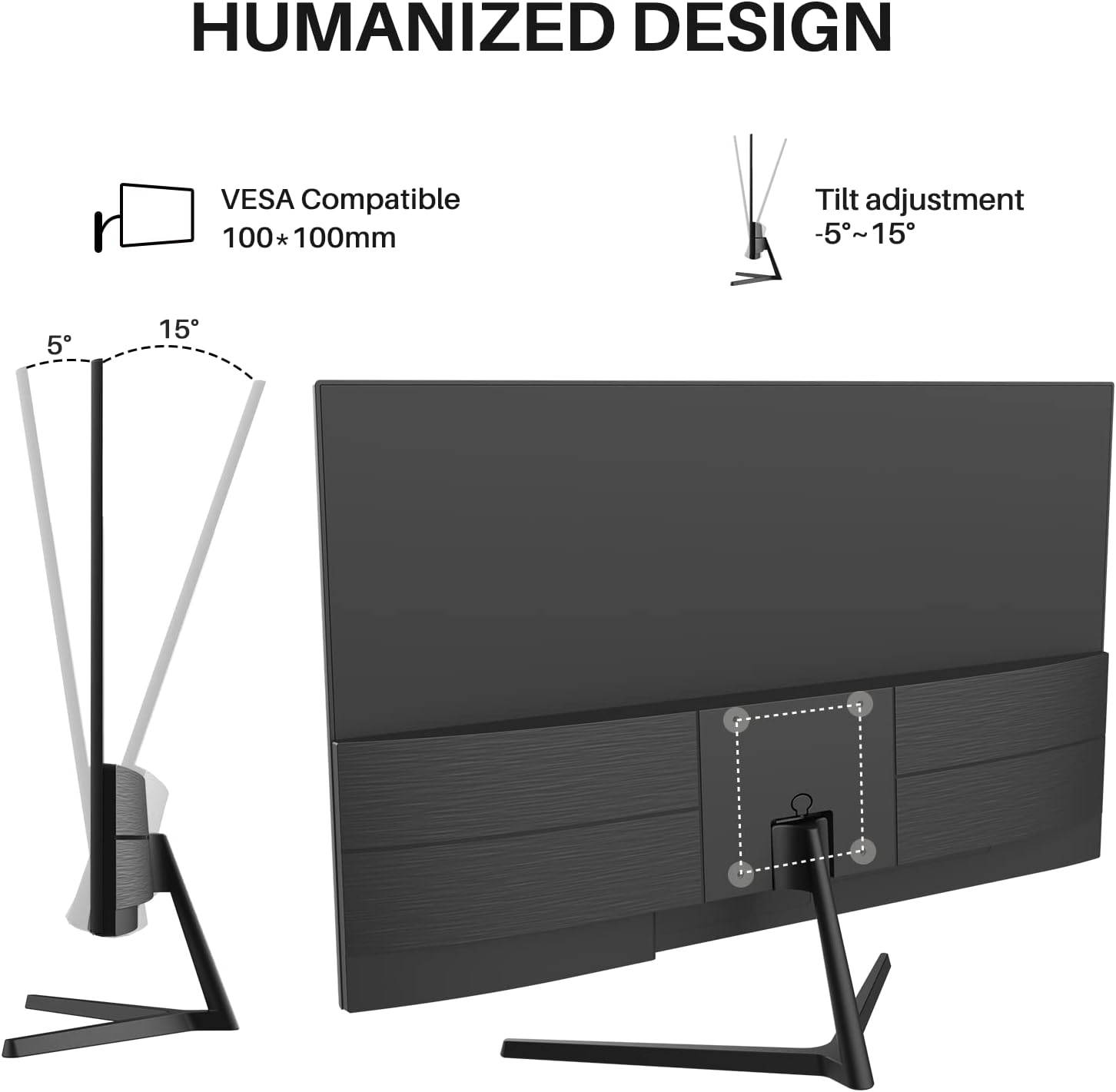 • Ergonomic Design: 1500R curved, Tilt: -5°~15°, VESA Compatible (75 x 75mm), 178° Wide Viewing Angle