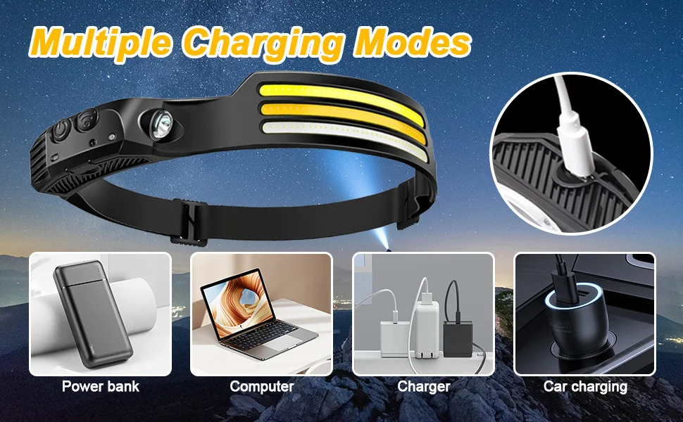 • 8 Modes & 3 Color Options – Soft COB light for close range and XPE-LED for long-distance visibility.