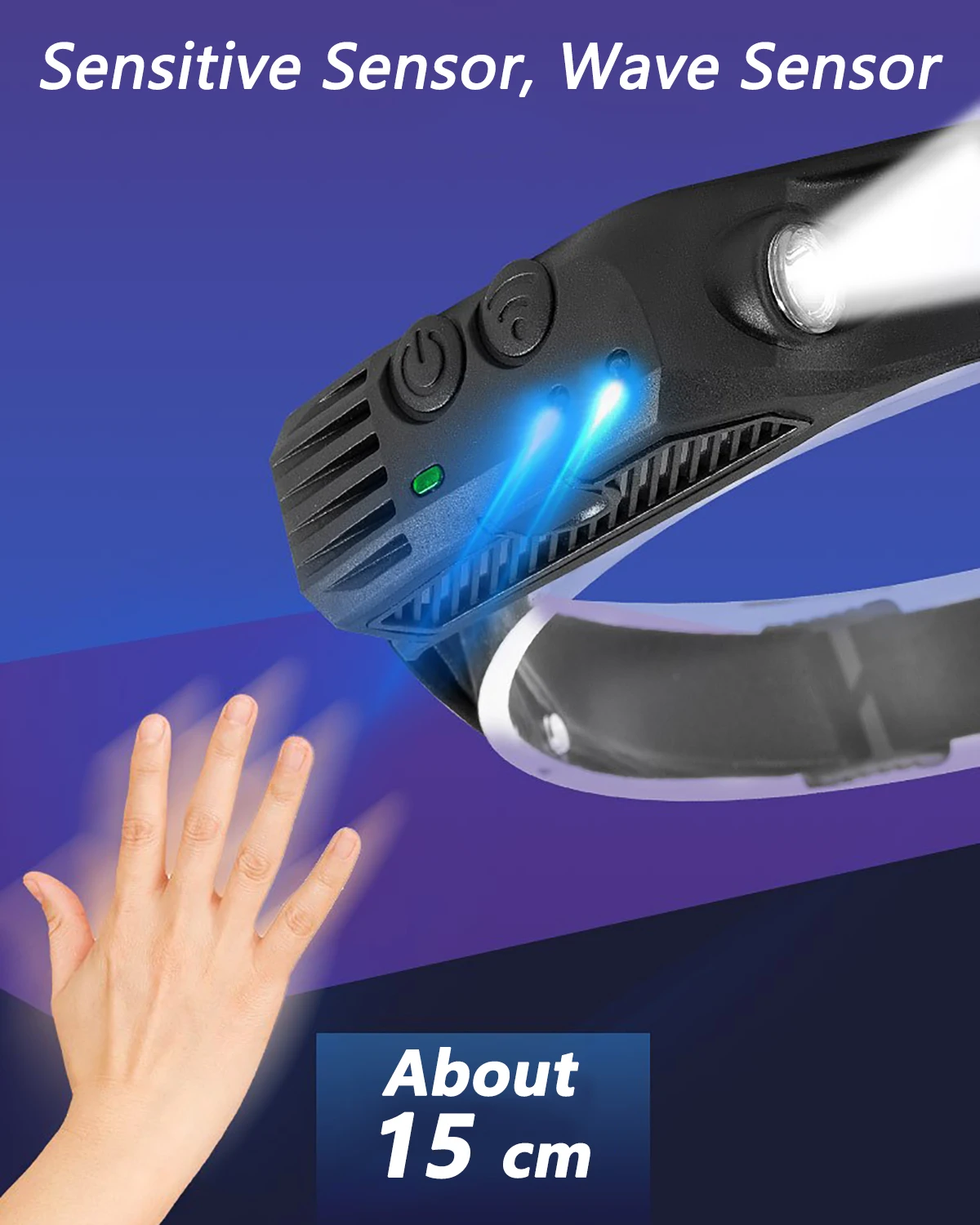 Purilite Select Sensor LED Headlamp with 5 Lighting Modes – Rechargeable Head Torch for Fishing, Camping & HikingPLSLT-1005008993409482
