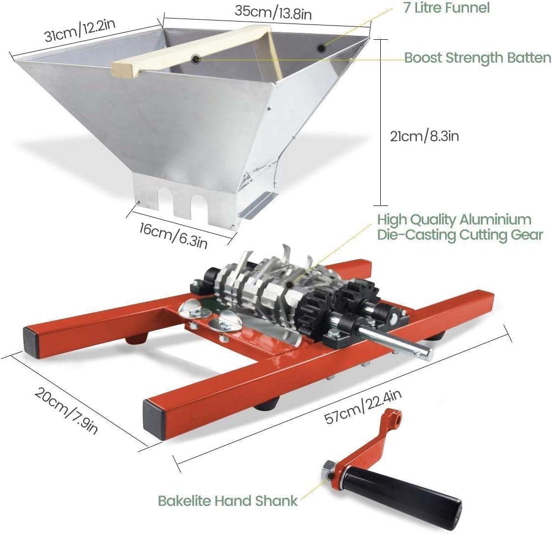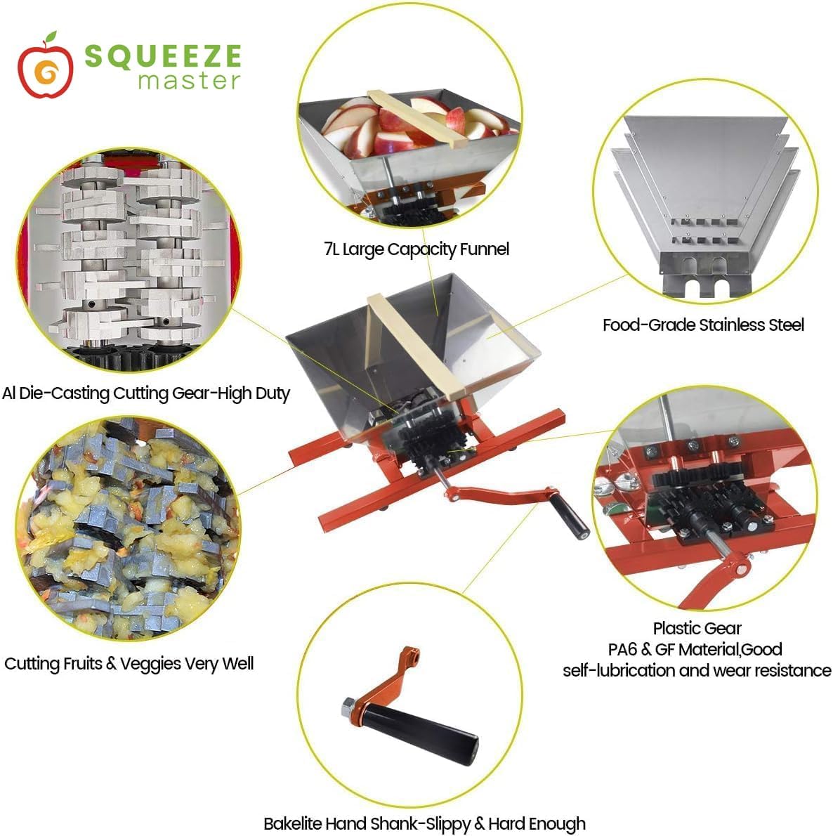 SQUEEZE master Fruit Apple Wine Classic Crusher -7 Litre/1.8Gallon Manual Grinder- Large Stainless Steel-Red